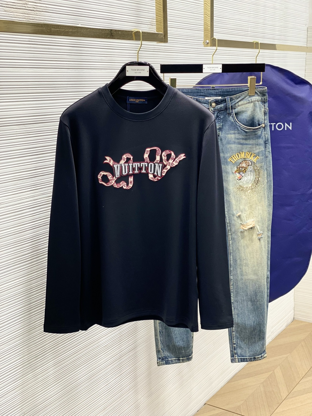 这款衣服是AAAAA 1:1 质量 (非常棒). 使用了和原版一模一样的材料. 商标部分也保持了和路易威登/Louis Vuitton一样. 图片拍摄是实物衣服拍摄, 您所收到的实物保证和我们图片一模一样.