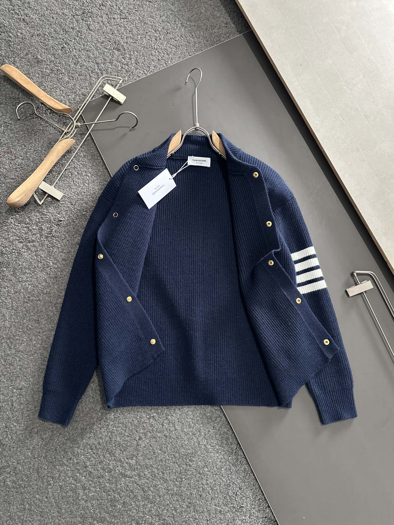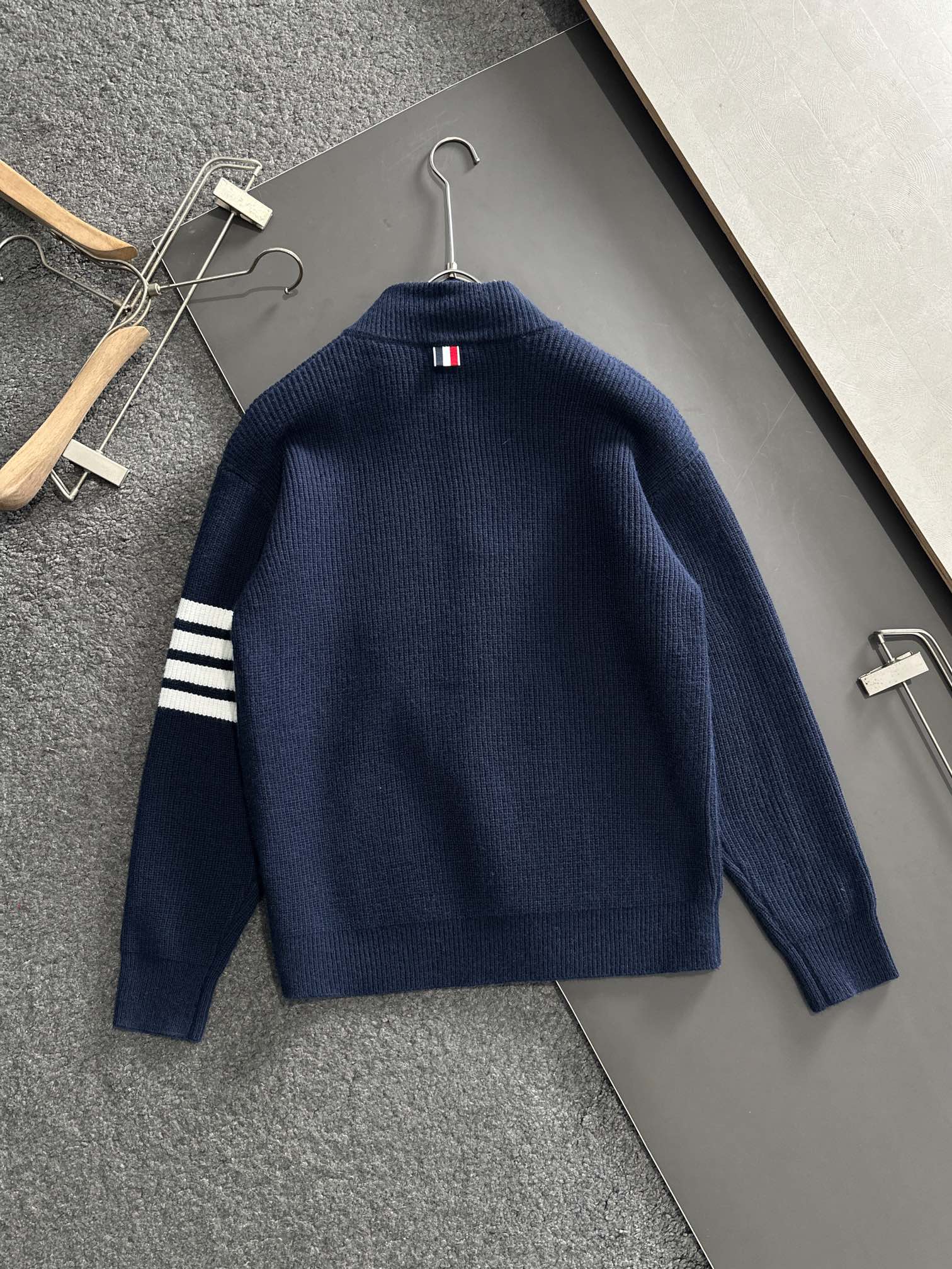 这款衣服是AAAAA 1:1 质量 (非常棒). 使用了和原版一模一样的材料. 商标部分也保持了和汤姆布朗/Thom Browne一样. 图片拍摄是实物衣服拍摄, 您所收到的实物保证和我们图片一模一样.