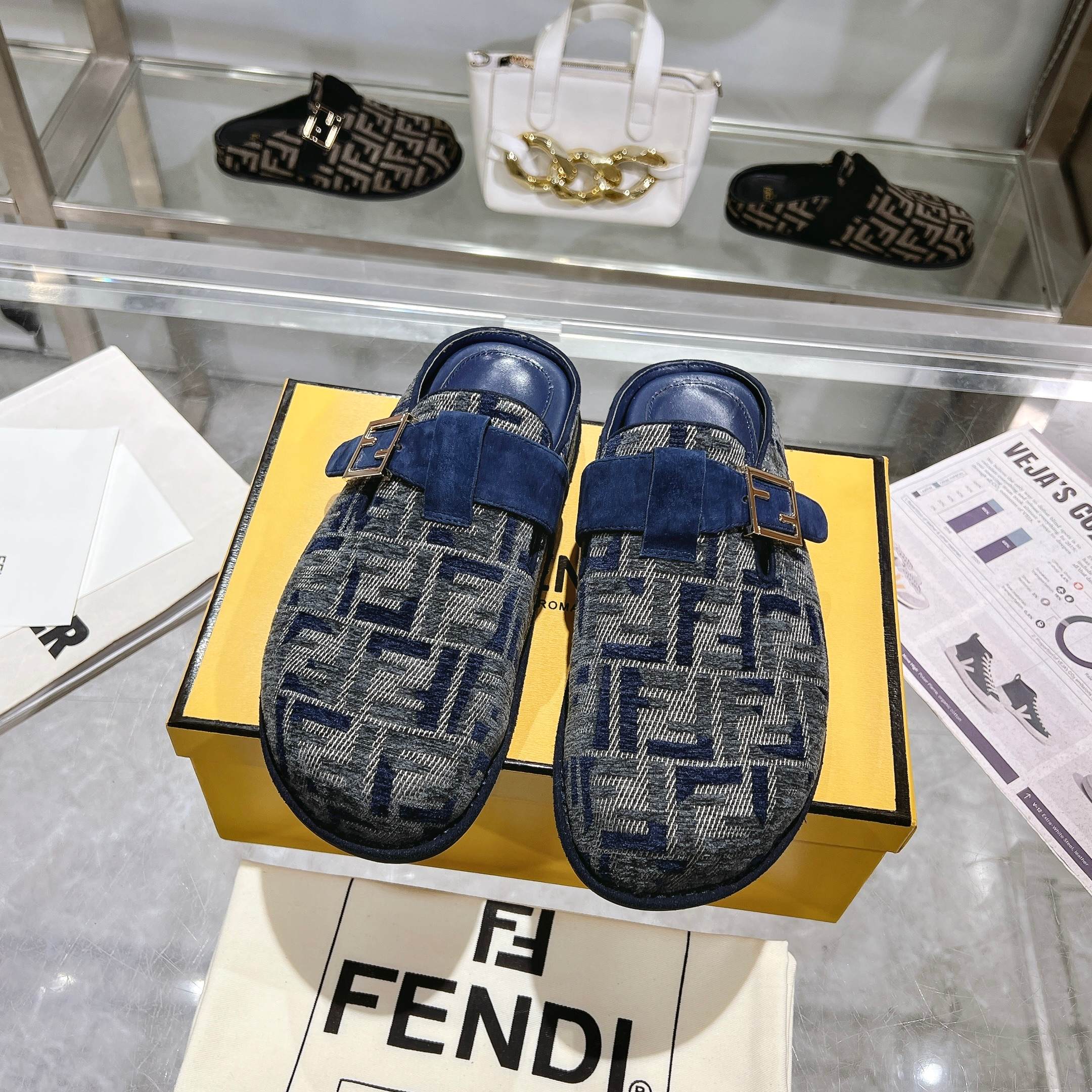 这款鞋子是AAAAA 1:1 质量 (非常棒). 使用了和原版一模一样的材料. 商标部分也保持了和芬迪/Fendi一样. 图片拍摄是实物鞋子拍摄, 您所收到的实物保证和我们图片一模一样.