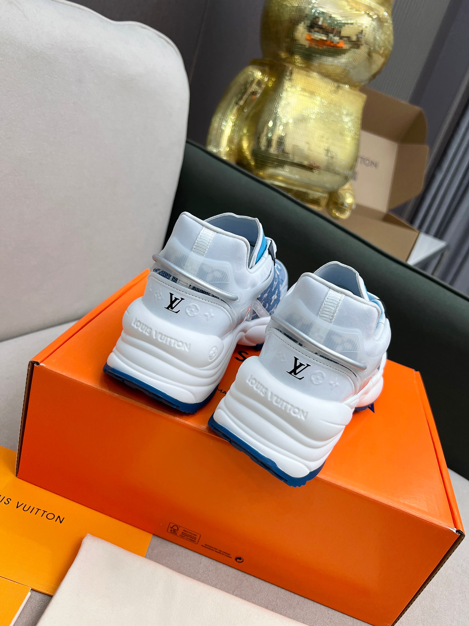 这款鞋子是AAAAA 1:1 质量 (非常棒). 使用了和原版一模一样的材料. 商标部分也保持了和路易威登/Louis Vuitton一样. 图片拍摄是实物鞋子拍摄, 您所收到的实物保证和我们图片一模一样.