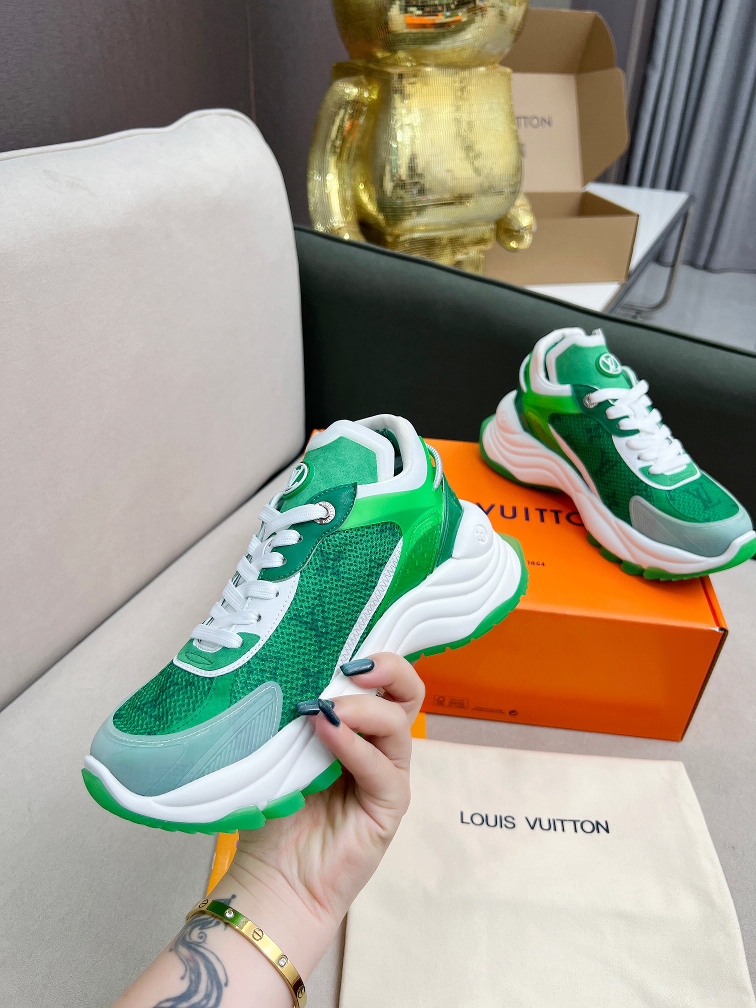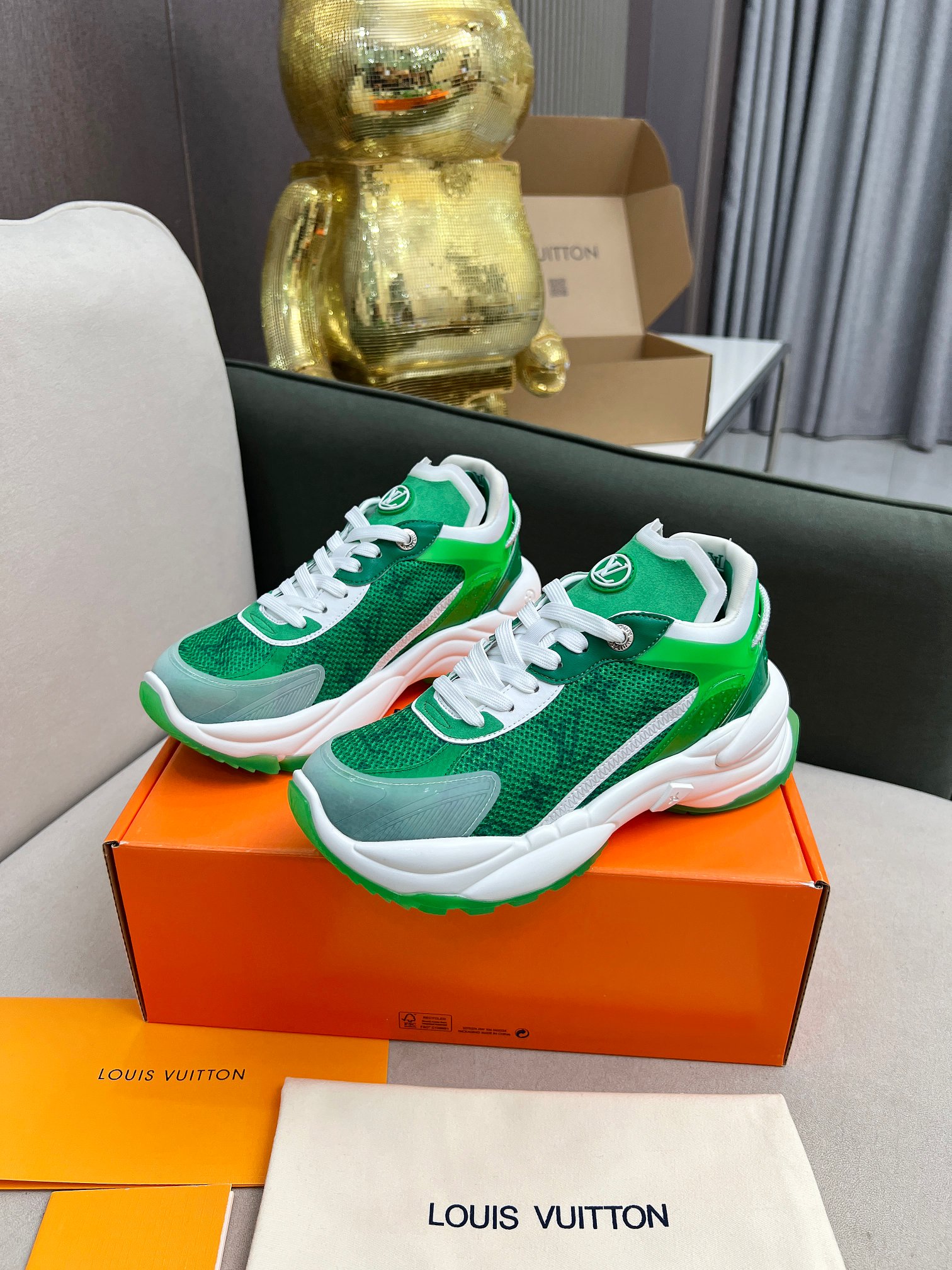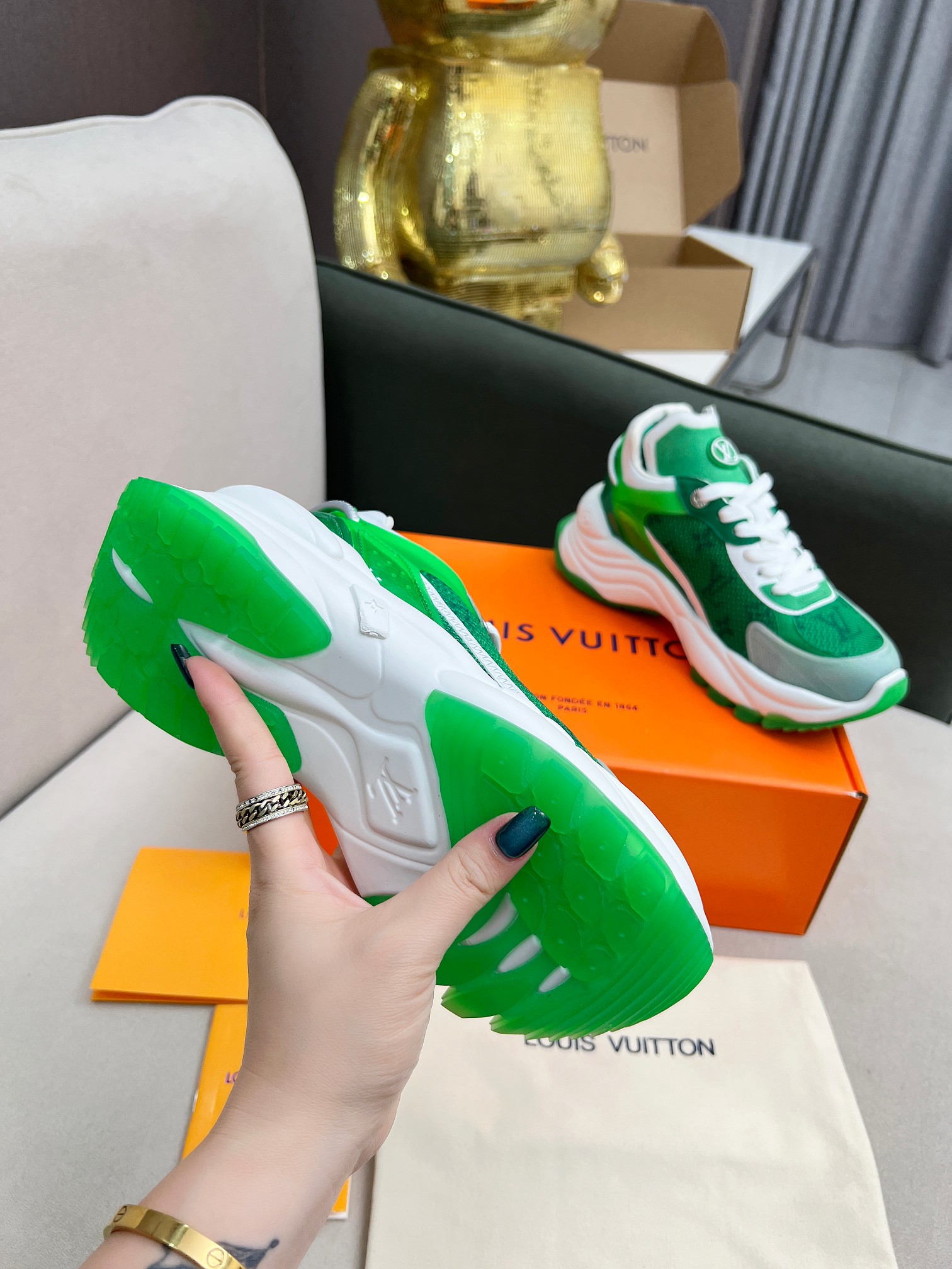 这款鞋子是AAAAA 1:1 质量 (非常棒). 使用了和原版一模一样的材料. 商标部分也保持了和路易威登/Louis Vuitton一样. 图片拍摄是实物鞋子拍摄, 您所收到的实物保证和我们图片一模一样.