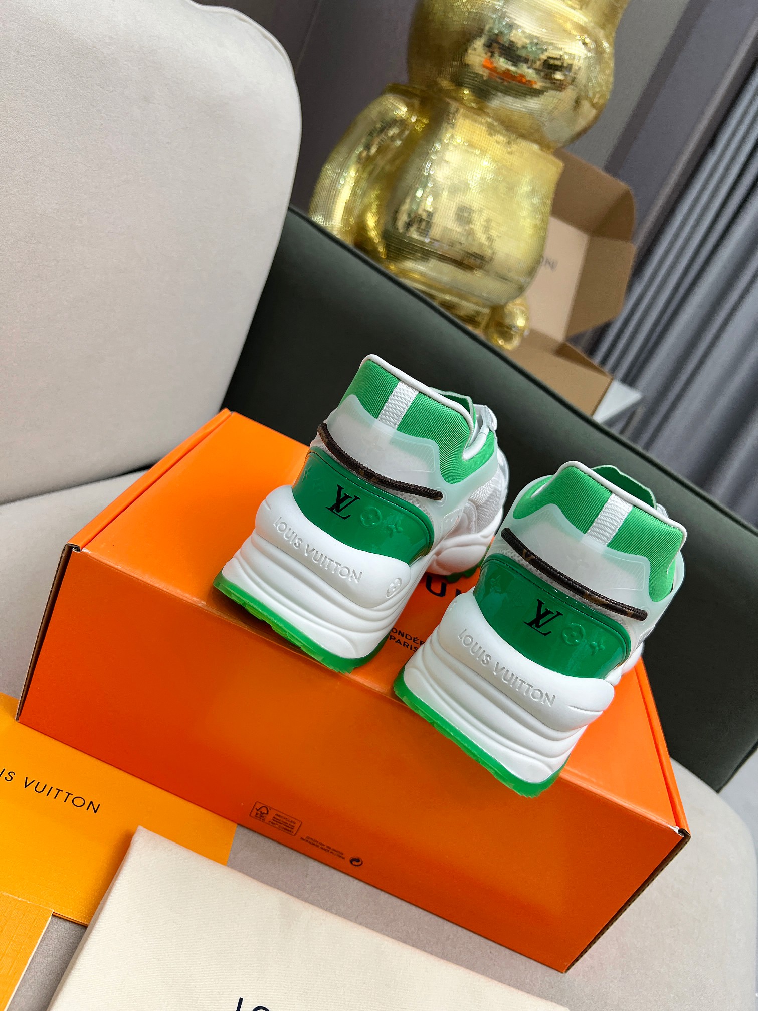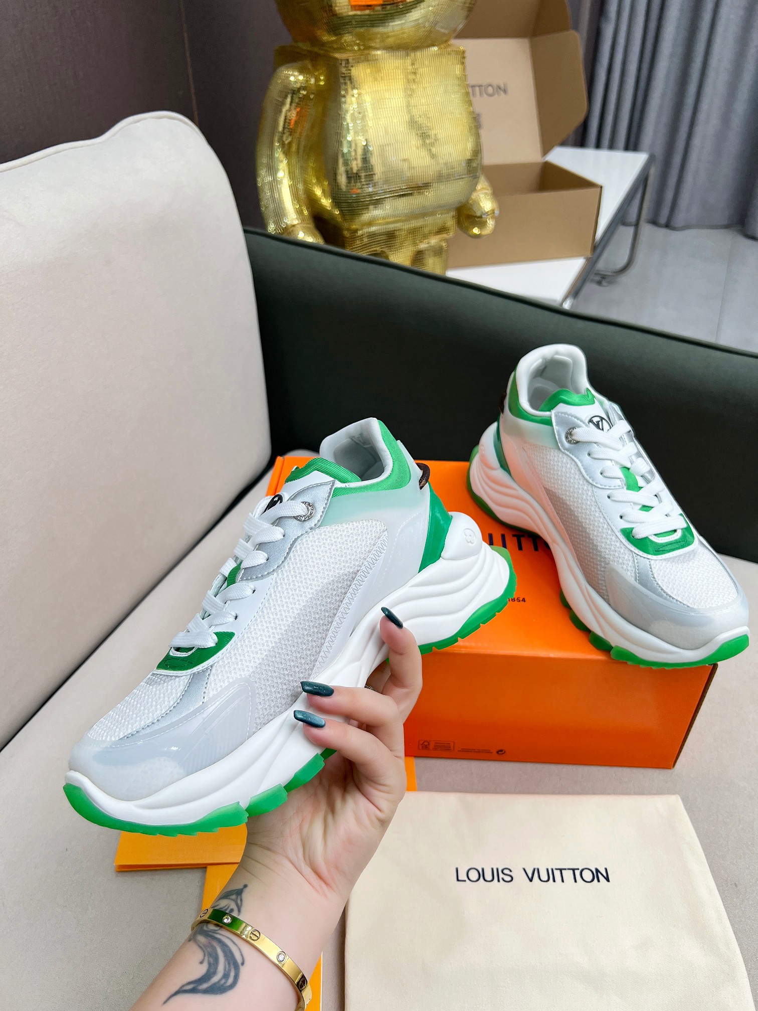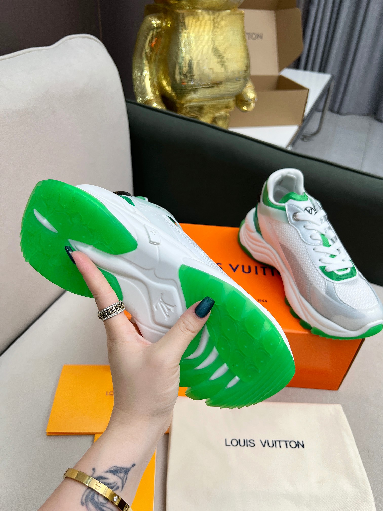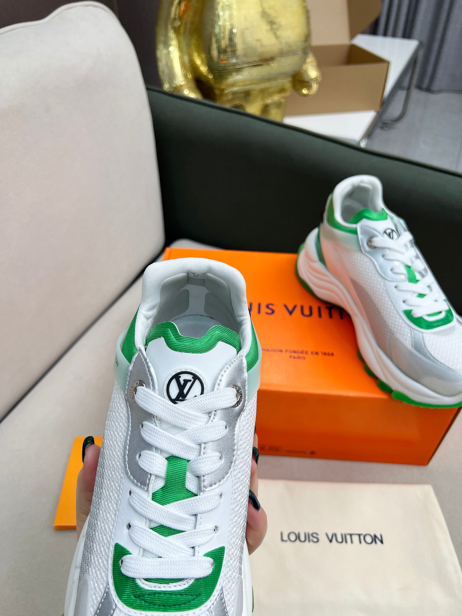 这款鞋子是AAAAA 1:1 质量 (非常棒). 使用了和原版一模一样的材料. 商标部分也保持了和路易威登/Louis Vuitton一样. 图片拍摄是实物鞋子拍摄, 您所收到的实物保证和我们图片一模一样.