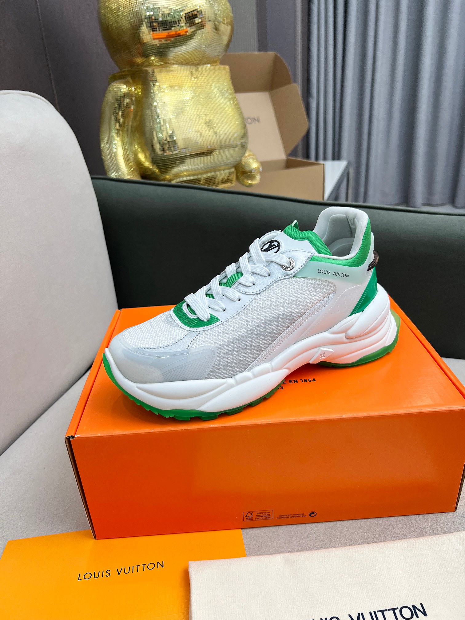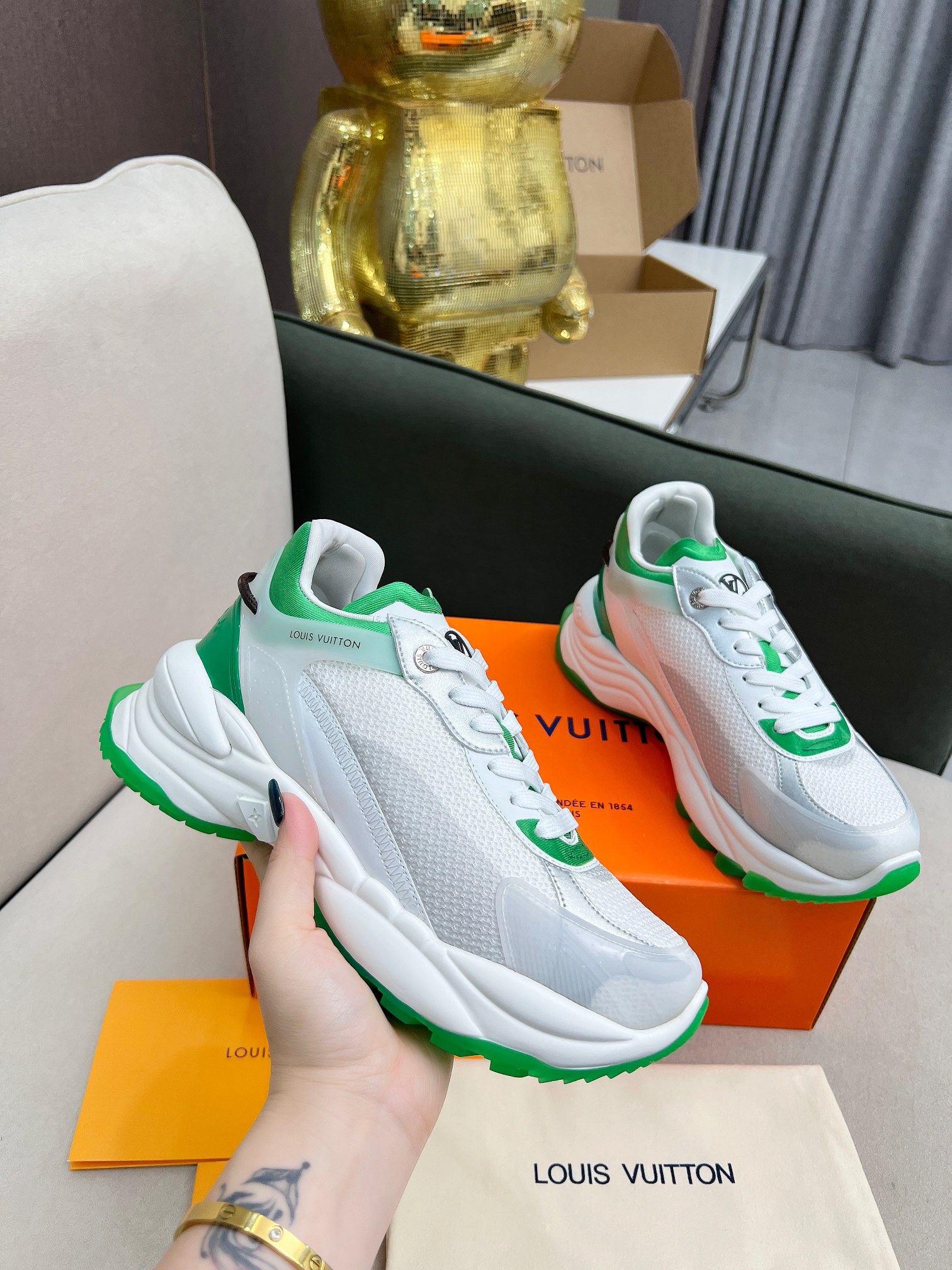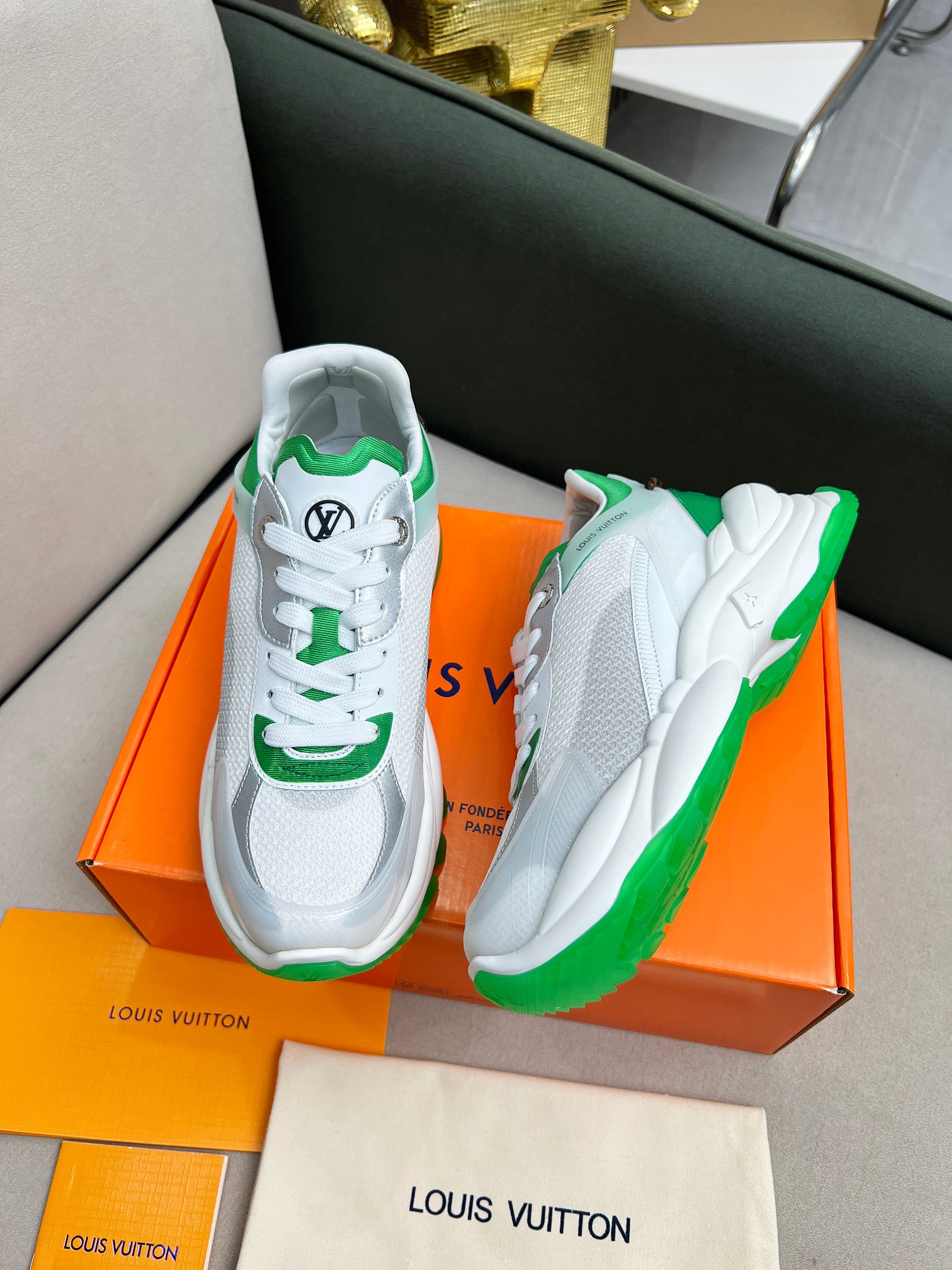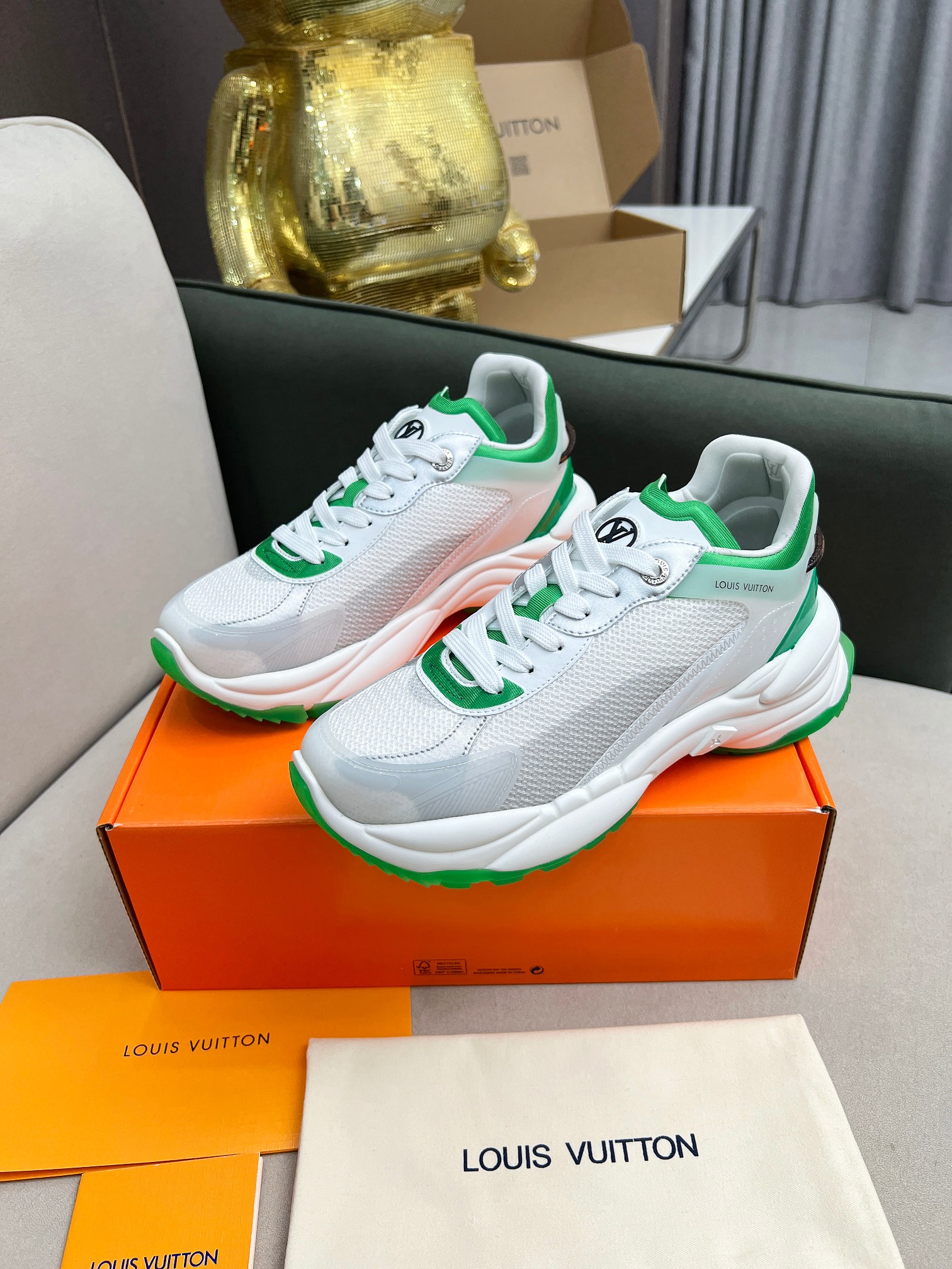 这款鞋子是AAAAA 1:1 质量 (非常棒). 使用了和原版一模一样的材料. 商标部分也保持了和路易威登/Louis Vuitton一样. 图片拍摄是实物鞋子拍摄, 您所收到的实物保证和我们图片一模一样.