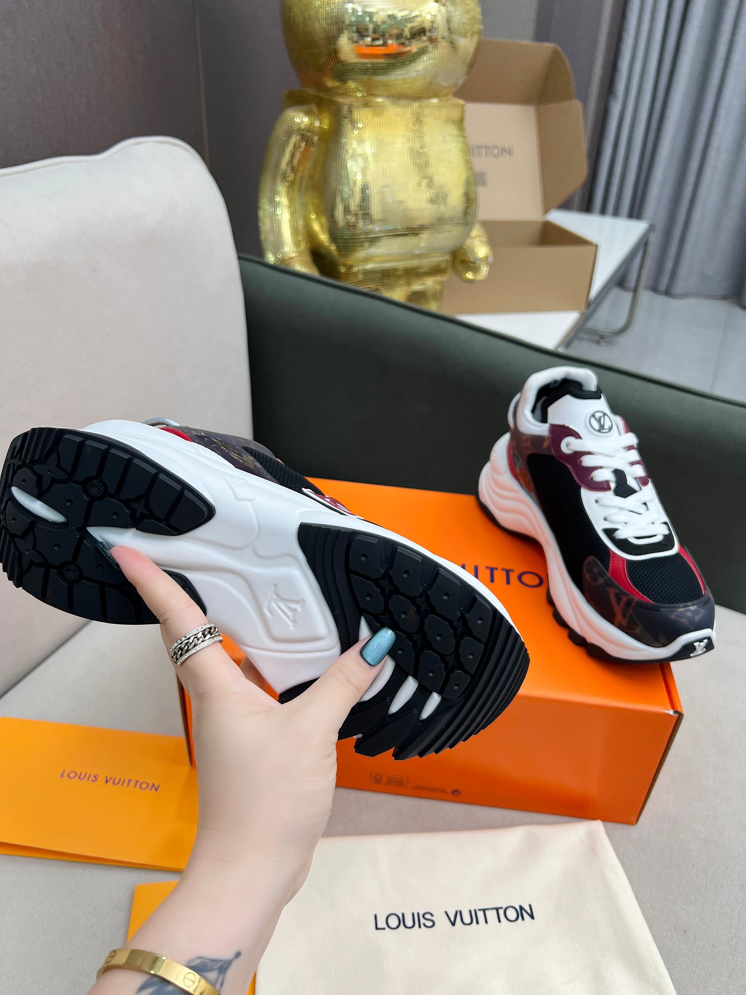 这款鞋子是AAAAA 1:1 质量 (非常棒). 使用了和原版一模一样的材料. 商标部分也保持了和路易威登/Louis Vuitton一样. 图片拍摄是实物鞋子拍摄, 您所收到的实物保证和我们图片一模一样.
