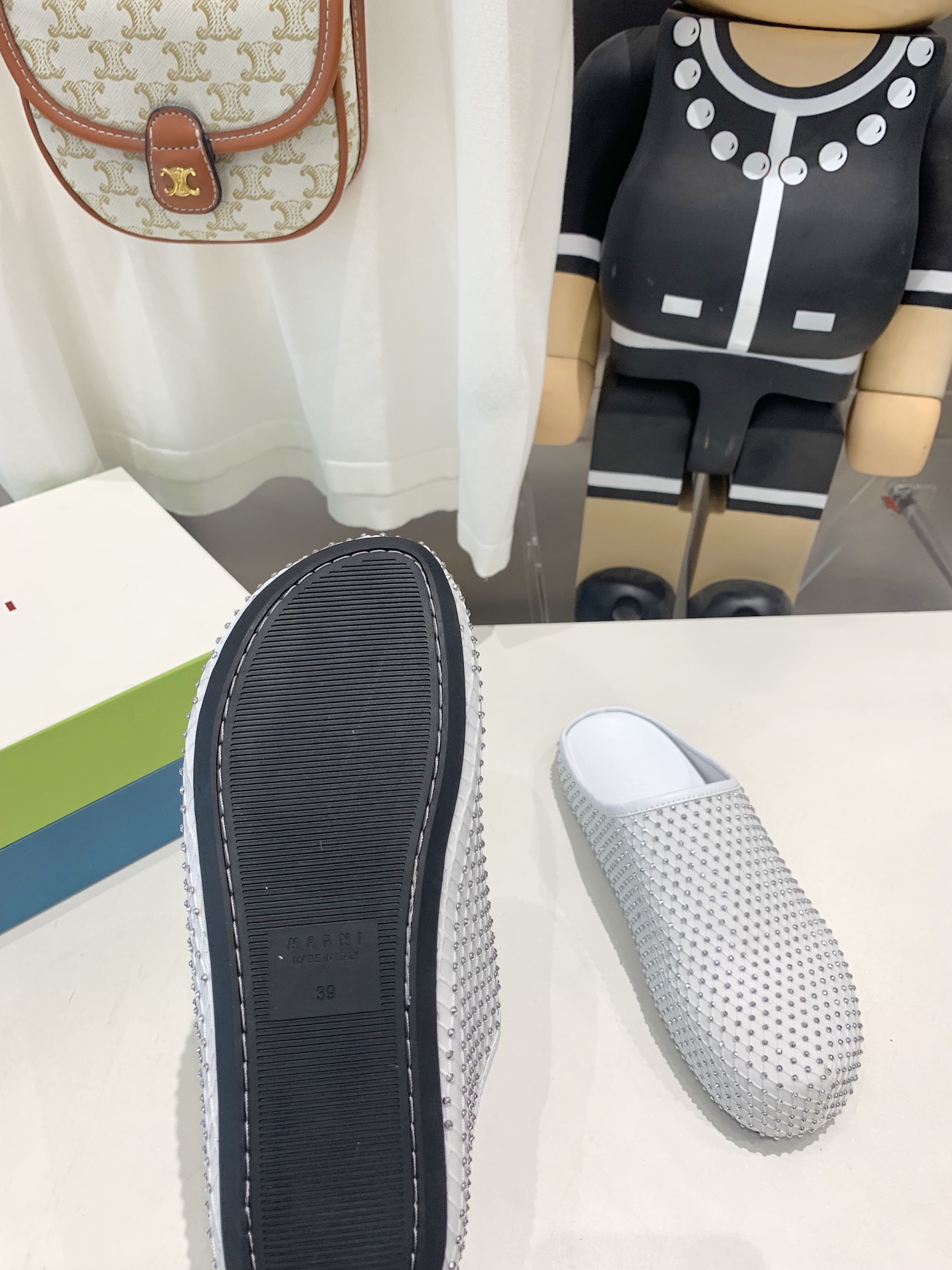 这款鞋子是AAAAA 1:1 质量 (非常棒). 使用了和原版一模一样的材料. 商标部分也保持了和马尔尼/Marni一样. 图片拍摄是实物鞋子拍摄, 您所收到的实物保证和我们图片一模一样.