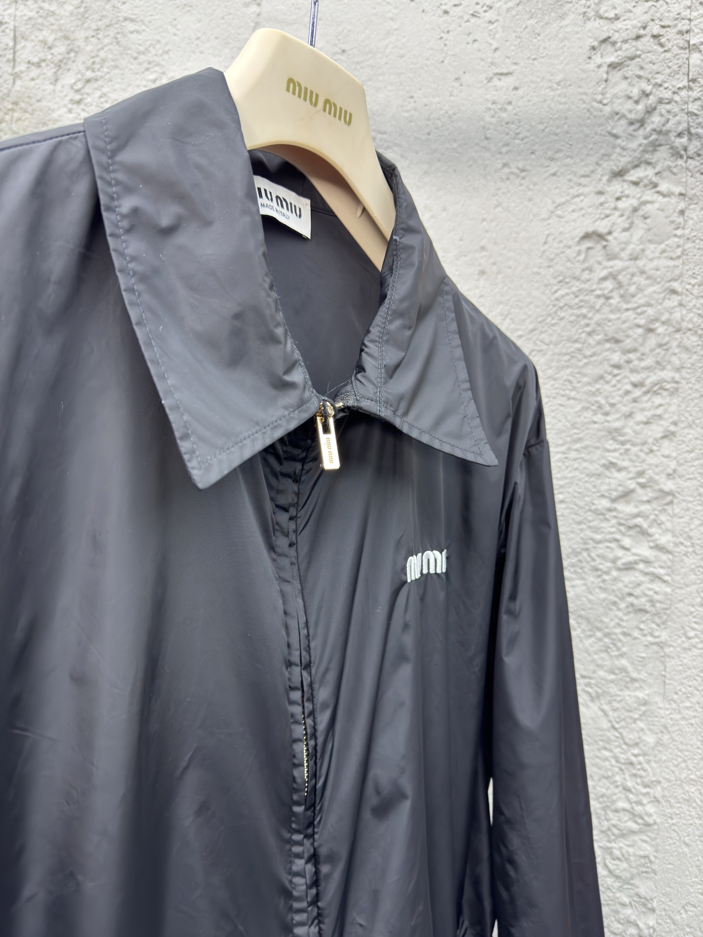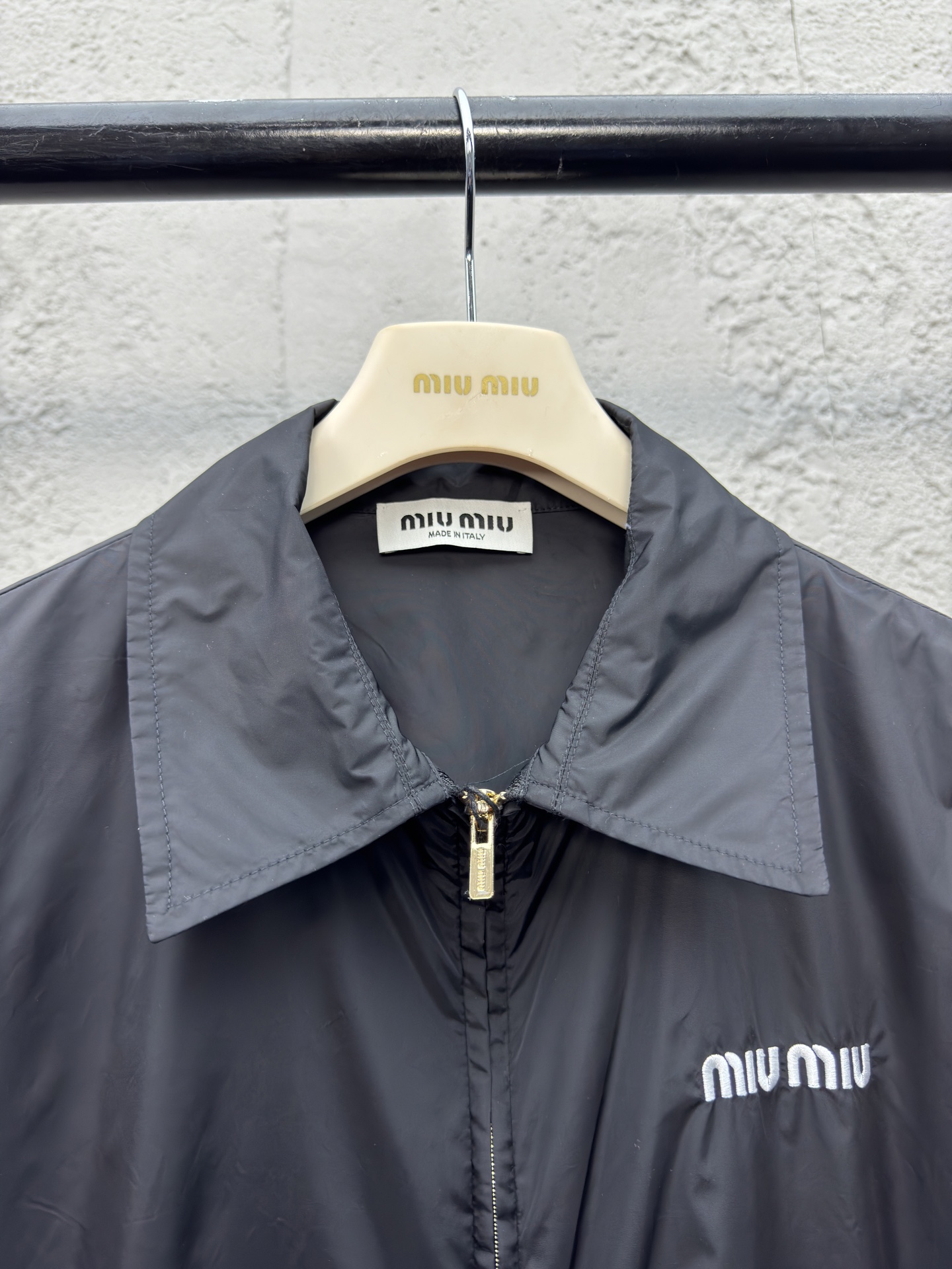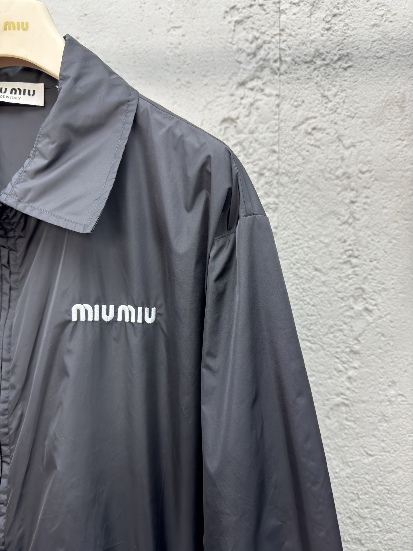 这款衣服是AAAAA 1:1 质量 (非常棒). 使用了和原版一模一样的材料. 商标部分也保持了和缪缪/Miu Miu一样. 图片拍摄是实物衣服拍摄, 您所收到的实物保证和我们图片一模一样.