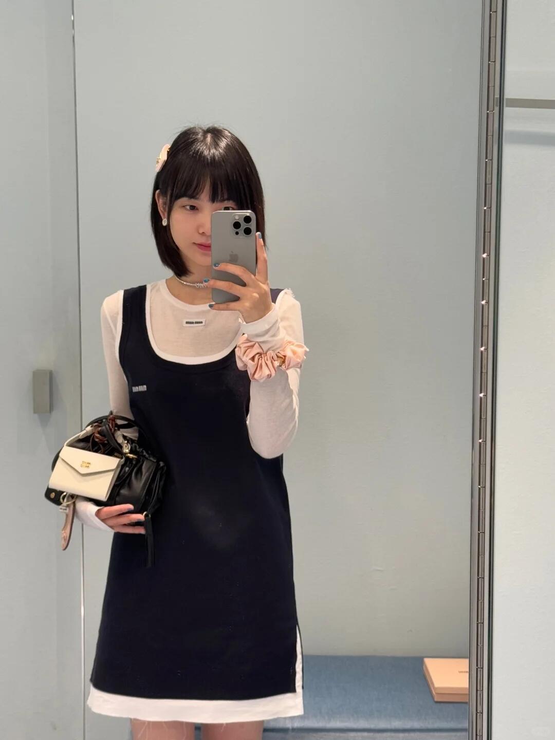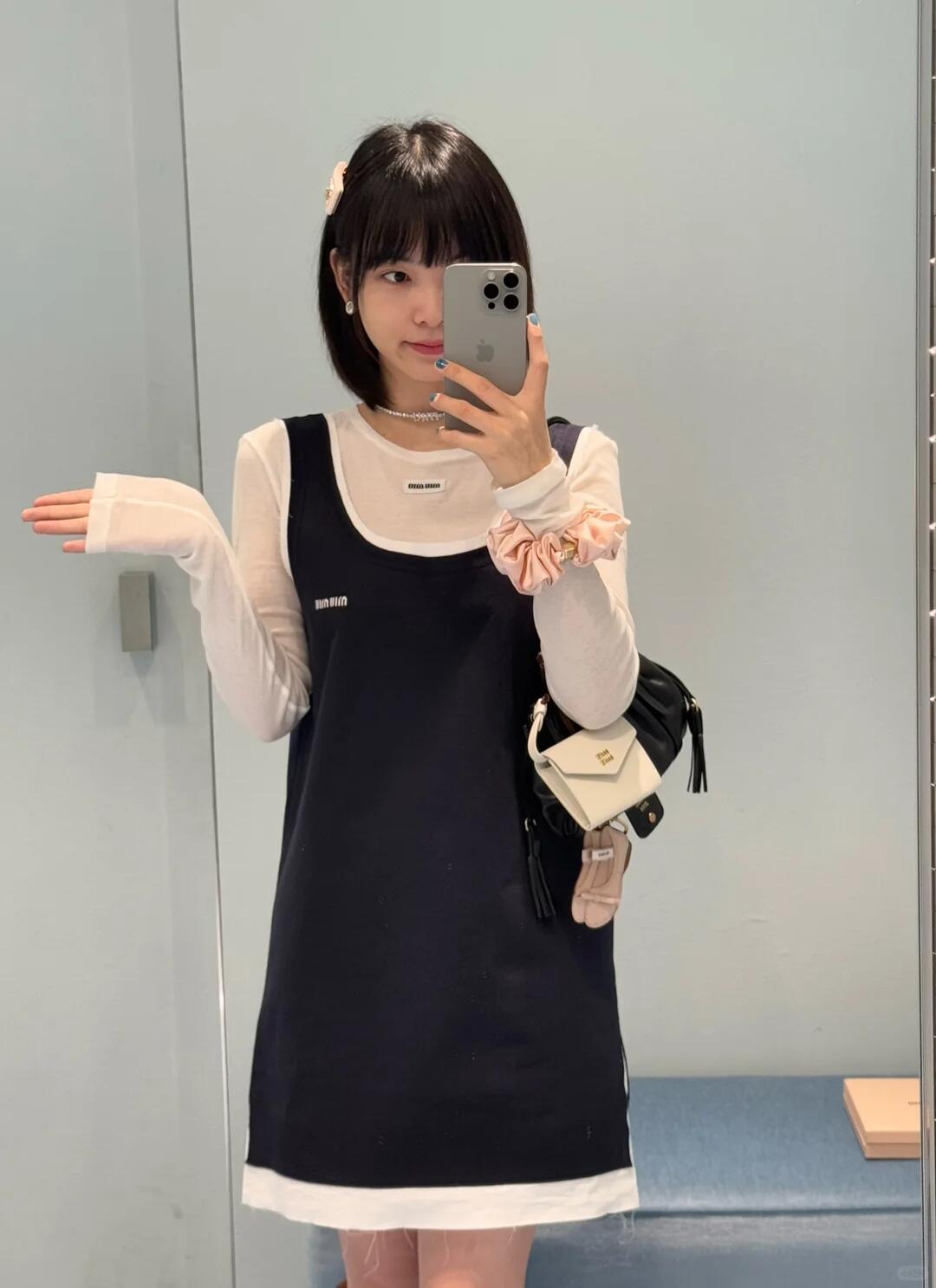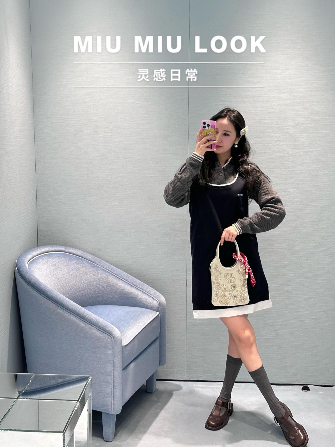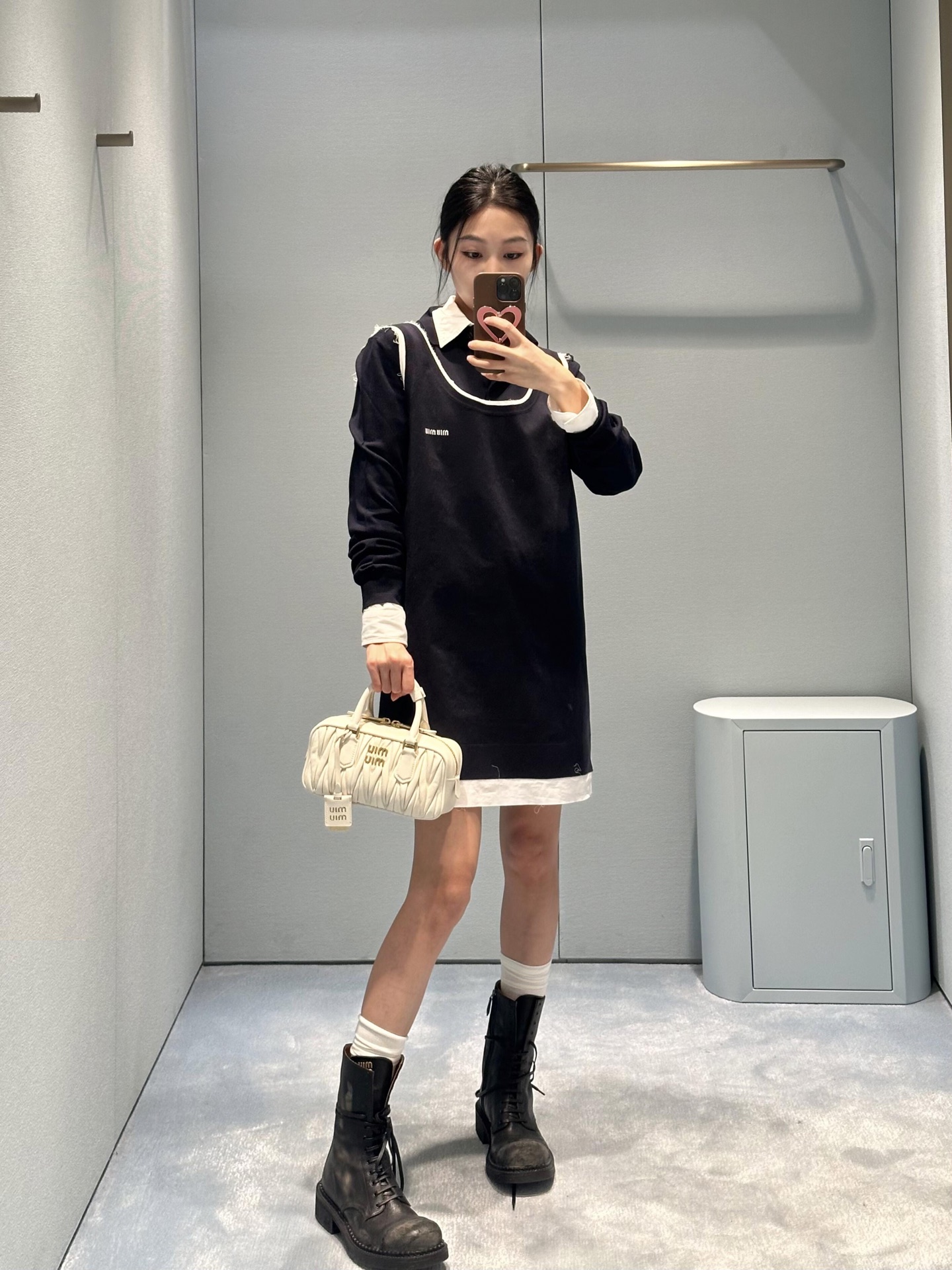 这款衣服是AAAAA 1:1 质量 (非常棒). 使用了和原版一模一样的材料. 商标部分也保持了和缪缪/Miu Miu一样. 图片拍摄是实物衣服拍摄, 您所收到的实物保证和我们图片一模一样.