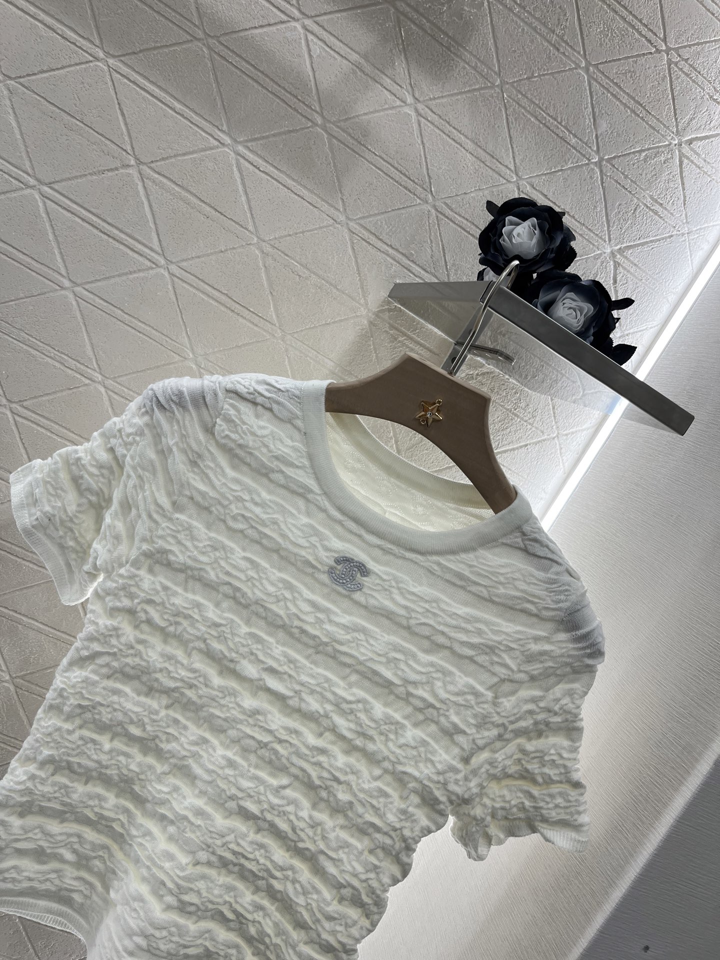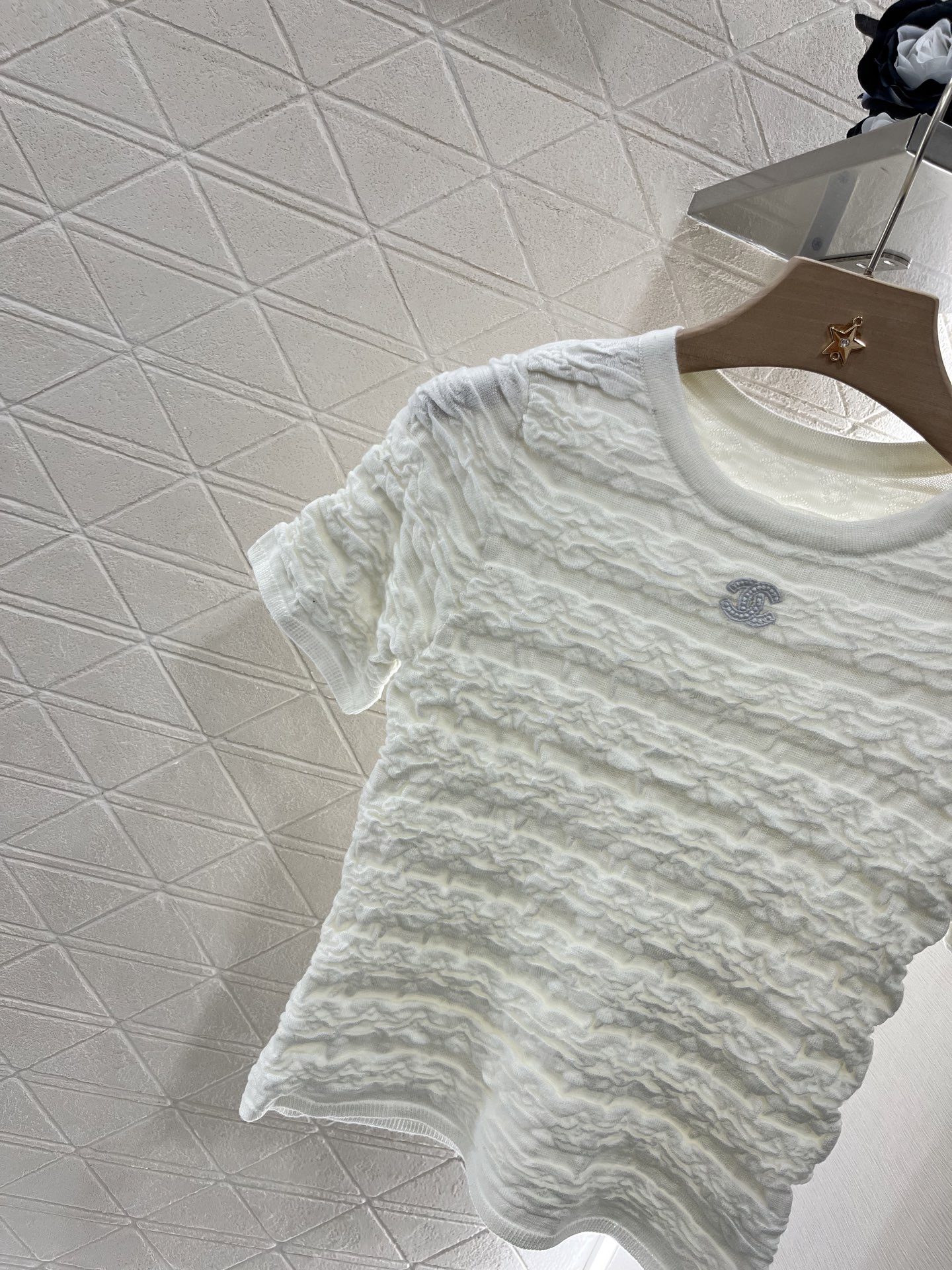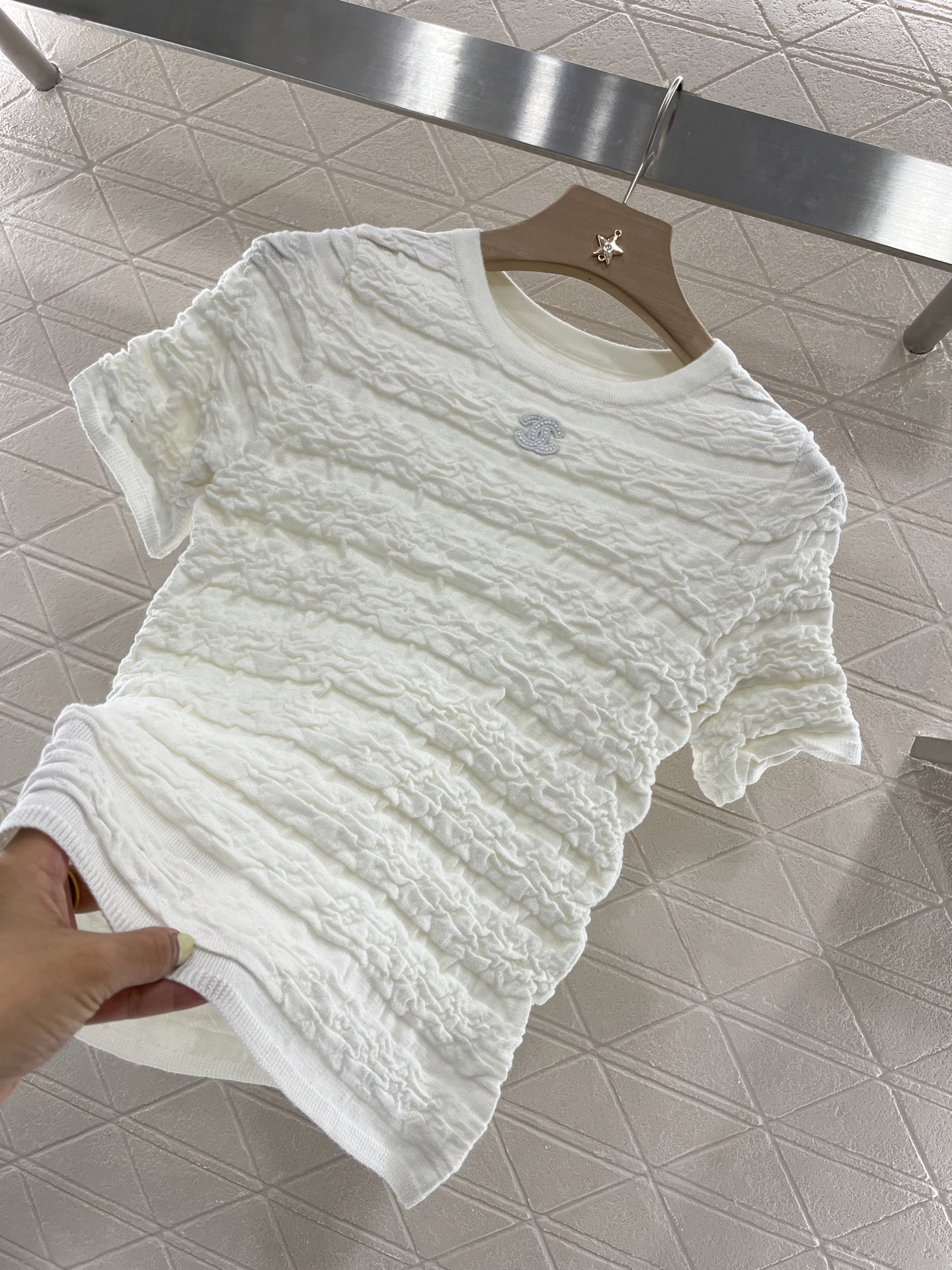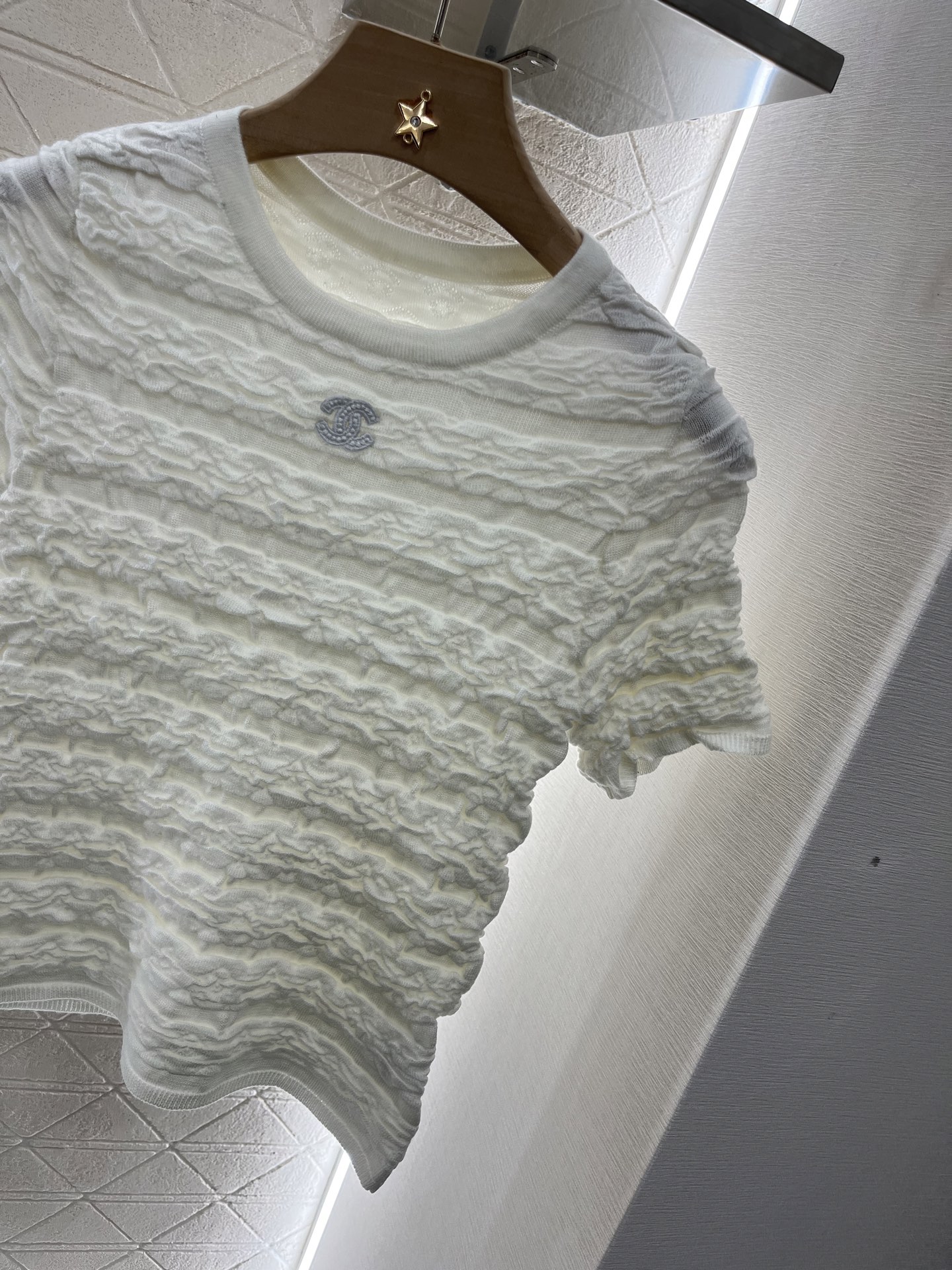 这款衣服是AAAAA 1:1 质量 (非常棒). 使用了和原版一模一样的材料. 商标部分也保持了和香奈儿/Chanel一样. 图片拍摄是实物衣服拍摄, 您所收到的实物保证和我们图片一模一样.