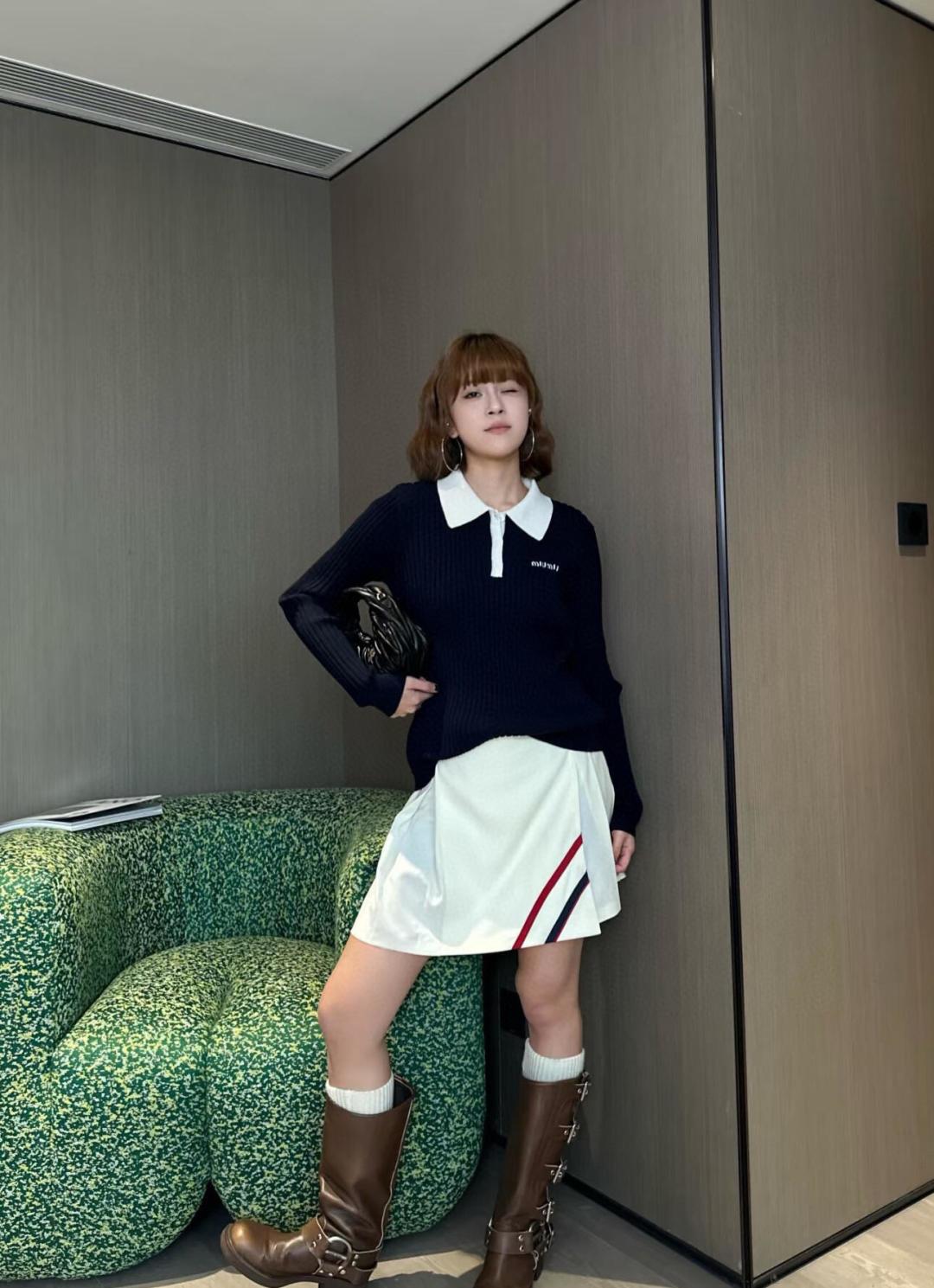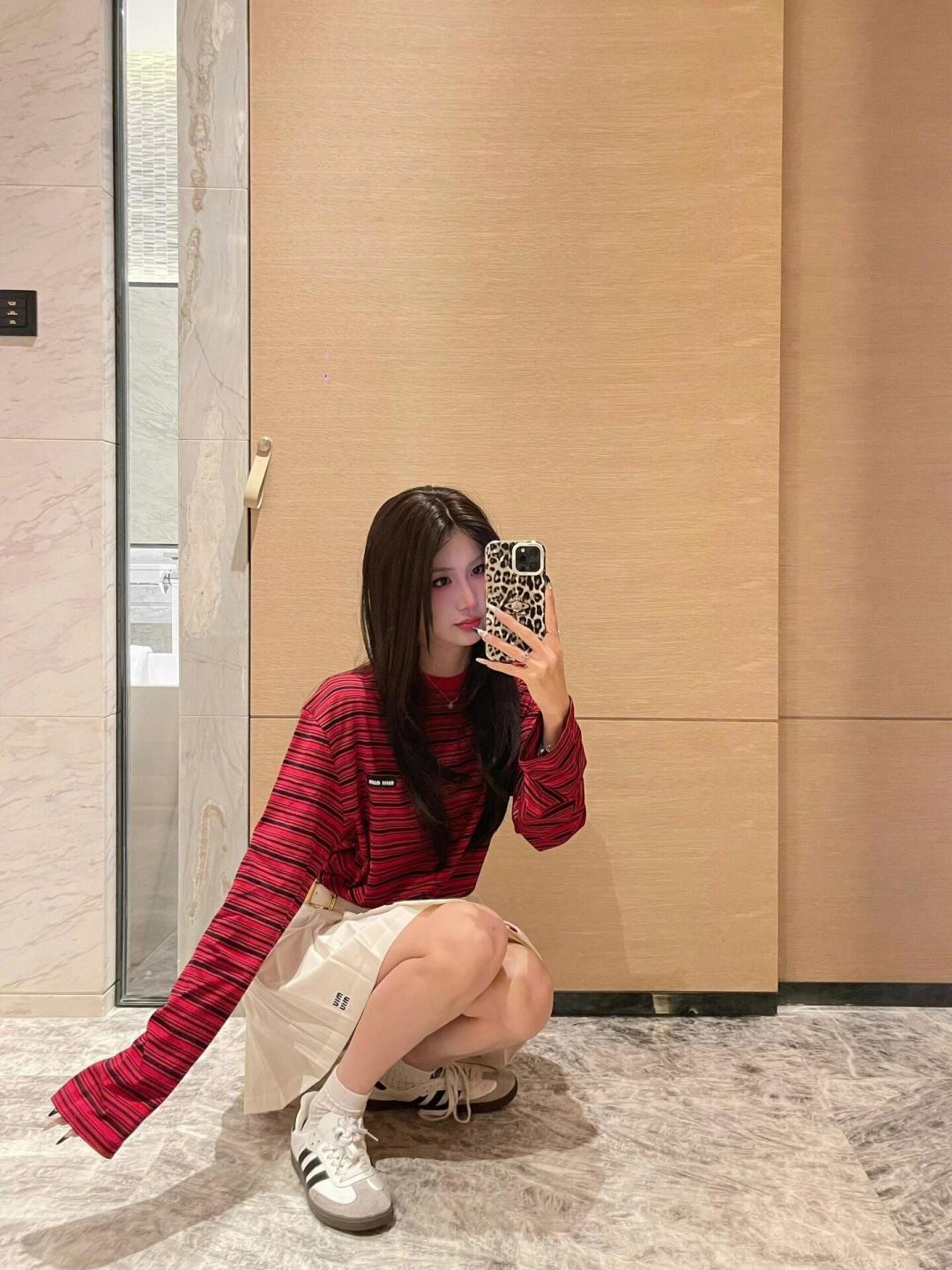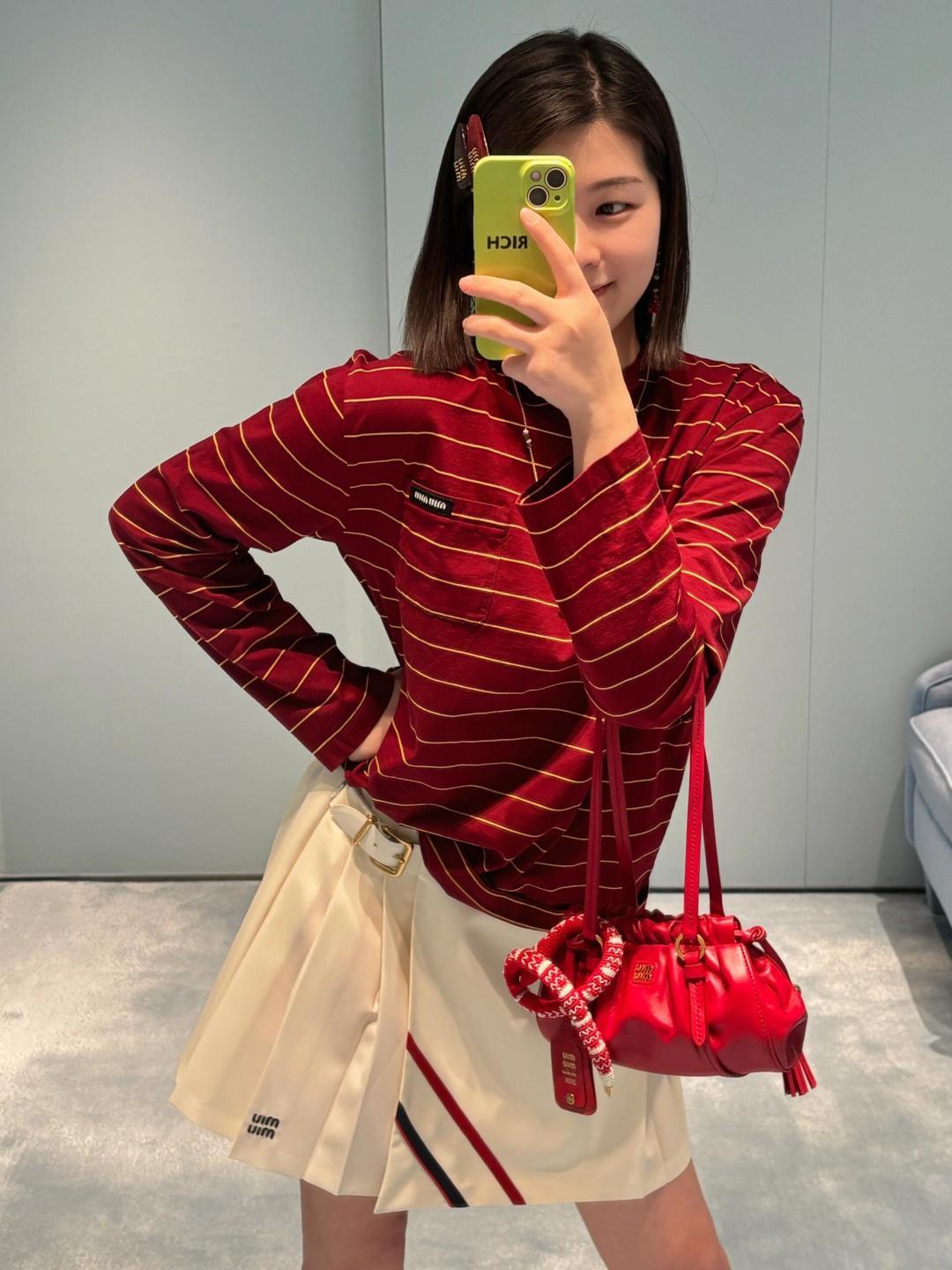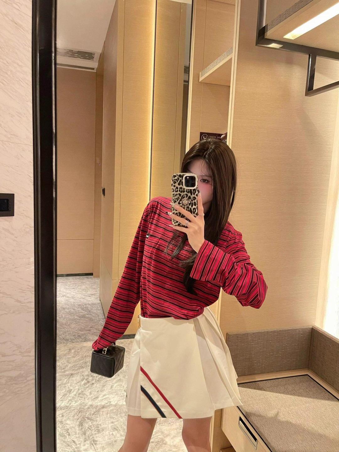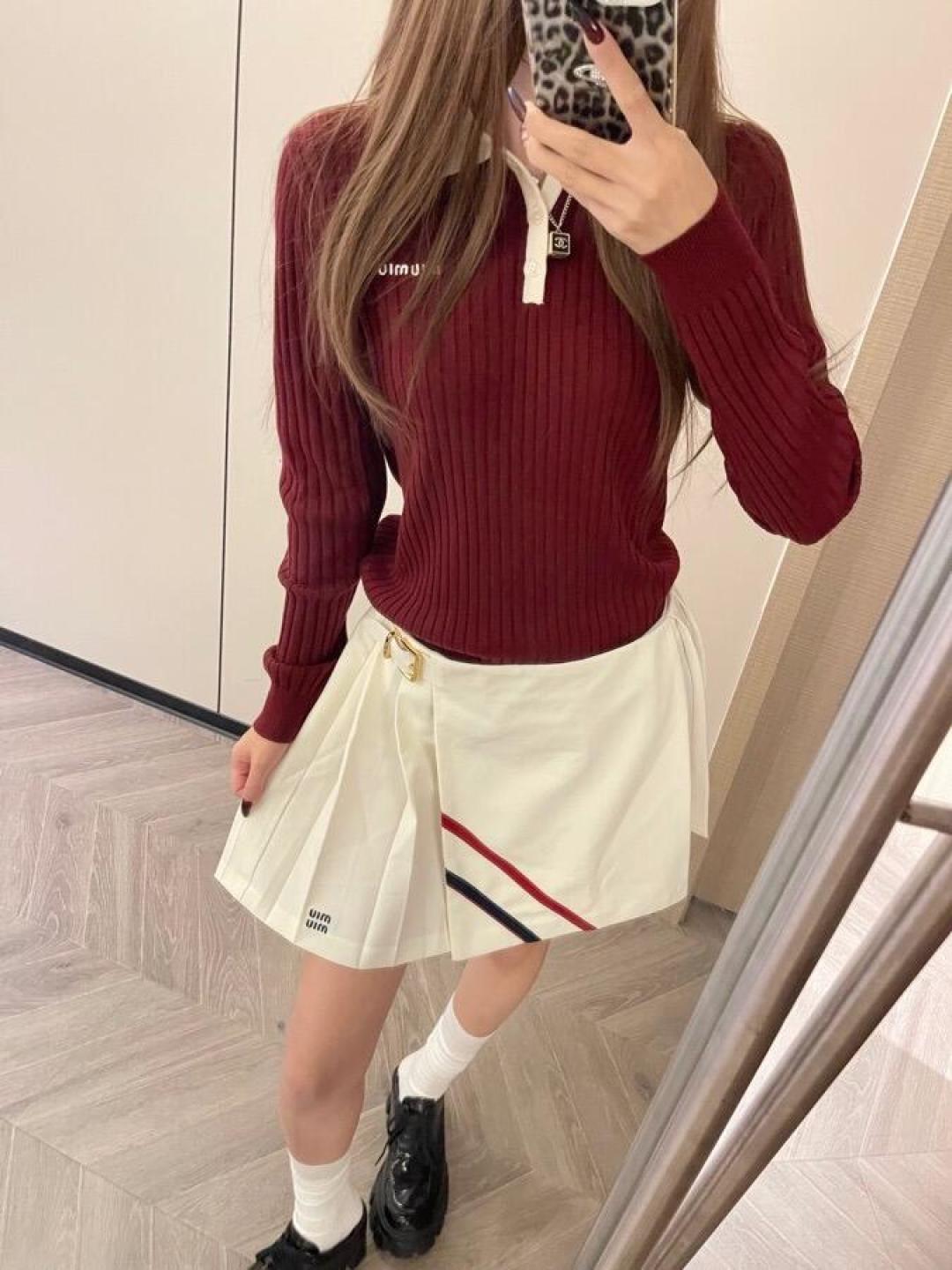 这款衣服是AAAAA 1:1 质量 (非常棒). 使用了和原版一模一样的材料. 商标部分也保持了和缪缪/Miu Miu一样. 图片拍摄是实物衣服拍摄, 您所收到的实物保证和我们图片一模一样.
