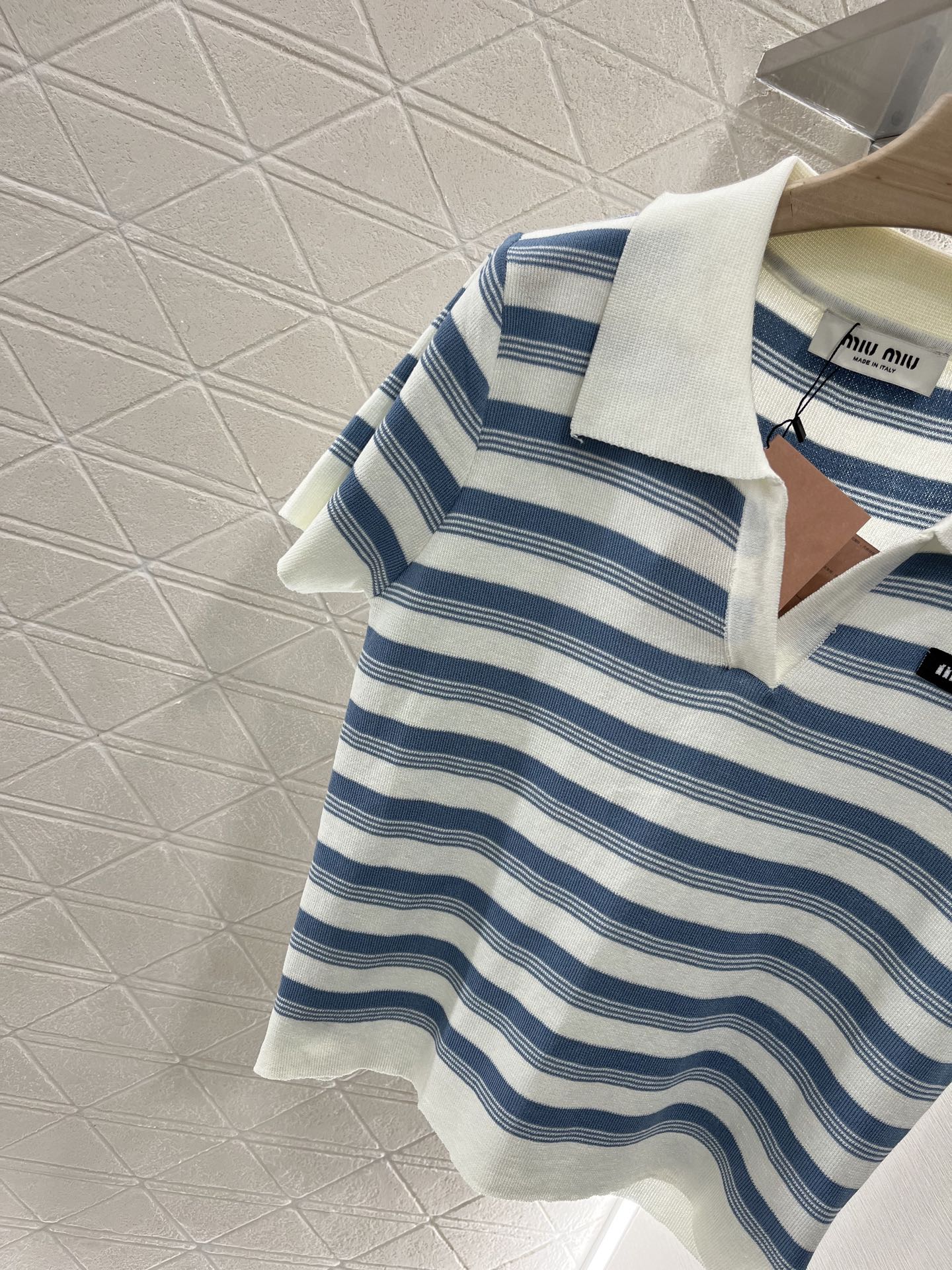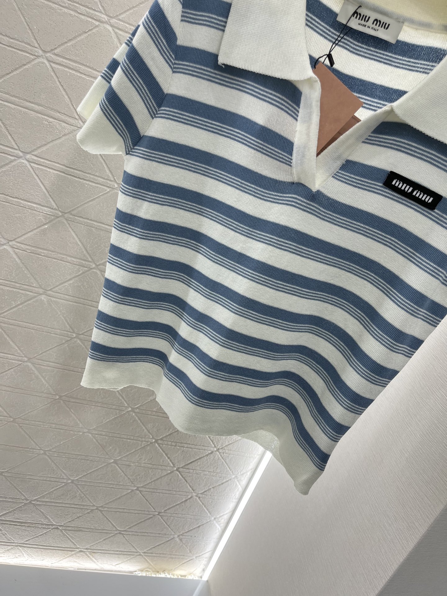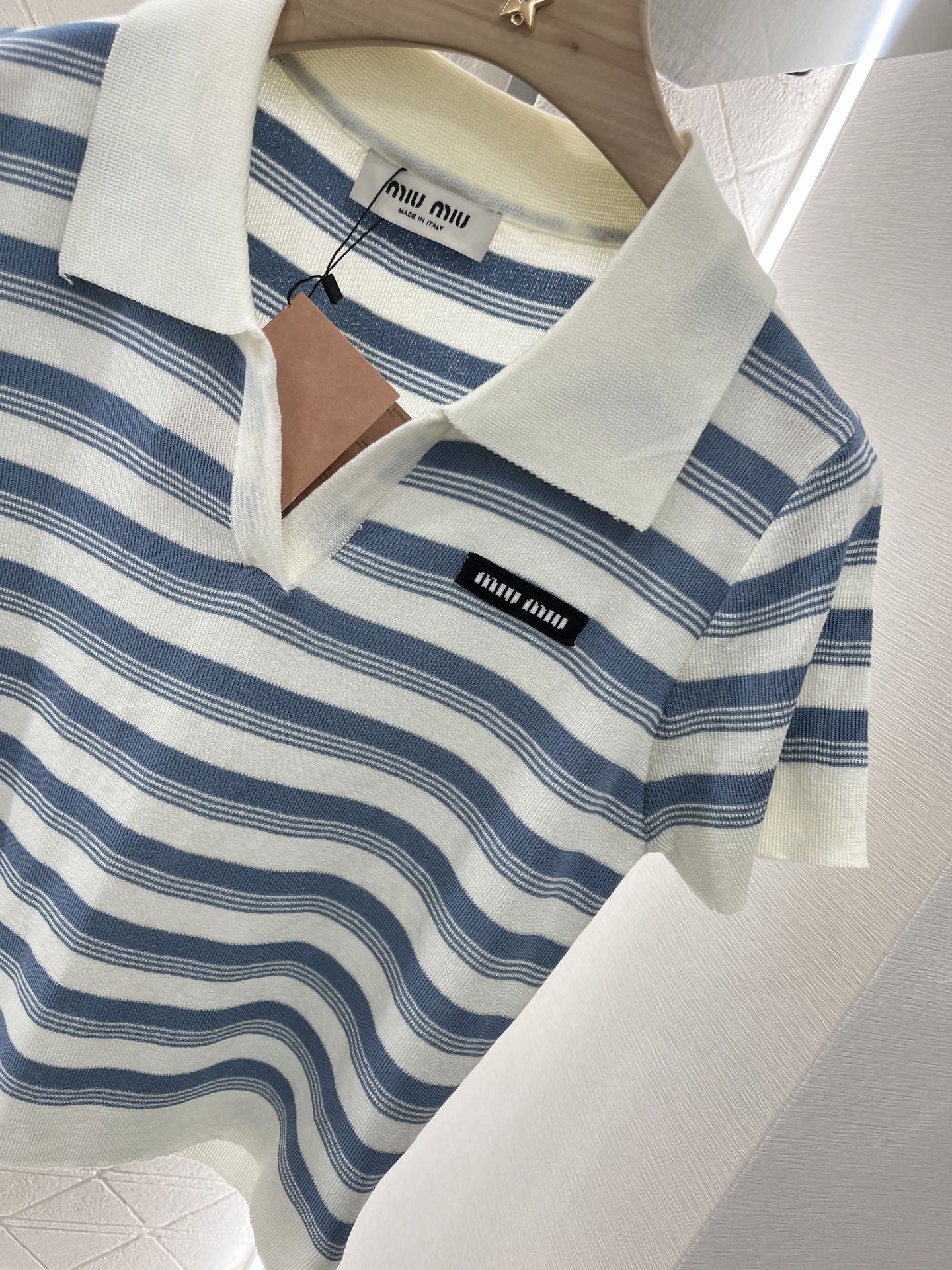 这款衣服是AAAAA 1:1 质量 (非常棒). 使用了和原版一模一样的材料. 商标部分也保持了和缪缪/Miu Miu一样. 图片拍摄是实物衣服拍摄, 您所收到的实物保证和我们图片一模一样.