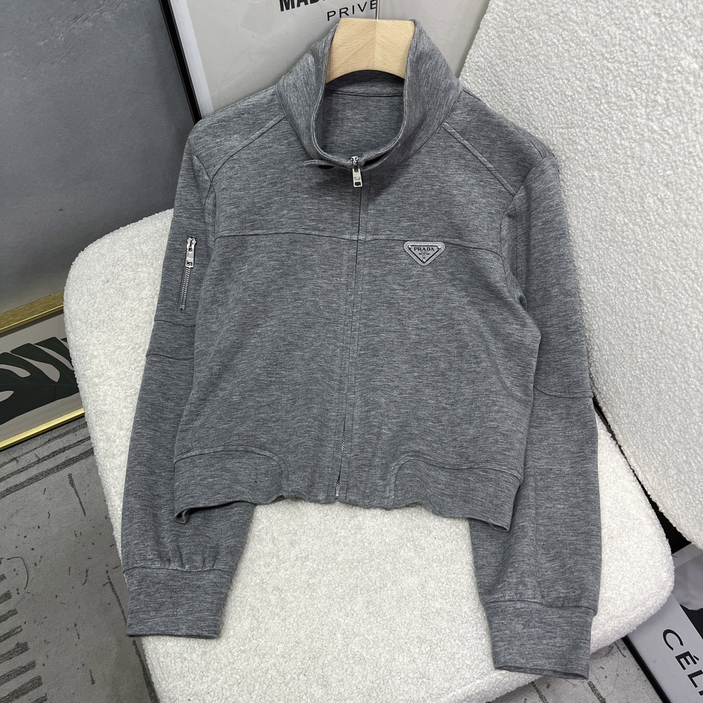 这款衣服是AAAAA 1:1 质量 (非常棒). 使用了和原版一模一样的材料. 商标部分也保持了和普拉达/Prada一样. 图片拍摄是实物衣服拍摄, 您所收到的实物保证和我们图片一模一样.