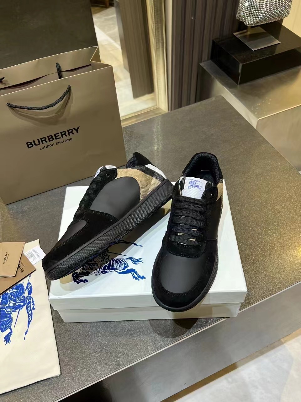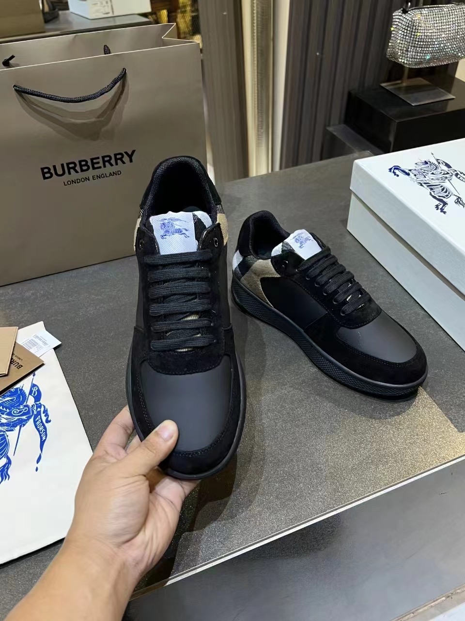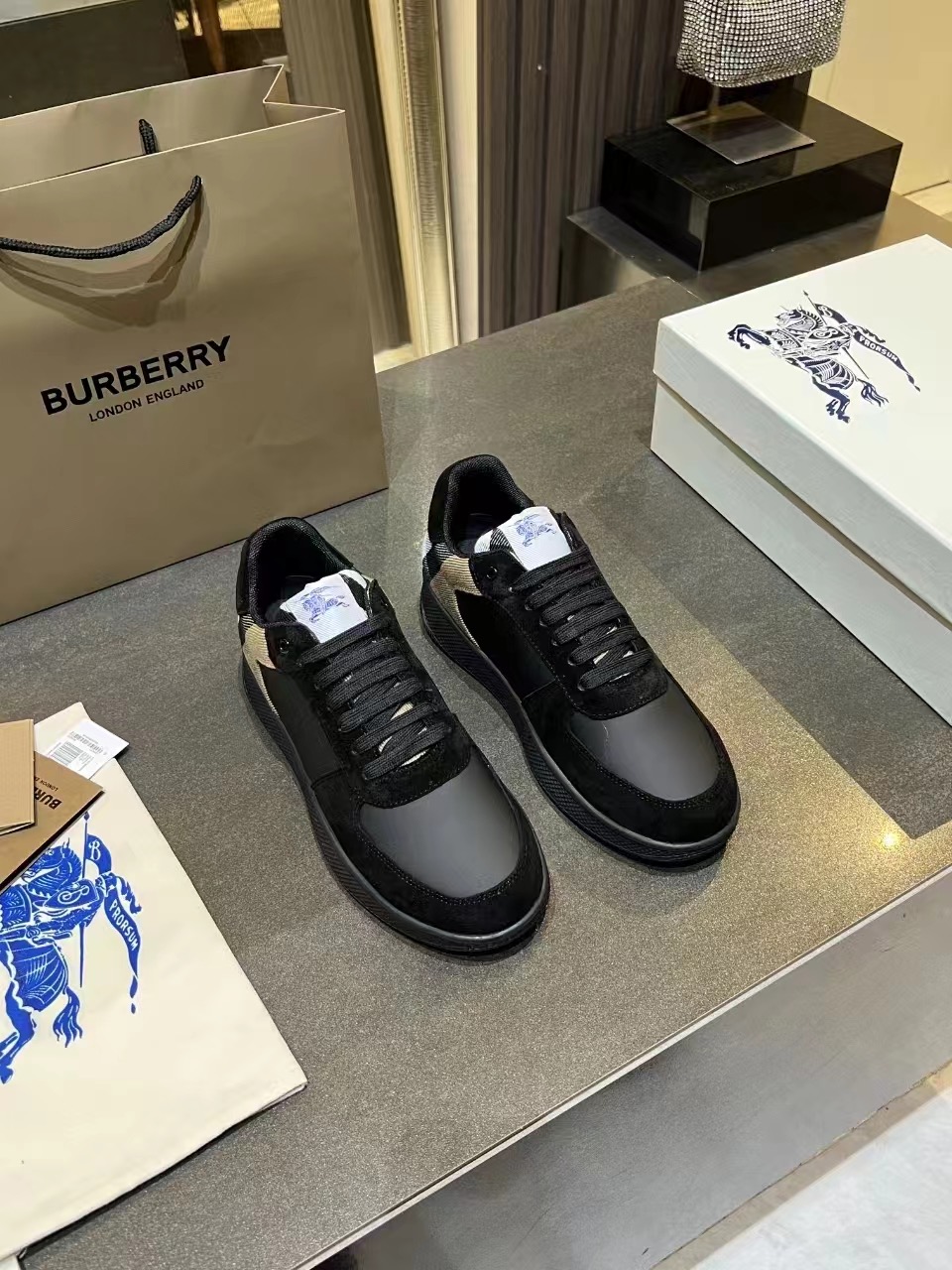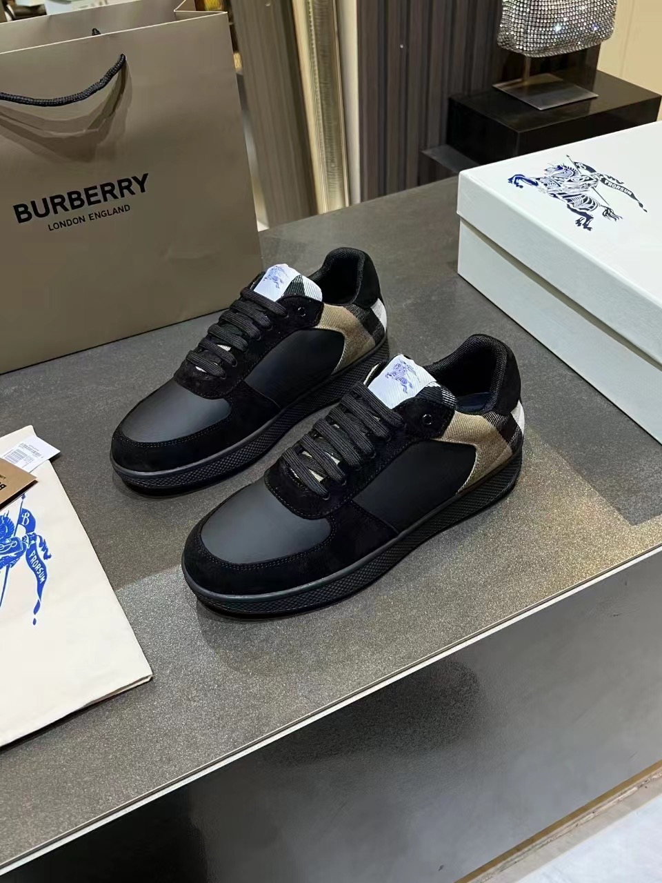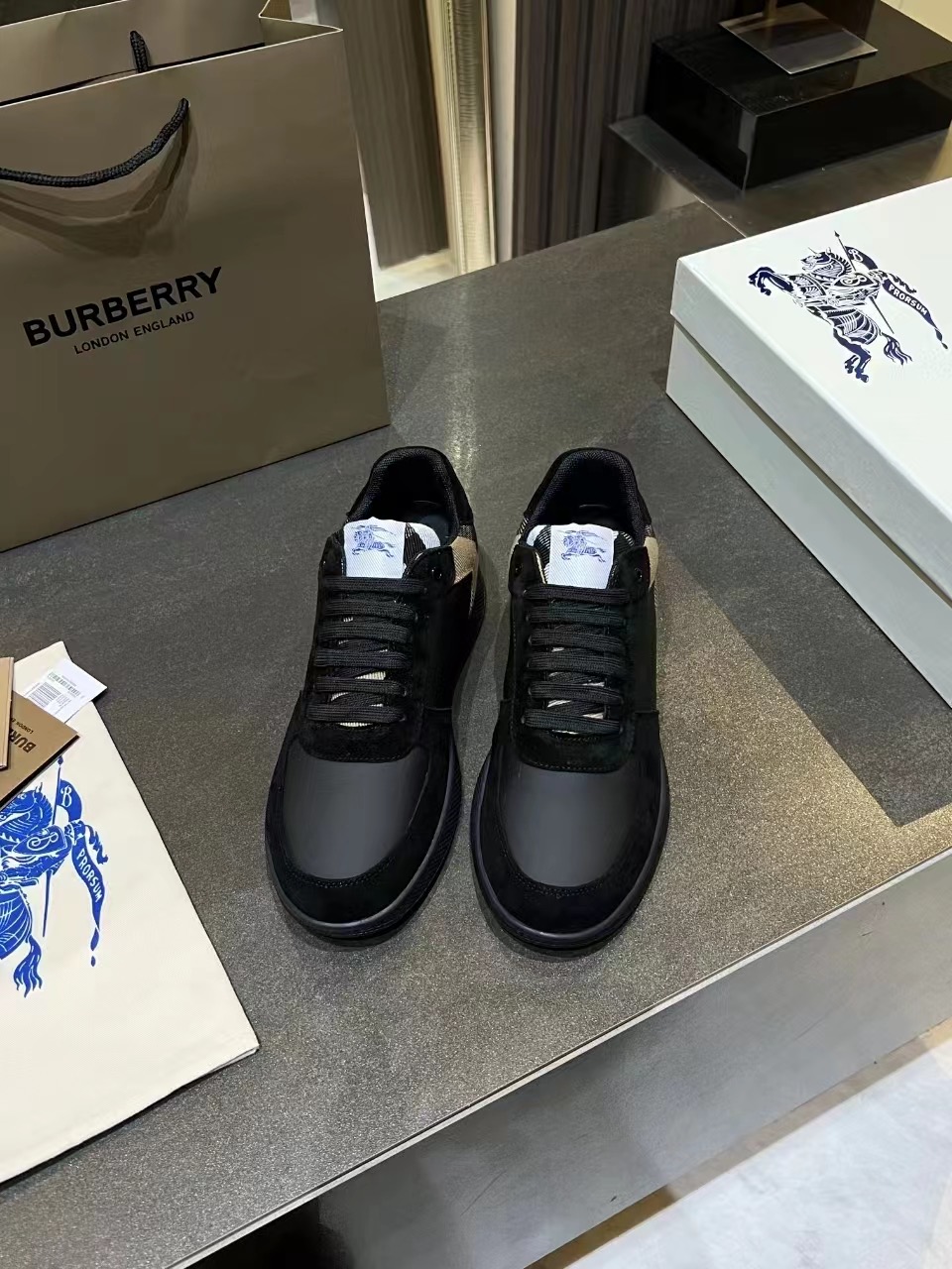 这款鞋子是AAAAA 1:1 质量 (非常棒). 使用了和原版一模一样的材料. 商标部分也保持了和巴宝莉/Burberry一样. 图片拍摄是实物鞋子拍摄, 您所收到的实物保证和我们图片一模一样.