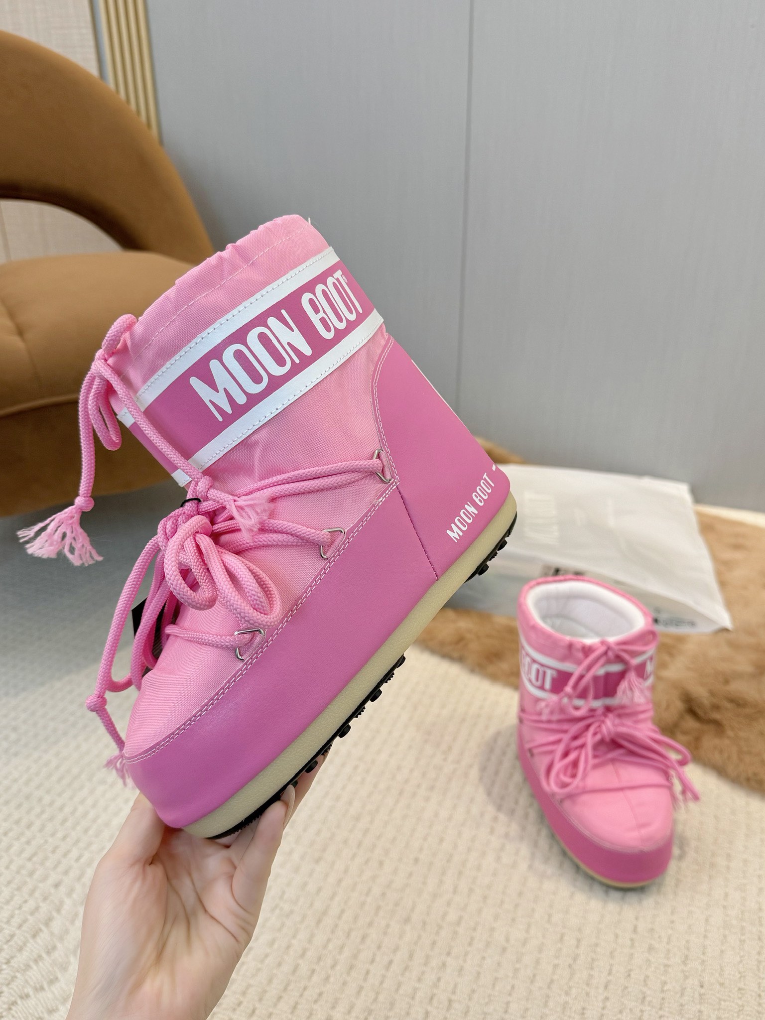 这款鞋子是AAAAA 1:1 质量 (非常棒). 使用了和原版一模一样的材料. 商标部分也保持了和UGG雪地靴一样. 图片拍摄是实物鞋子拍摄, 您所收到的实物保证和我们图片一模一样.