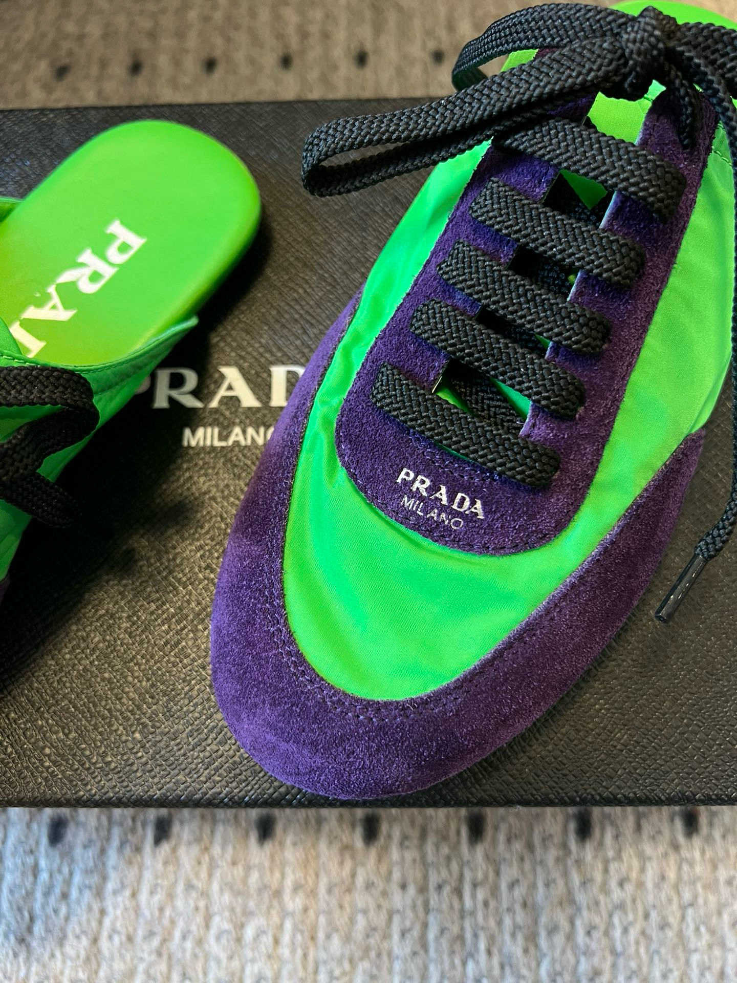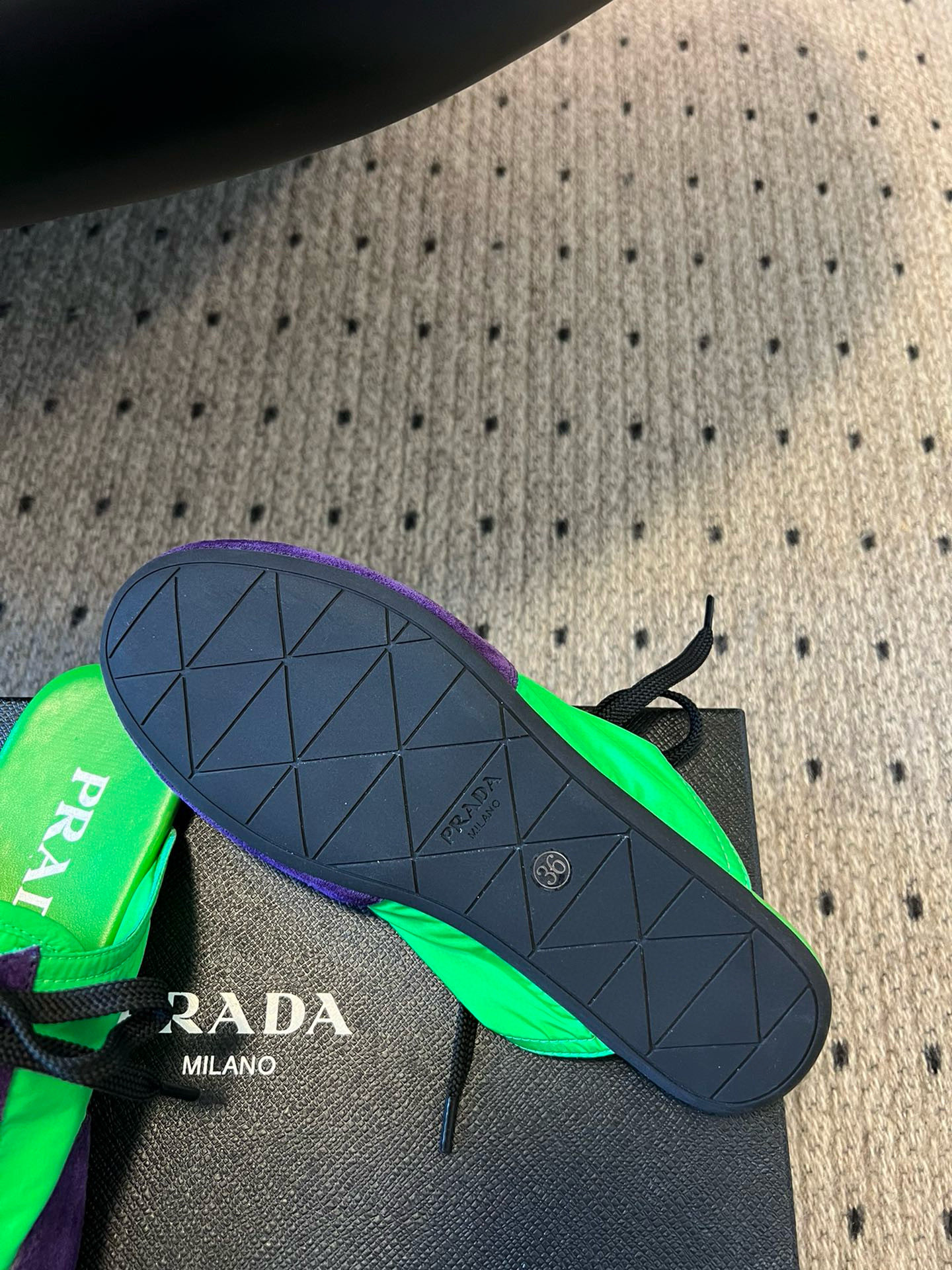 这款鞋子是AAAAA 1:1 质量 (非常棒). 使用了和原版一模一样的材料. 商标部分也保持了和普拉达/Prada一样. 图片拍摄是实物鞋子拍摄, 您所收到的实物保证和我们图片一模一样.