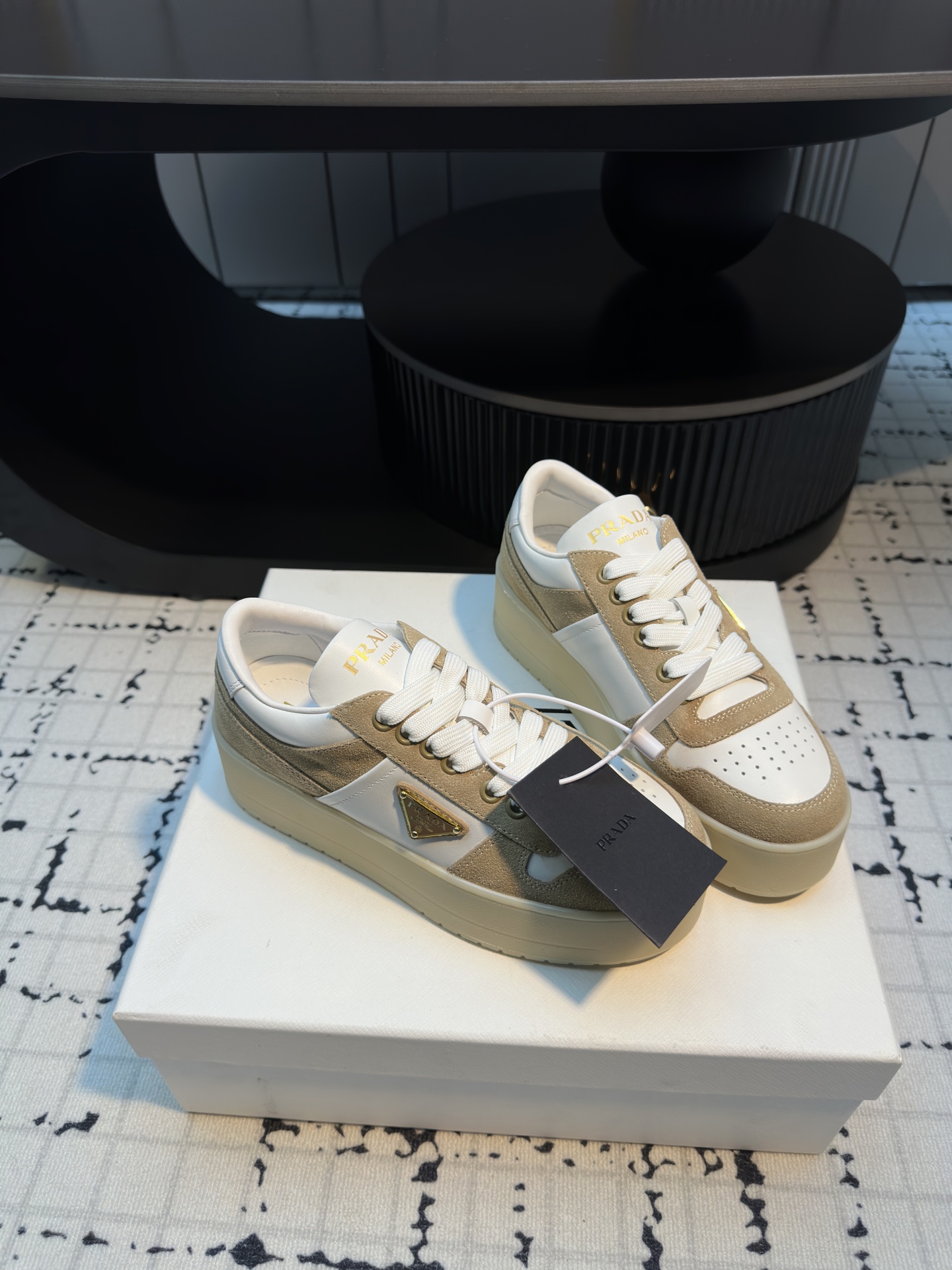 这款鞋子是AAAAA 1:1 质量 (非常棒). 使用了和原版一模一样的材料. 商标部分也保持了和普拉达/Prada一样. 图片拍摄是实物鞋子拍摄, 您所收到的实物保证和我们图片一模一样.