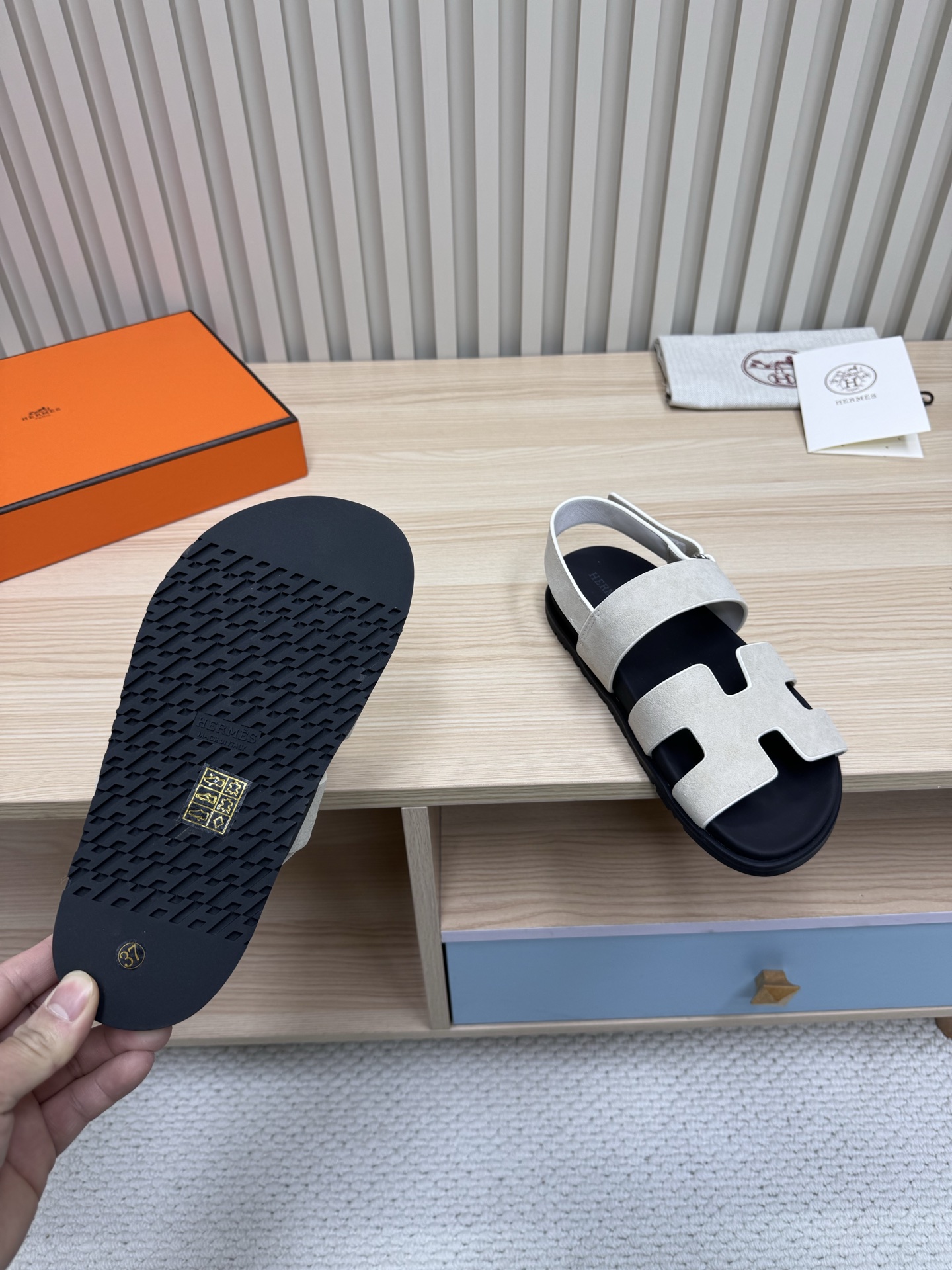 这款鞋子是AAAAA 1:1 质量 (非常棒). 使用了和原版一模一样的材料. 商标部分也保持了和爱马仕/Hermes一样. 图片拍摄是实物鞋子拍摄, 您所收到的实物保证和我们图片一模一样.