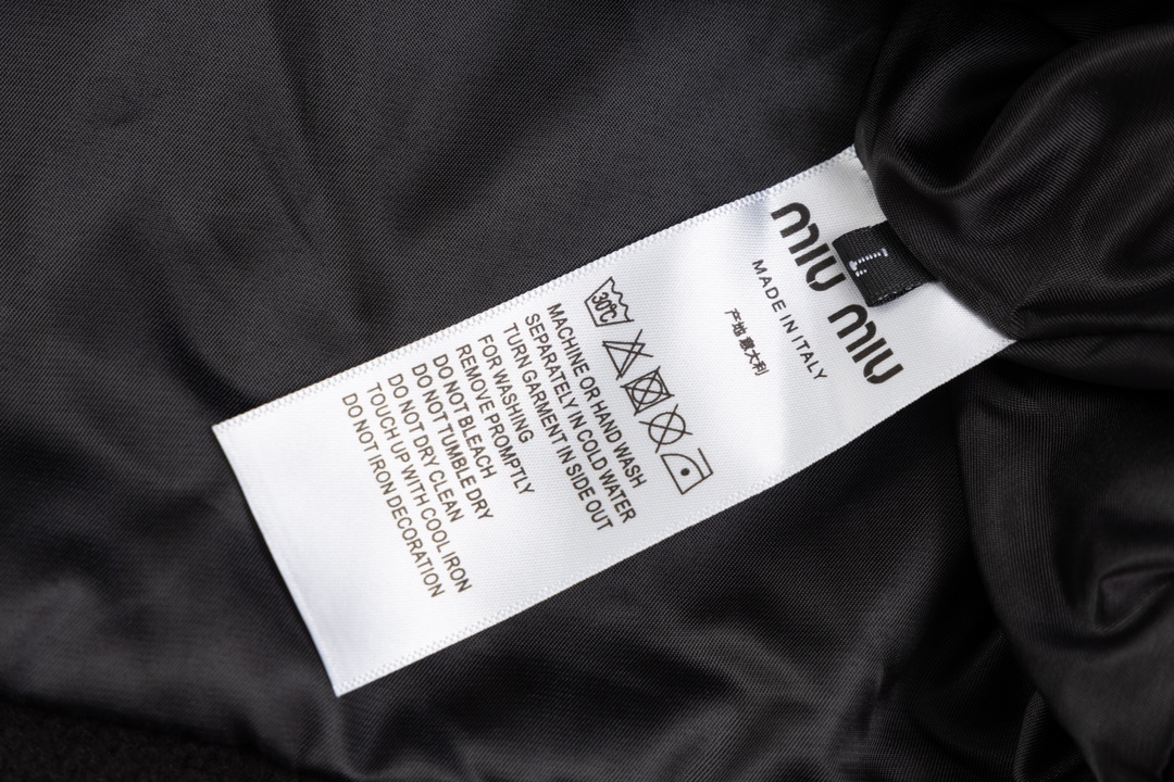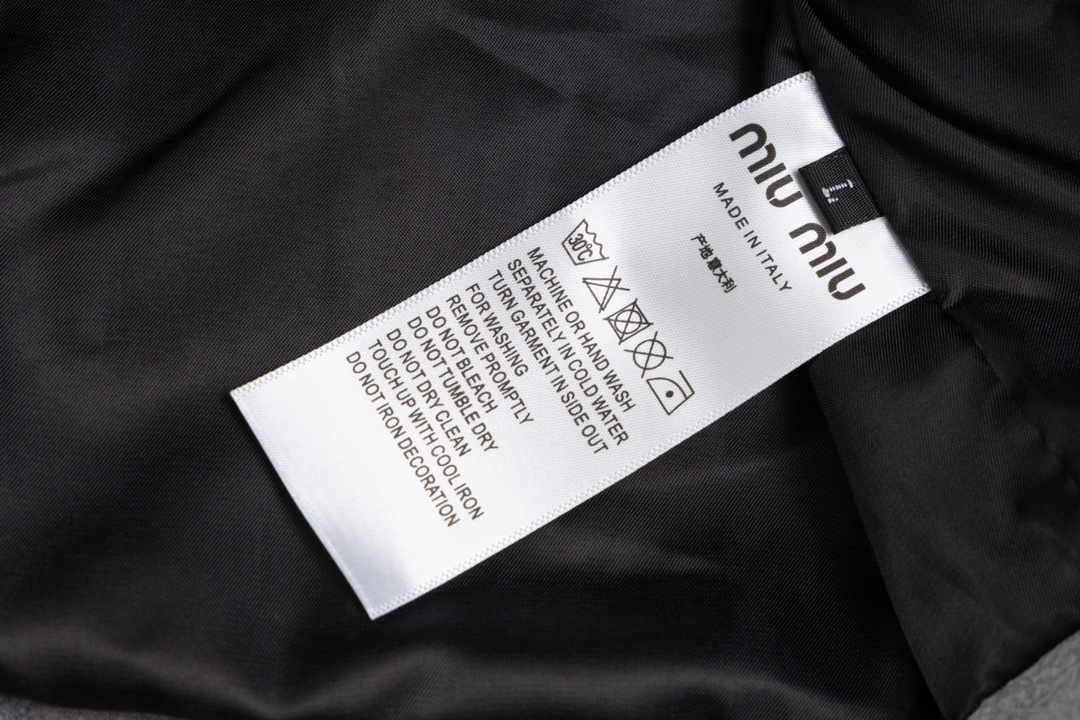 这款衣服是AAAAA 1:1 质量 (非常棒). 使用了和原版一模一样的材料. 商标部分也保持了和缪缪/Miu Miu一样. 图片拍摄是实物衣服拍摄, 您所收到的实物保证和我们图片一模一样.