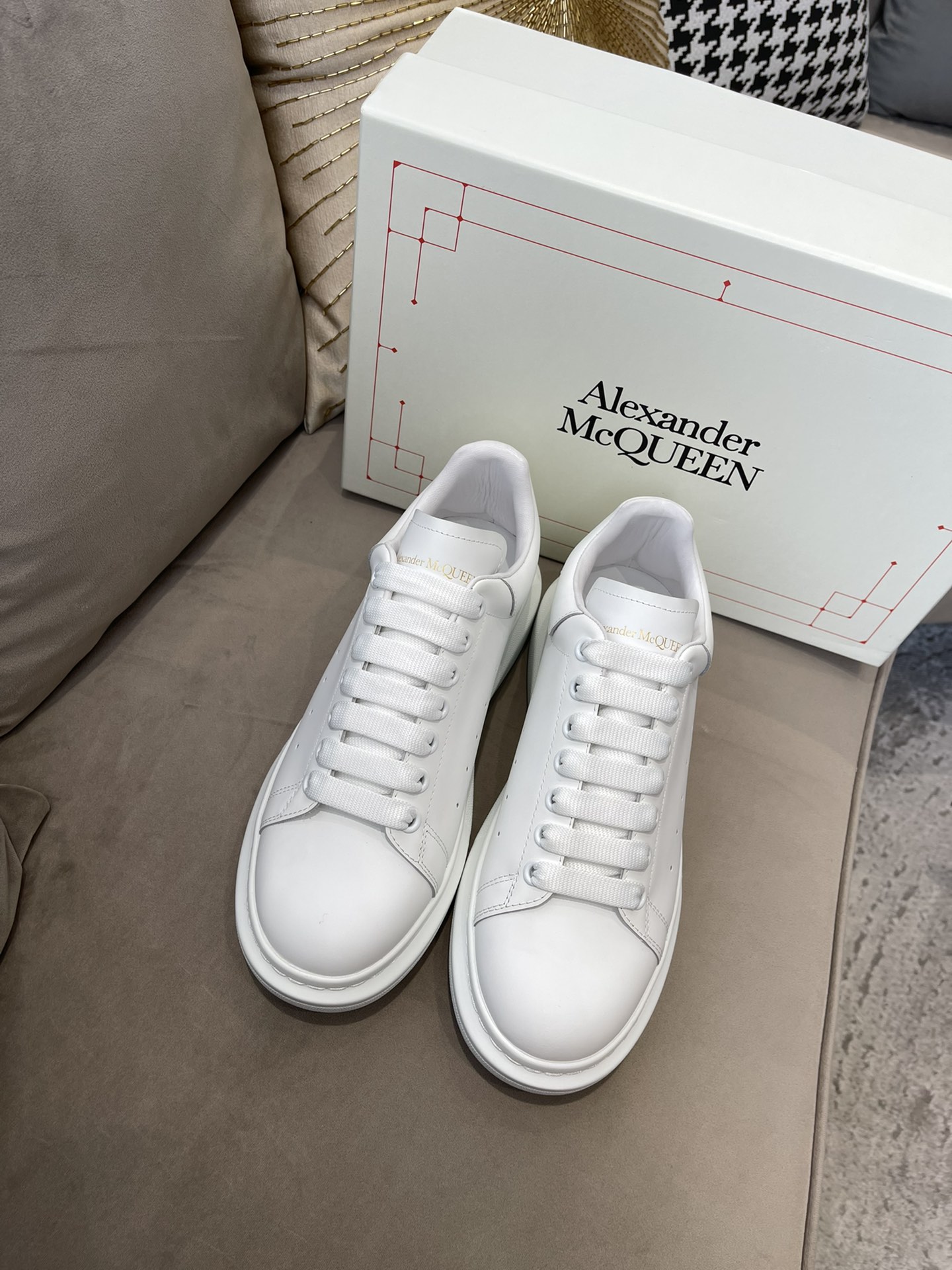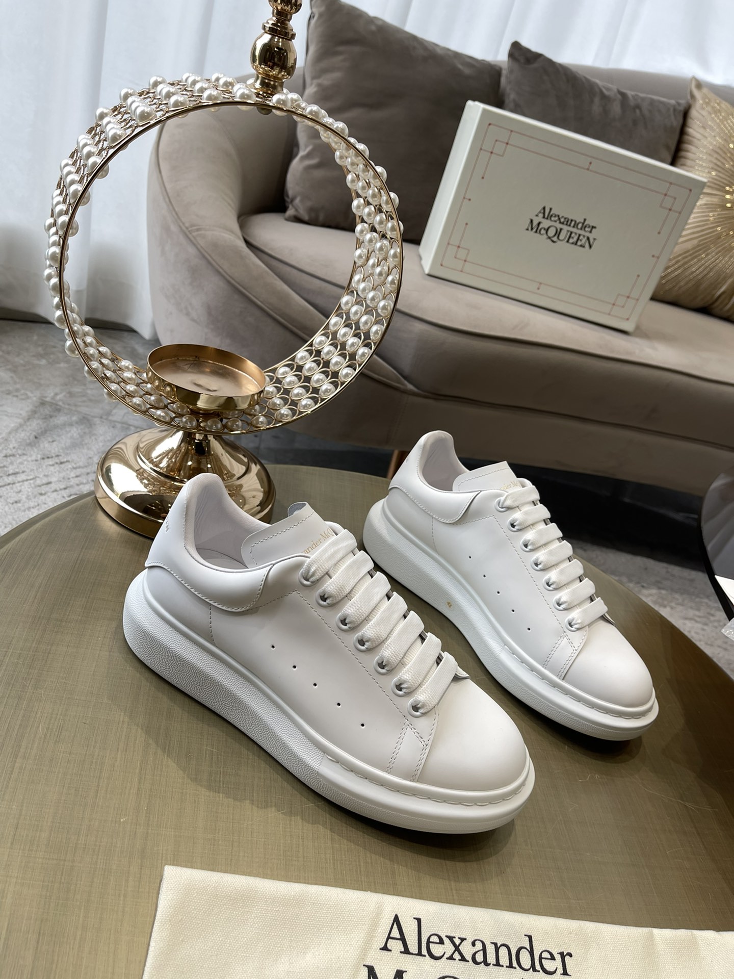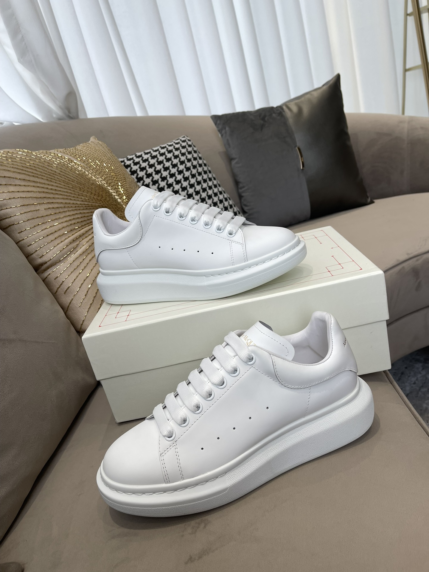 这款鞋子是AAAAA 1:1 质量 (非常棒). 使用了和原版一模一样的材料. 商标部分也保持了和亚历山大·麦昆/McQueen一样. 图片拍摄是实物鞋子拍摄, 您所收到的实物保证和我们图片一模一样.