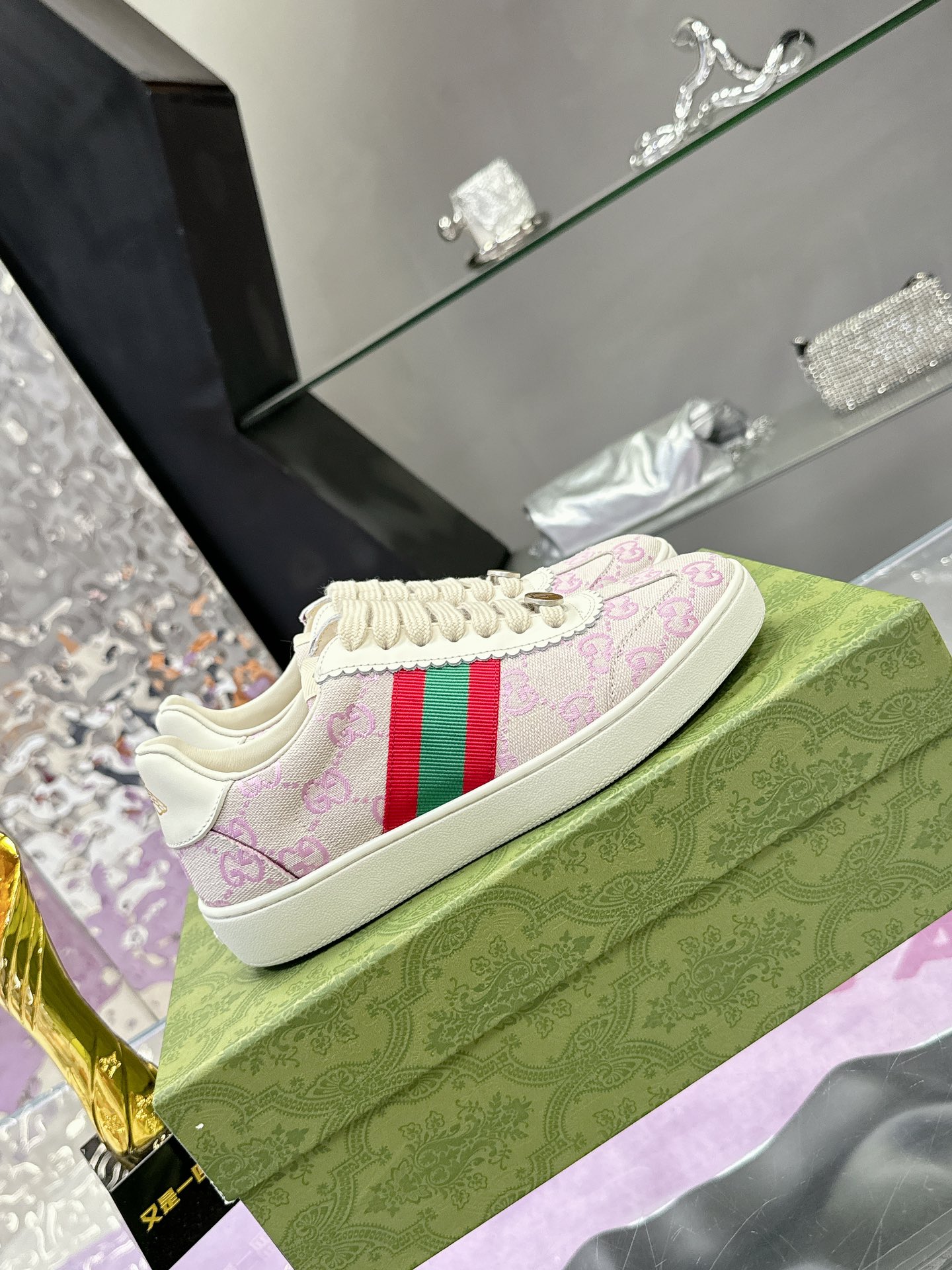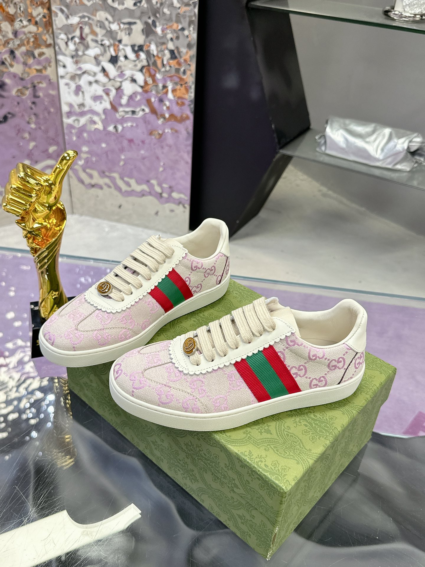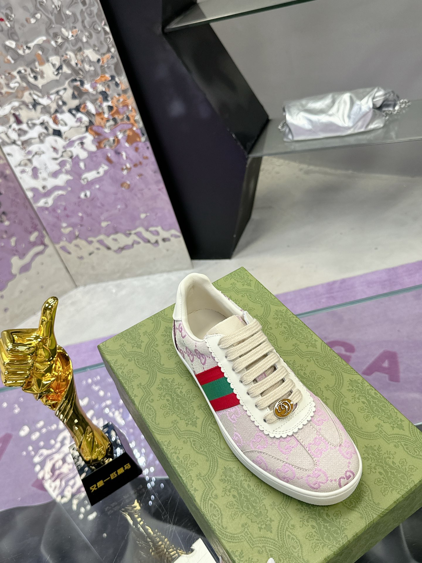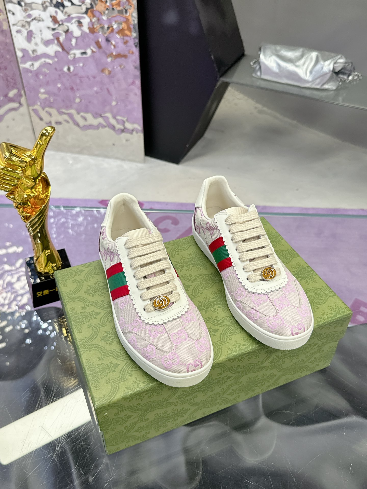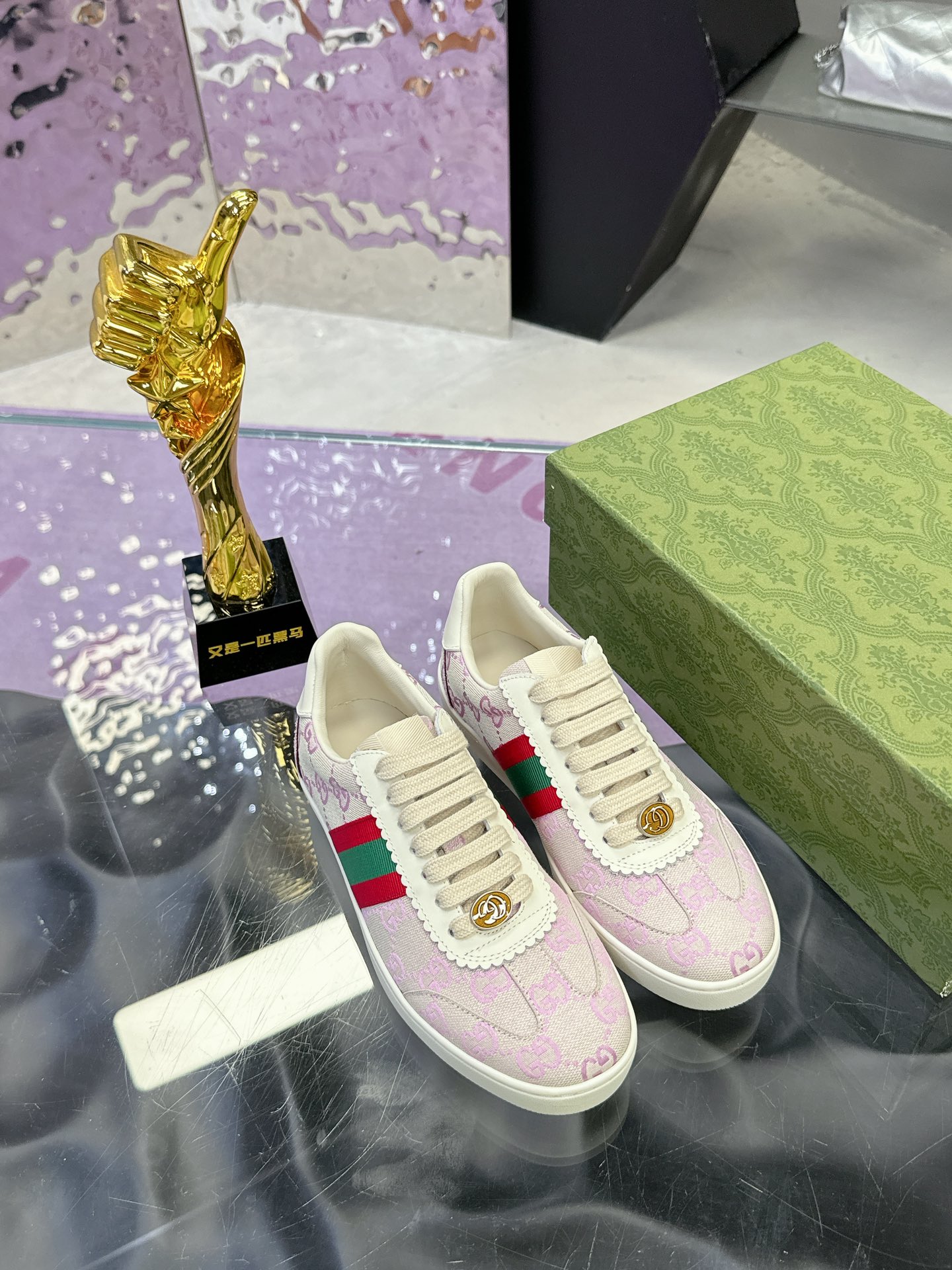 这款鞋子是AAAAA 1:1 质量 (非常棒). 使用了和原版一模一样的材料. 商标部分也保持了和古奇/Gucci一样. 图片拍摄是实物鞋子拍摄, 您所收到的实物保证和我们图片一模一样.