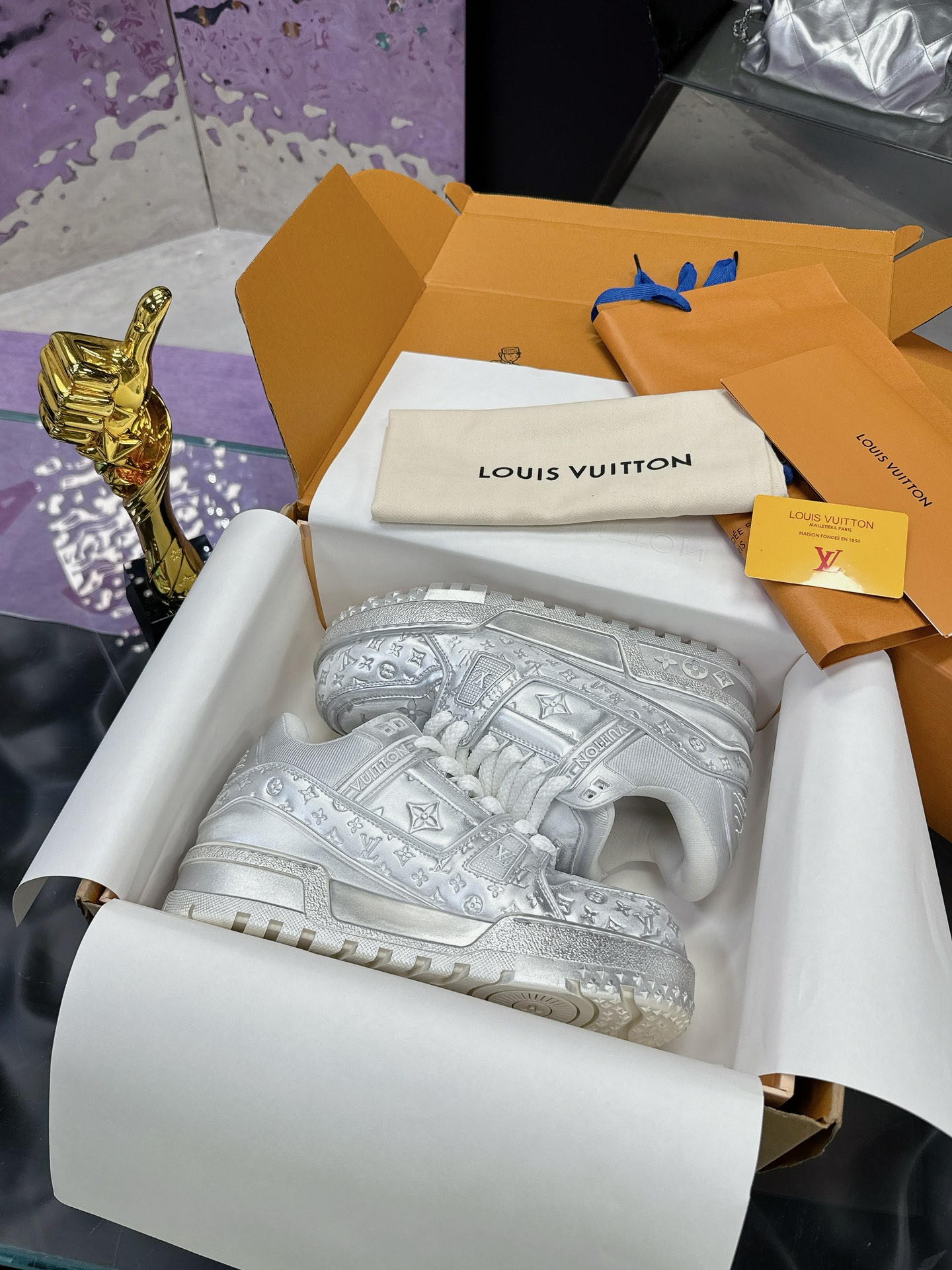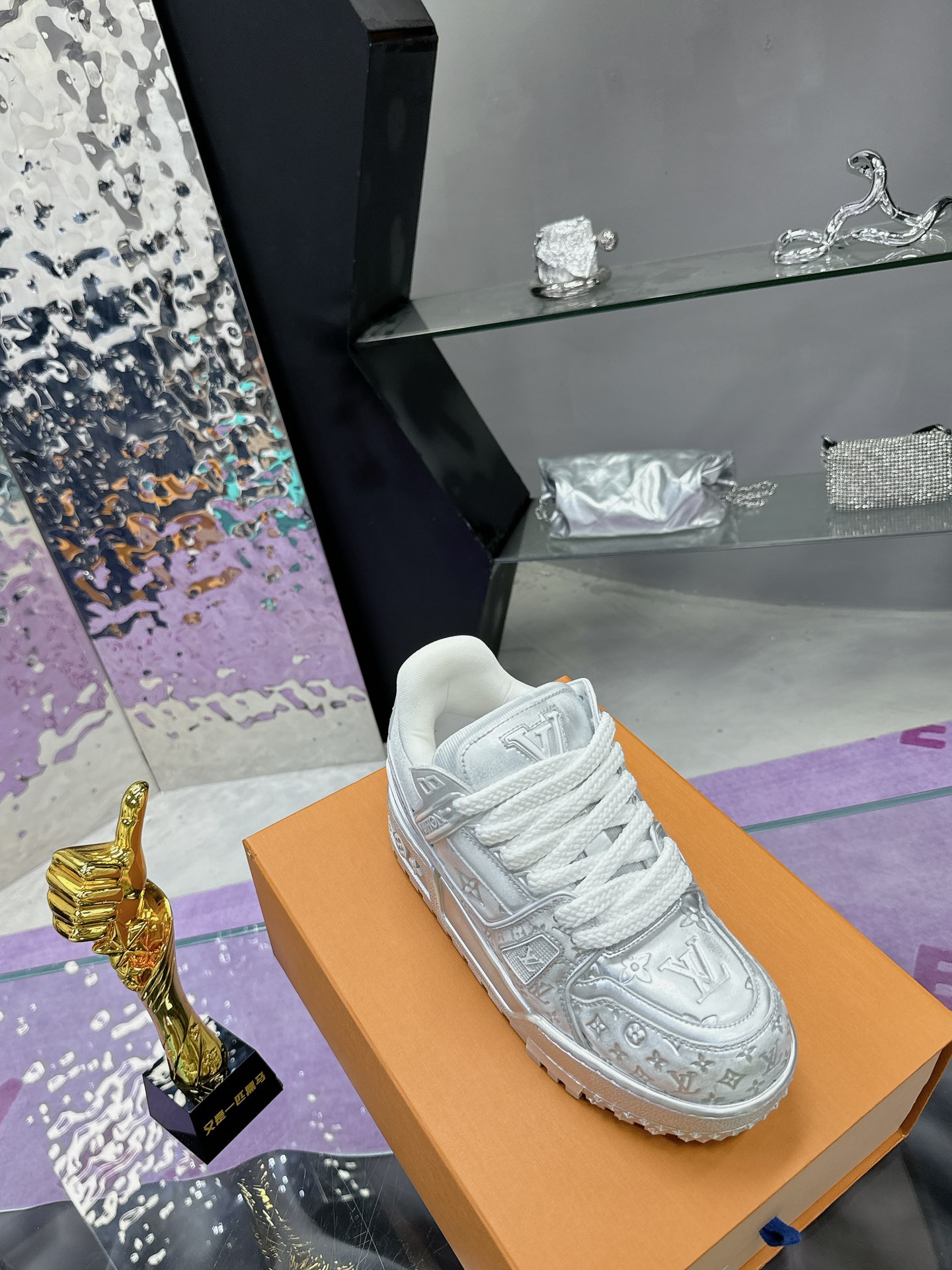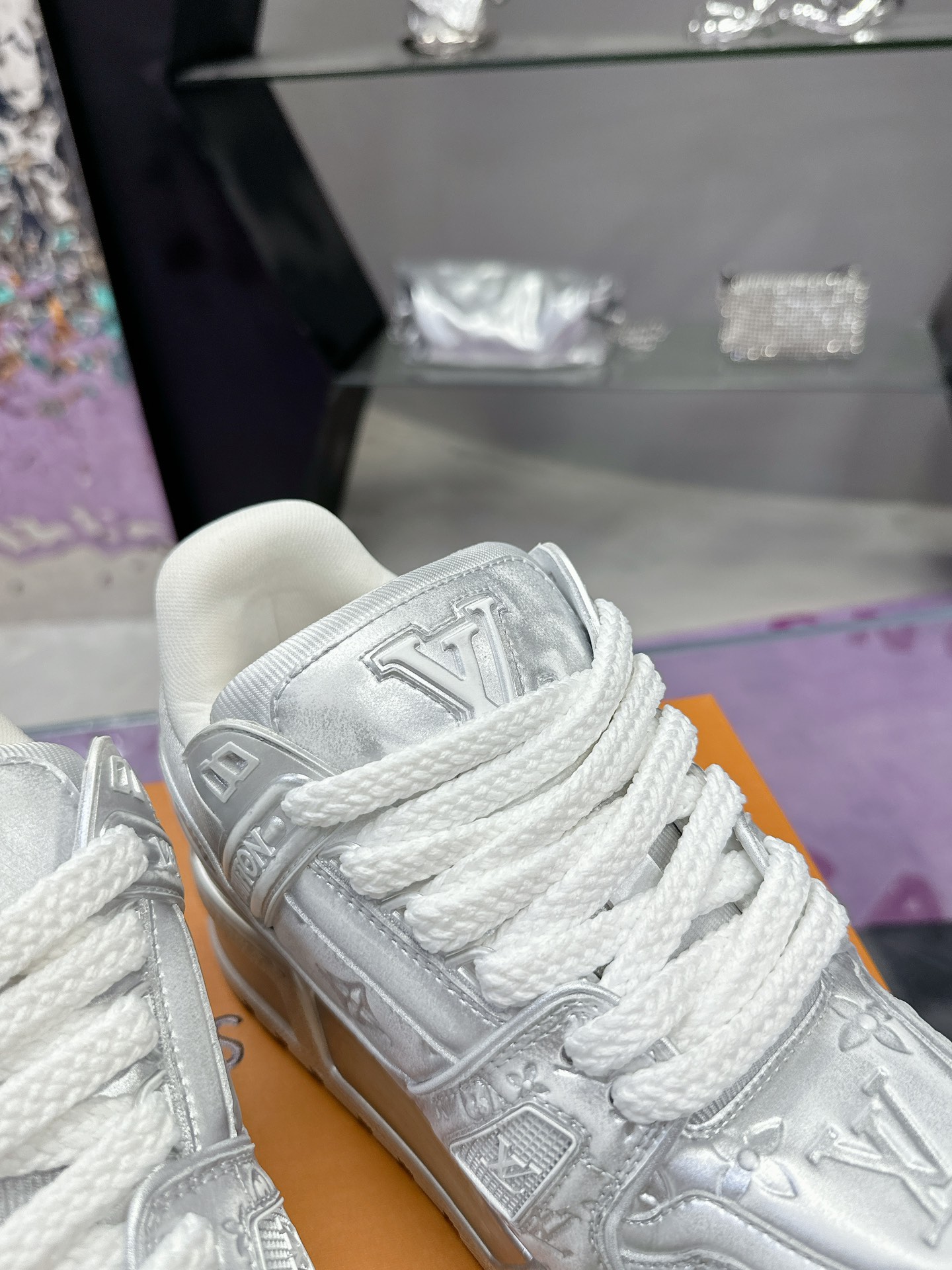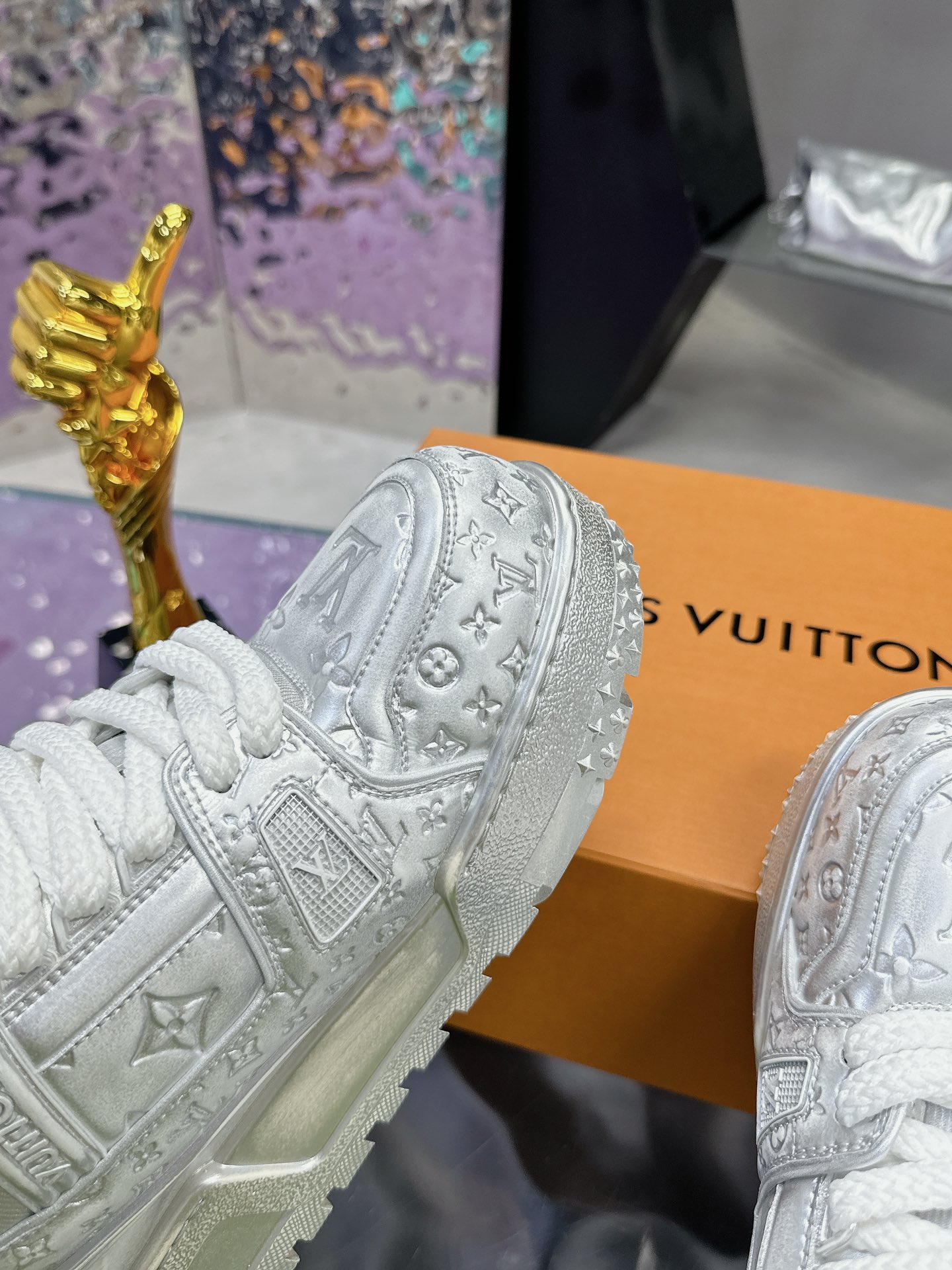 这款鞋子是AAAAA 1:1 质量 (非常棒). 使用了和原版一模一样的材料. 商标部分也保持了和路易威登/Louis Vuitton一样. 图片拍摄是实物鞋子拍摄, 您所收到的实物保证和我们图片一模一样.
