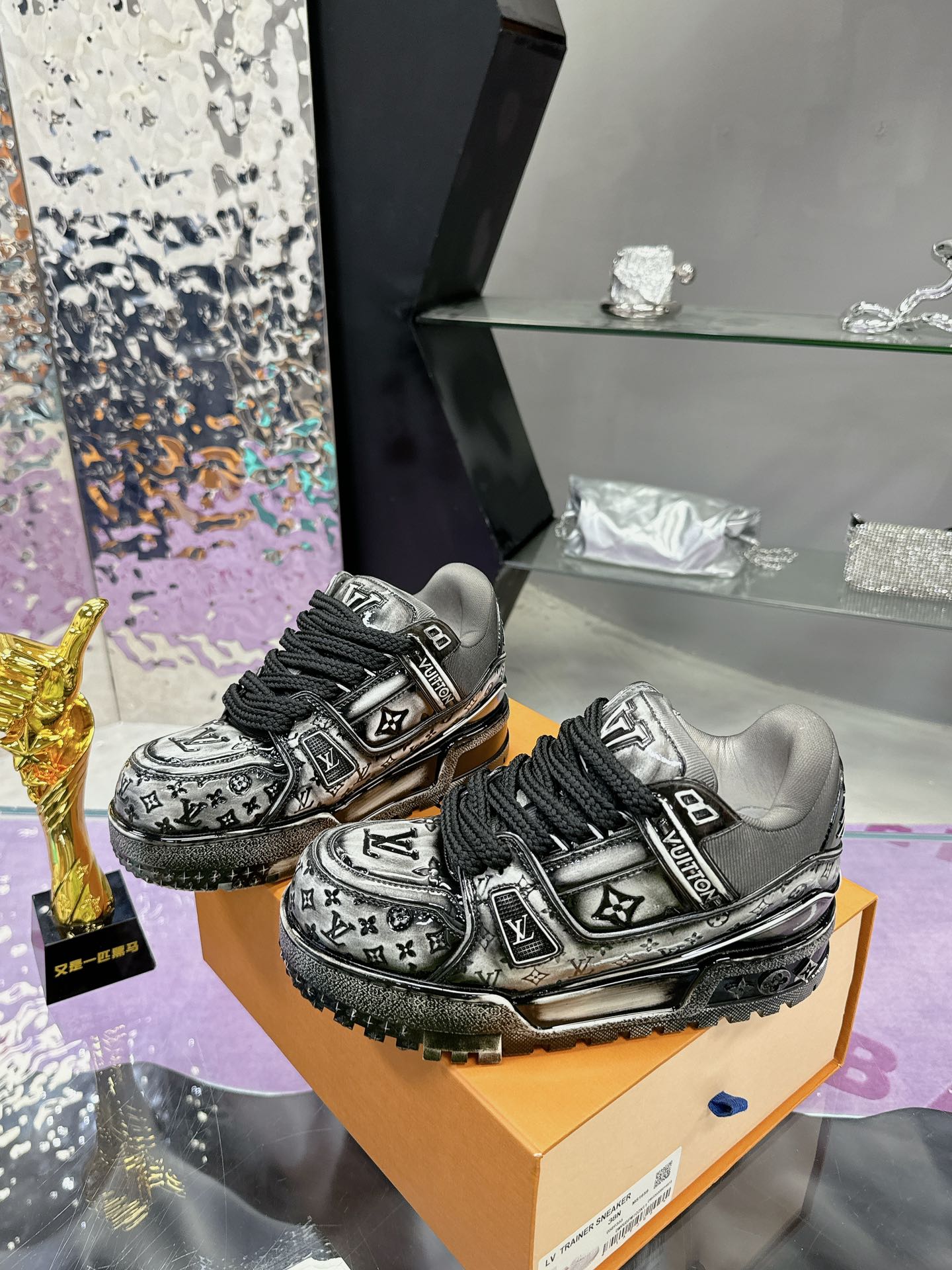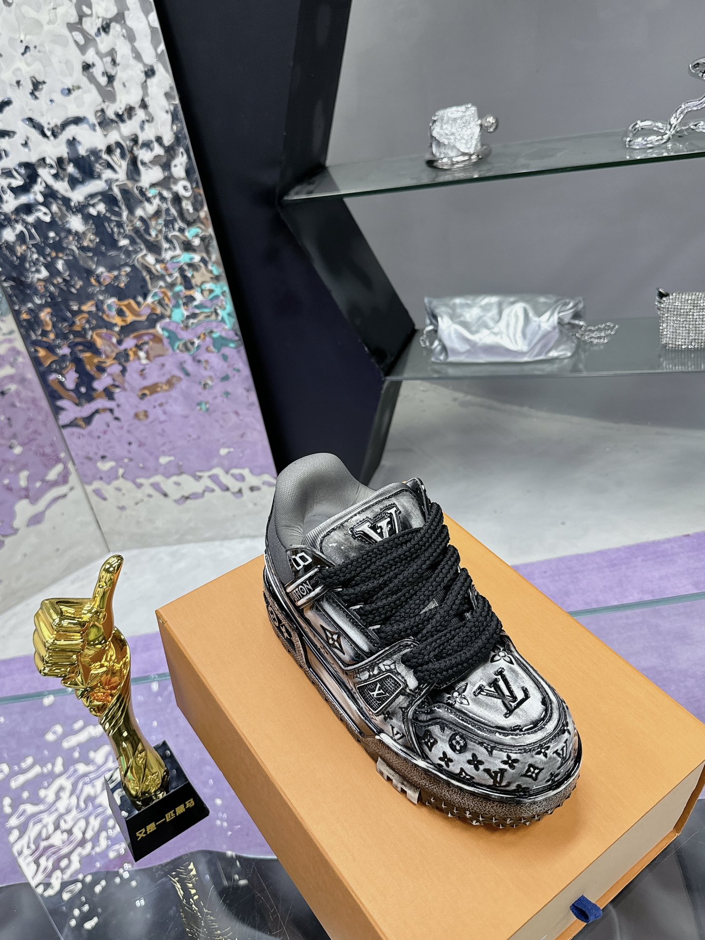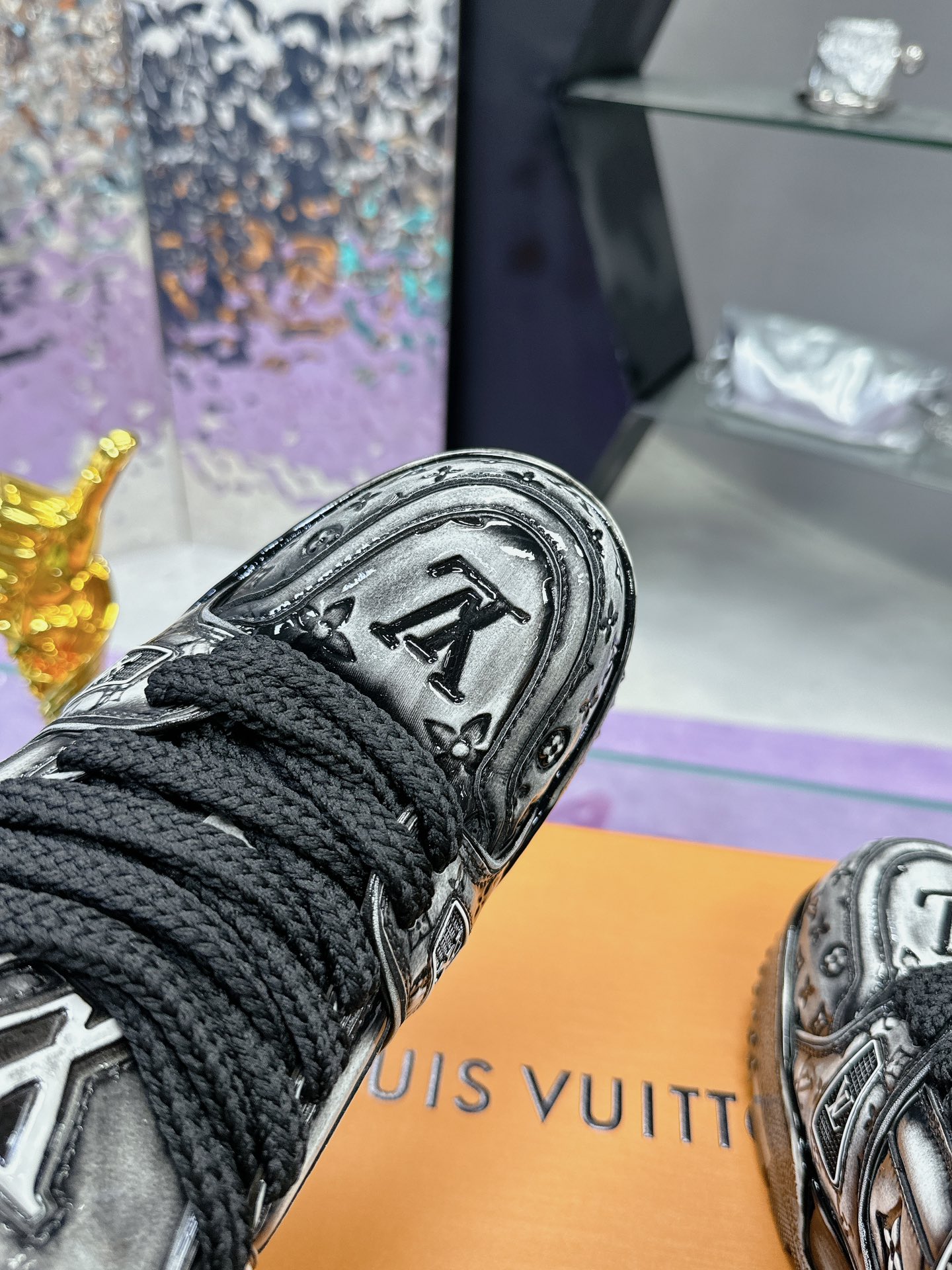 这款鞋子是AAAAA 1:1 质量 (非常棒). 使用了和原版一模一样的材料. 商标部分也保持了和路易威登/Louis Vuitton一样. 图片拍摄是实物鞋子拍摄, 您所收到的实物保证和我们图片一模一样.