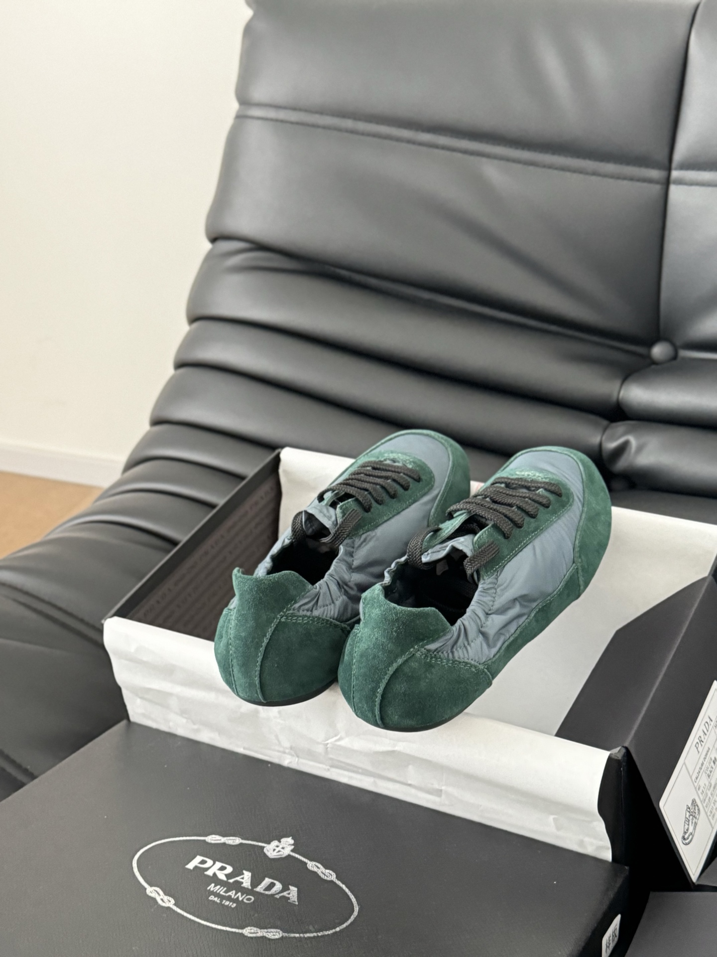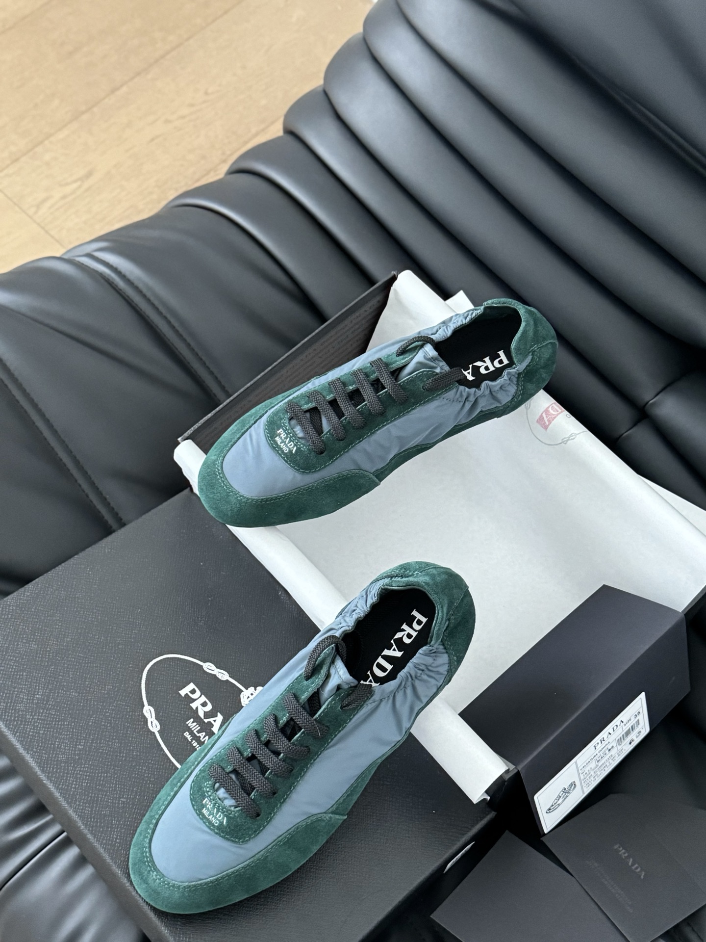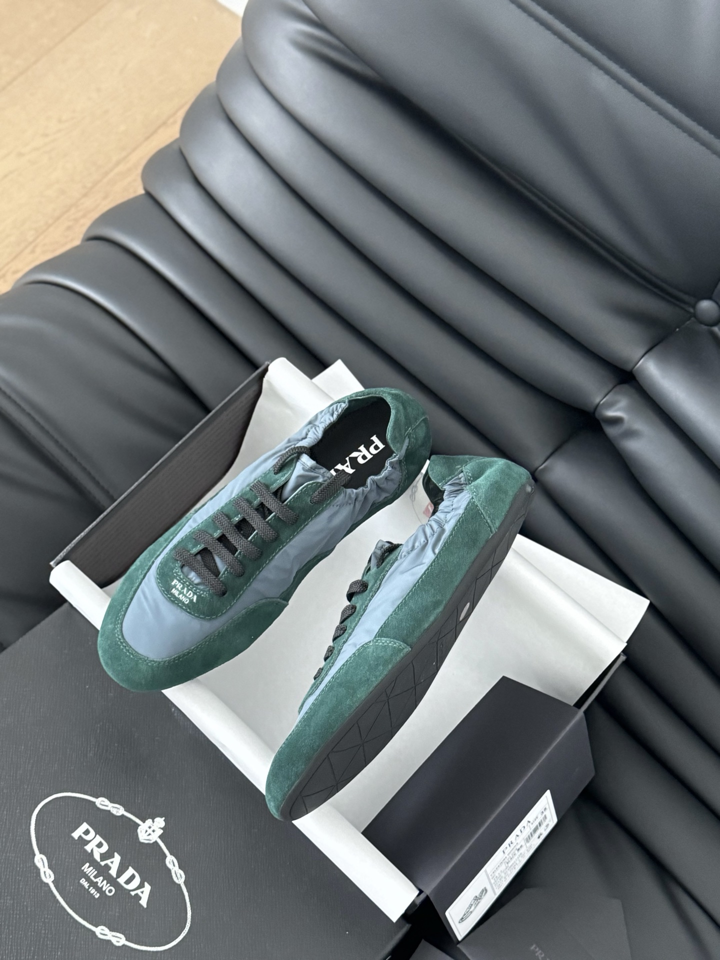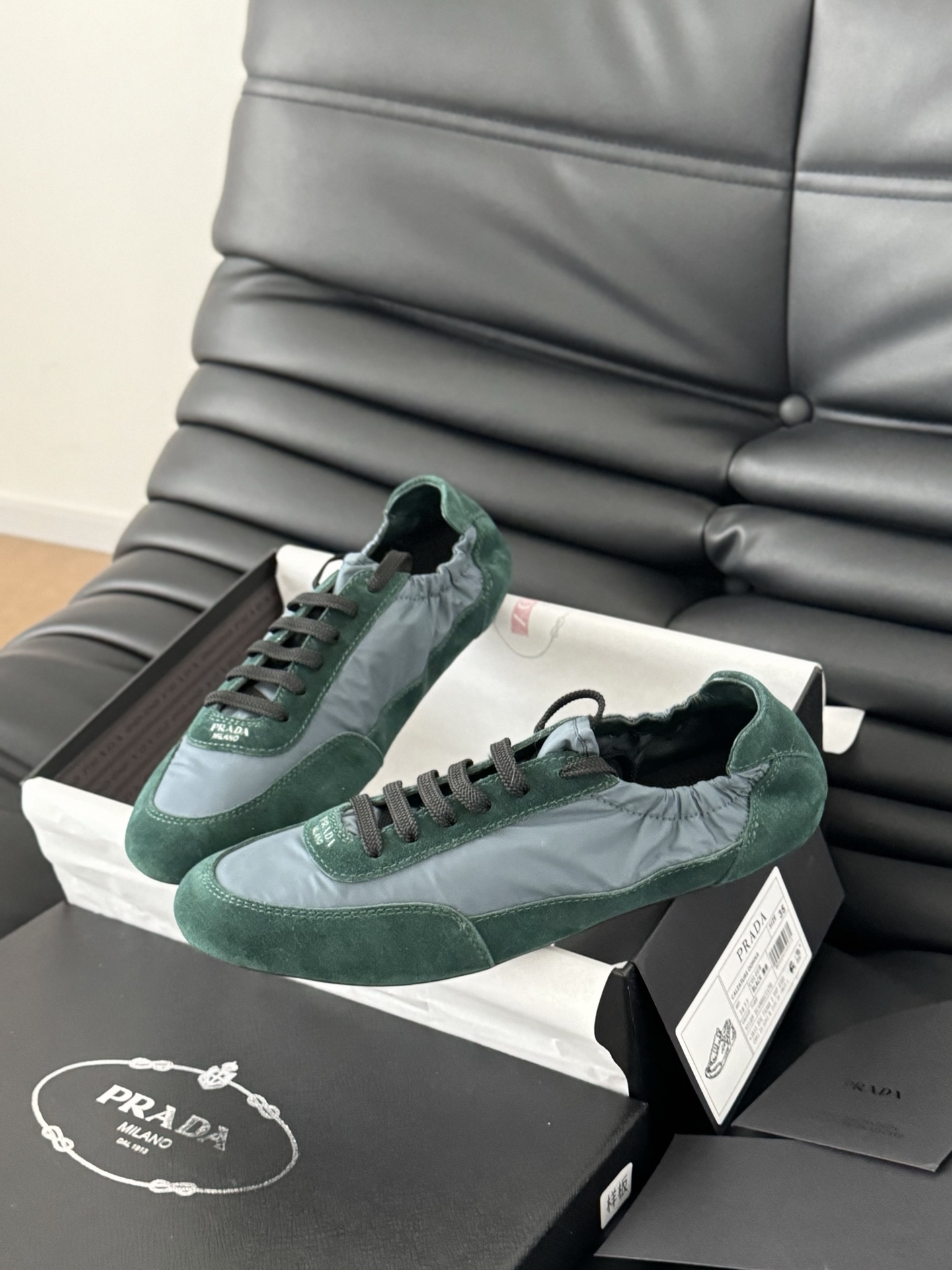 这款鞋子是AAAAA 1:1 质量 (非常棒). 使用了和原版一模一样的材料. 商标部分也保持了和普拉达/Prada一样. 图片拍摄是实物鞋子拍摄, 您所收到的实物保证和我们图片一模一样.