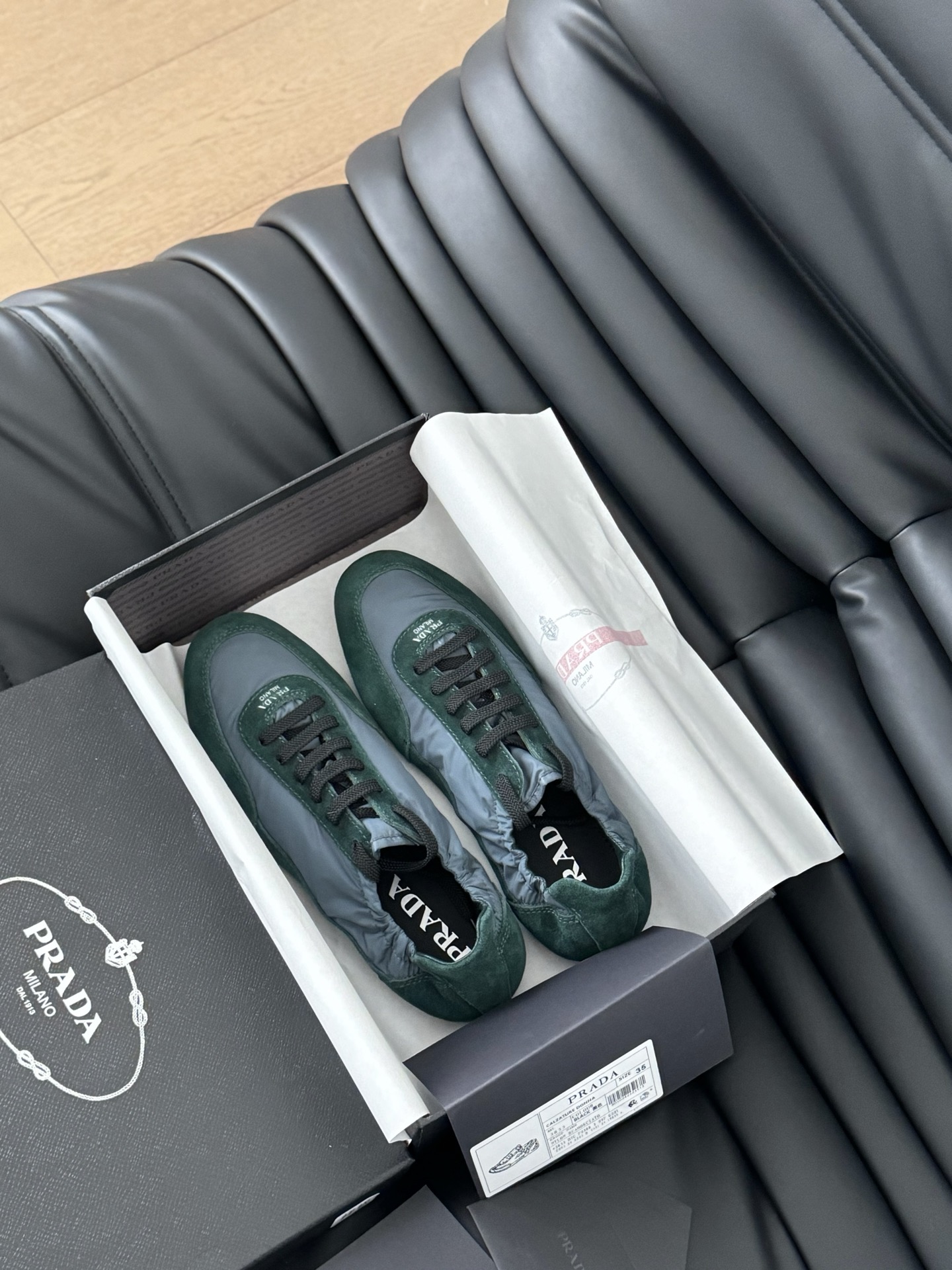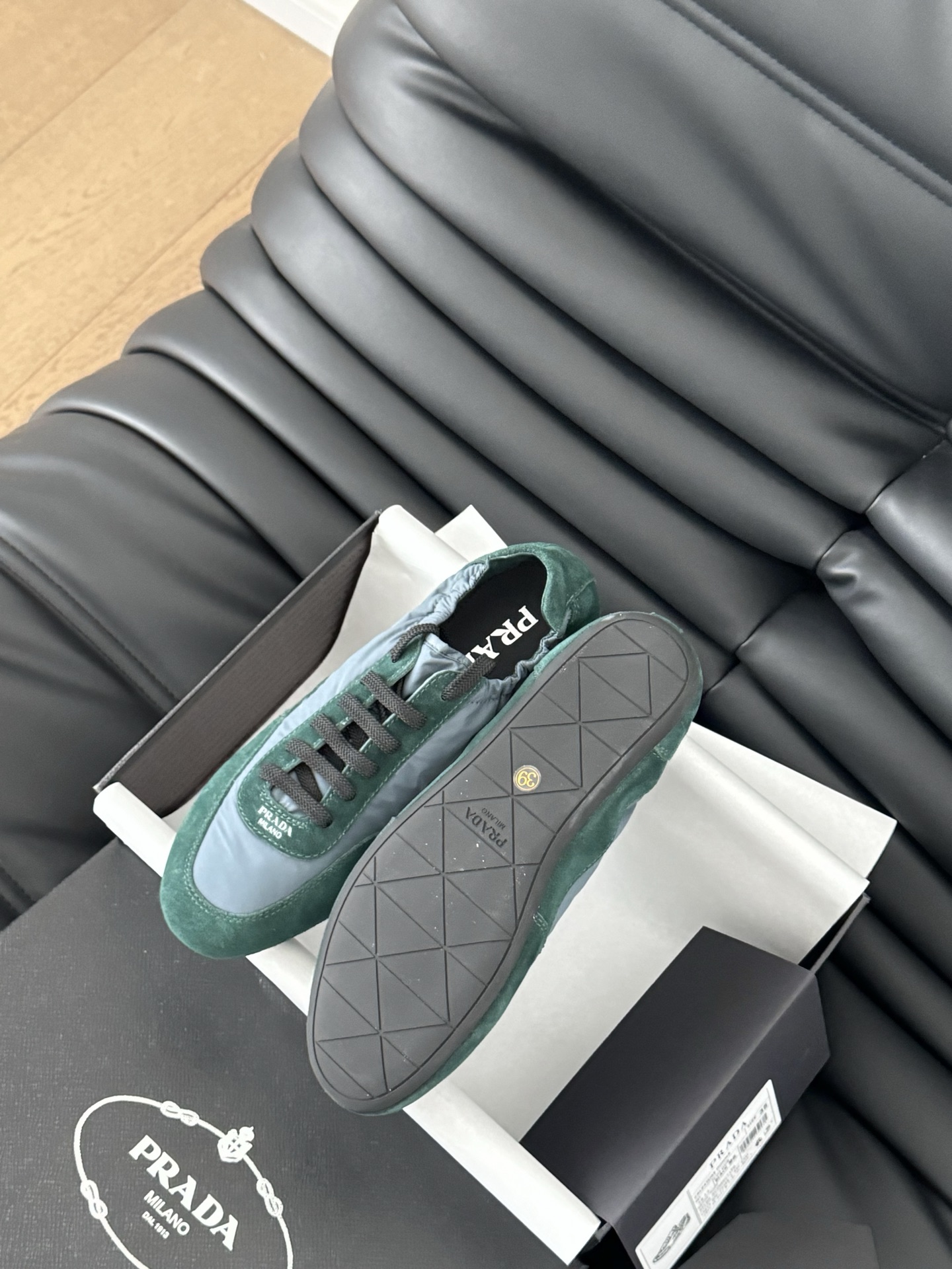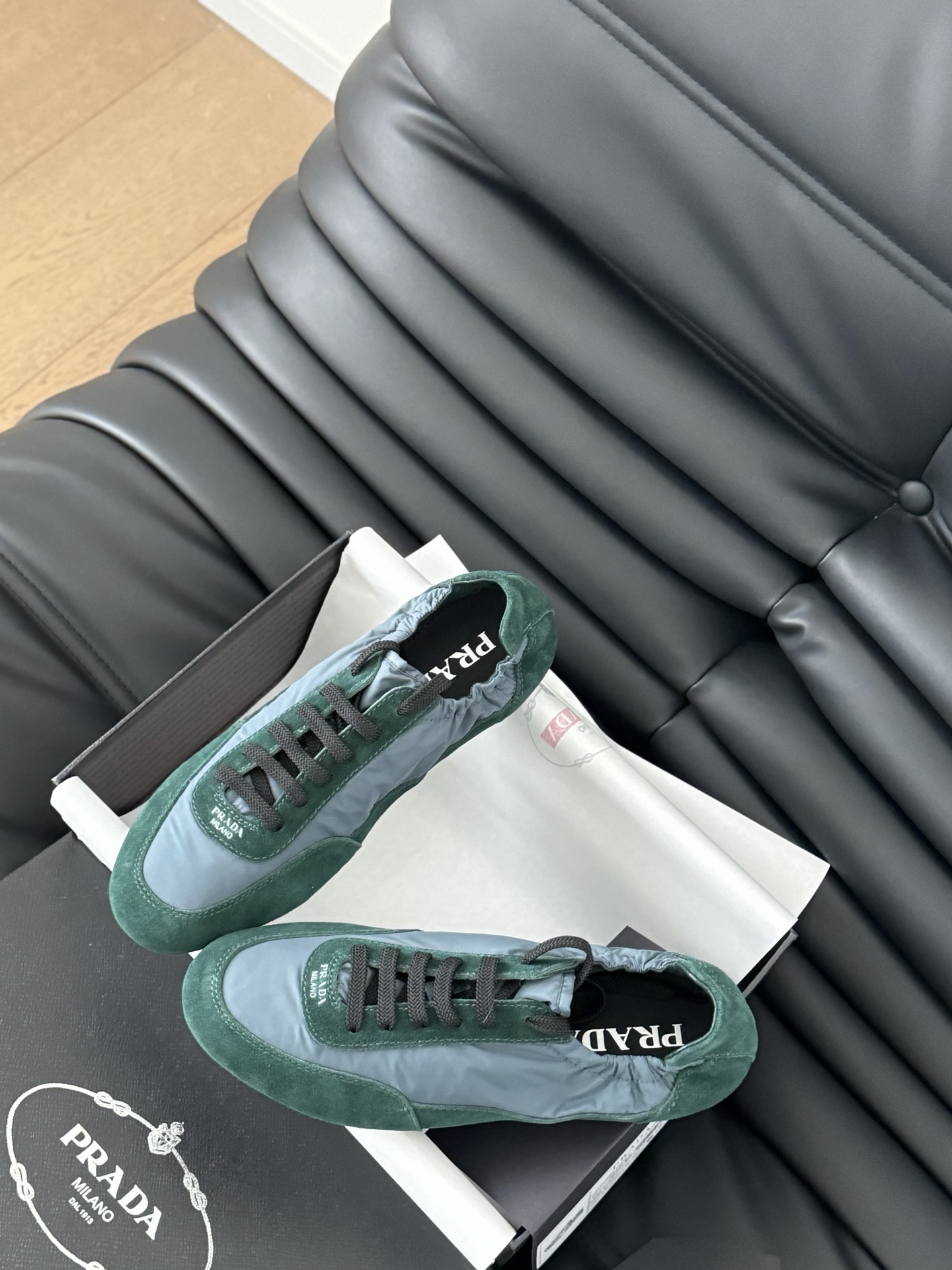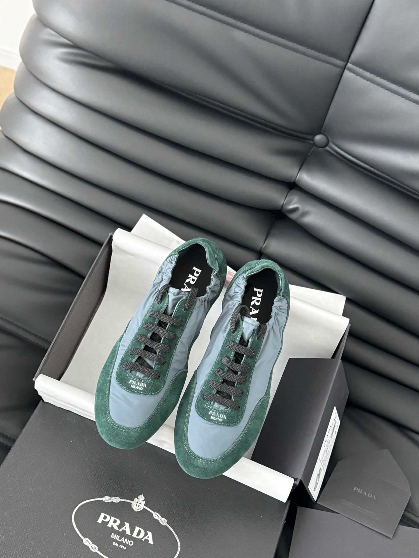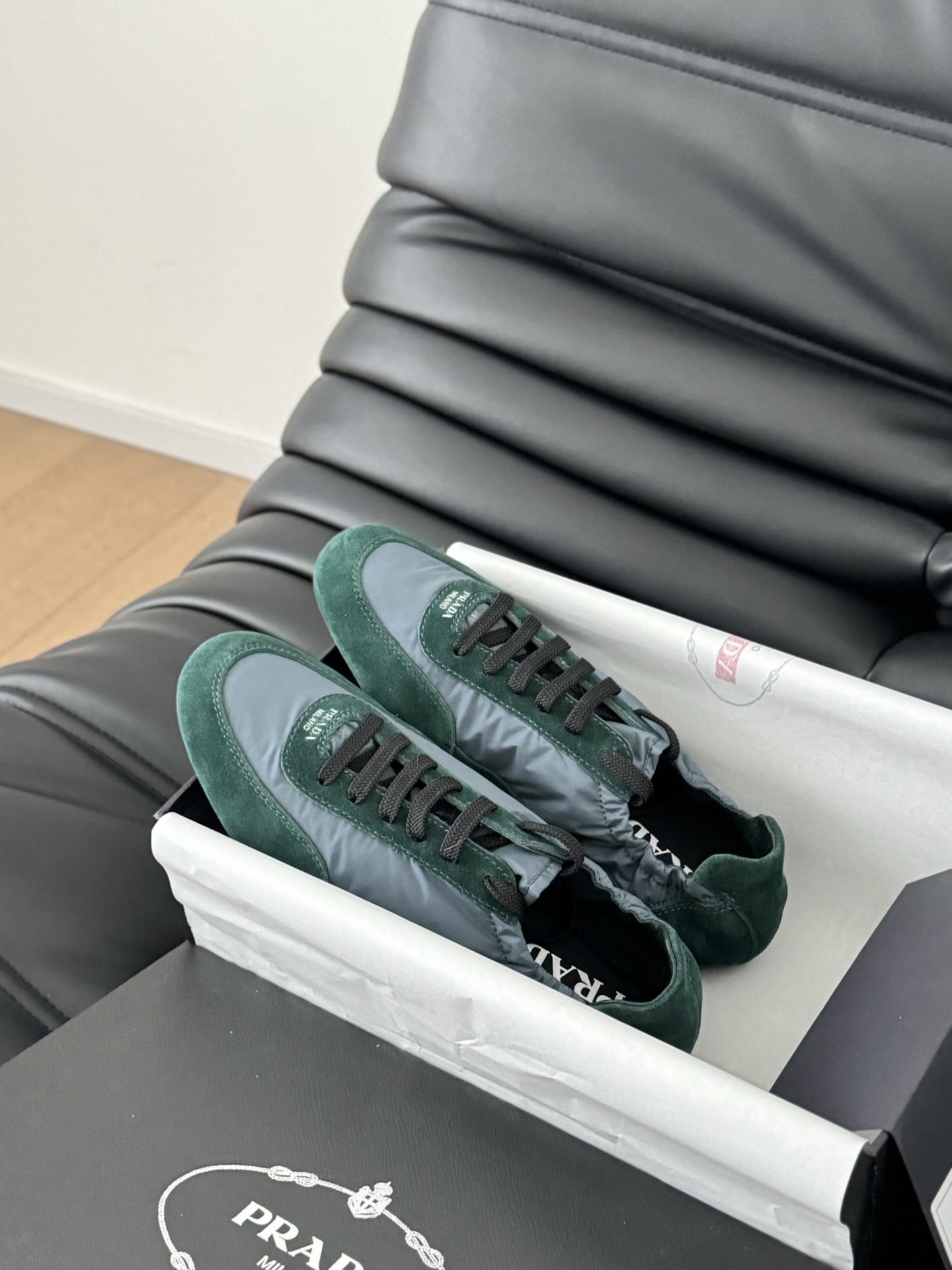 这款鞋子是AAAAA 1:1 质量 (非常棒). 使用了和原版一模一样的材料. 商标部分也保持了和普拉达/Prada一样. 图片拍摄是实物鞋子拍摄, 您所收到的实物保证和我们图片一模一样.
