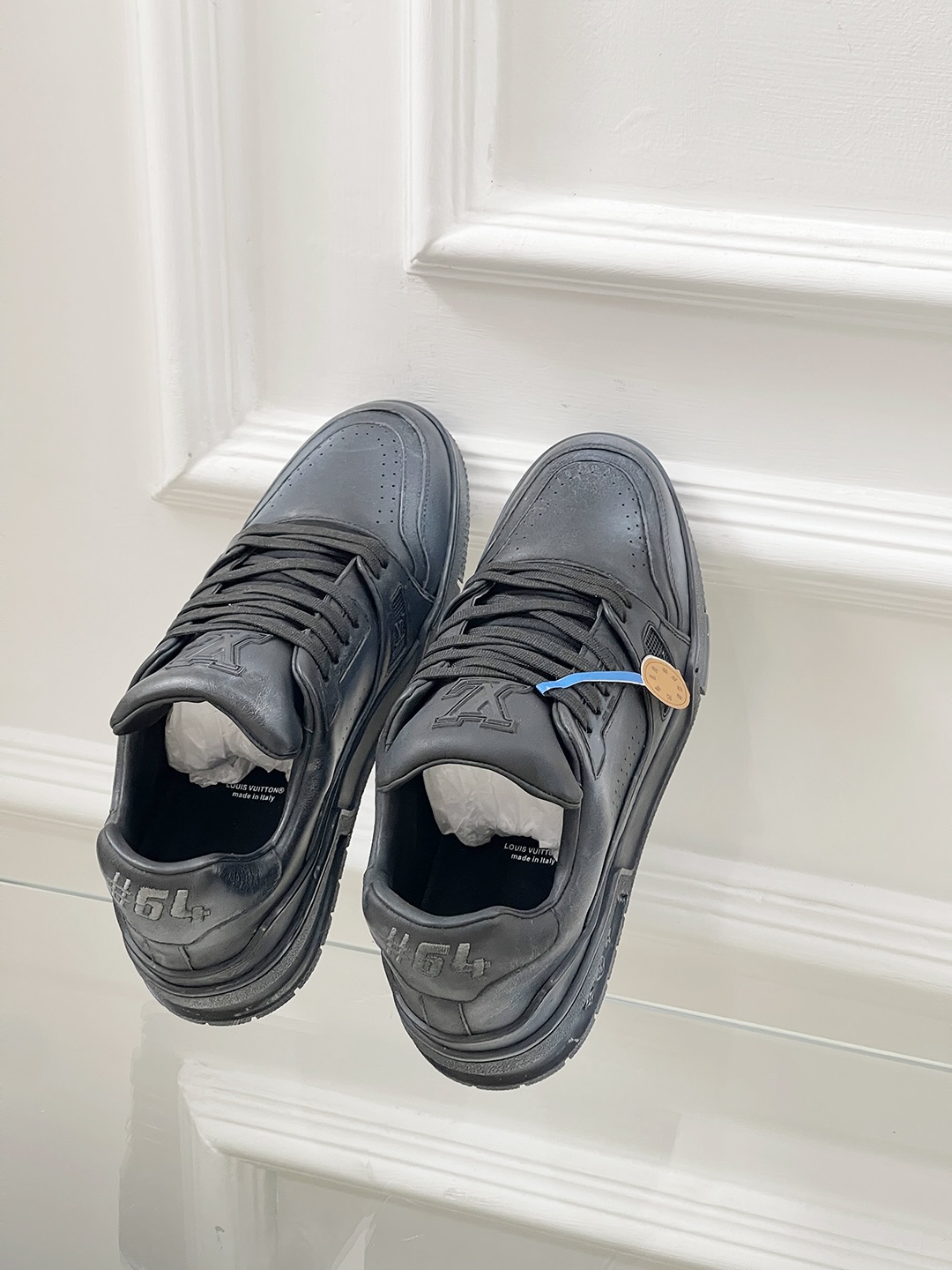 这款鞋子是AAAAA 1:1 质量 (非常棒). 使用了和原版一模一样的材料. 商标部分也保持了和路易威登/Louis Vuitton一样. 图片拍摄是实物鞋子拍摄, 您所收到的实物保证和我们图片一模一样.