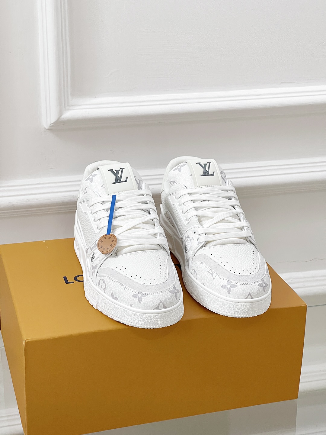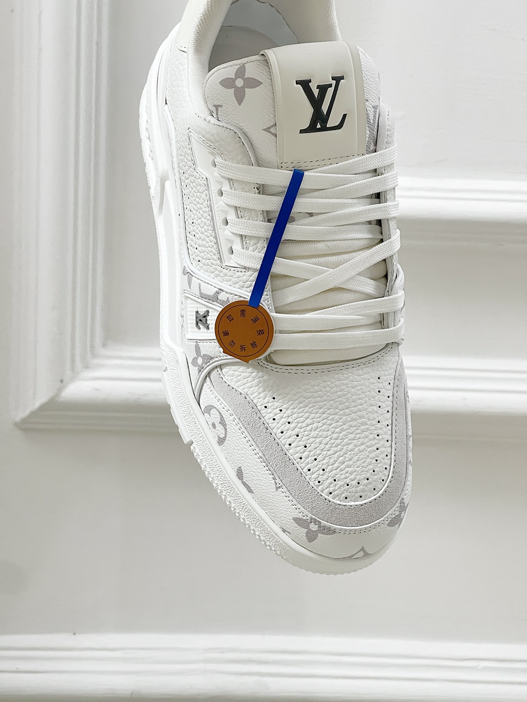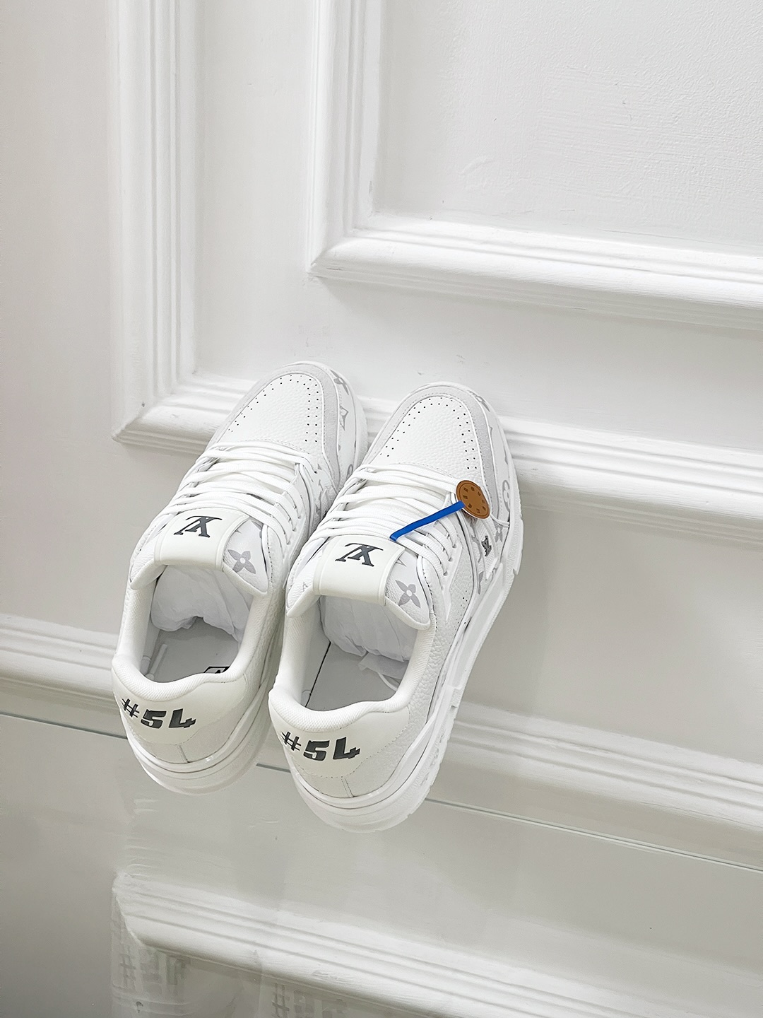 这款鞋子是AAAAA 1:1 质量 (非常棒). 使用了和原版一模一样的材料. 商标部分也保持了和路易威登/Louis Vuitton一样. 图片拍摄是实物鞋子拍摄, 您所收到的实物保证和我们图片一模一样.