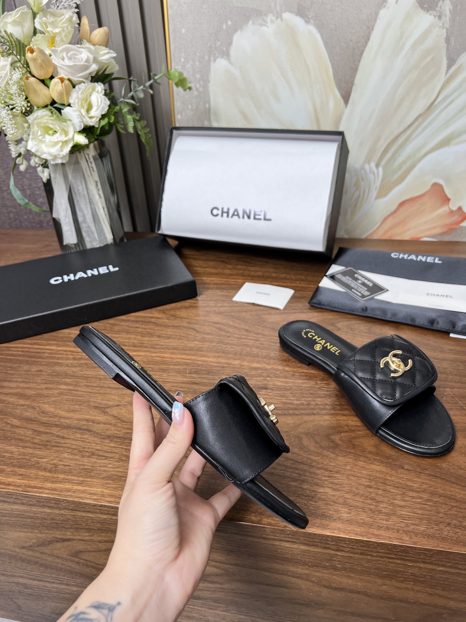这款鞋子是AAAAA 1:1 质量 (非常棒). 使用了和原版一模一样的材料. 商标部分也保持了和香奈儿/Chanel一样. 图片拍摄是实物鞋子拍摄, 您所收到的实物保证和我们图片一模一样.
