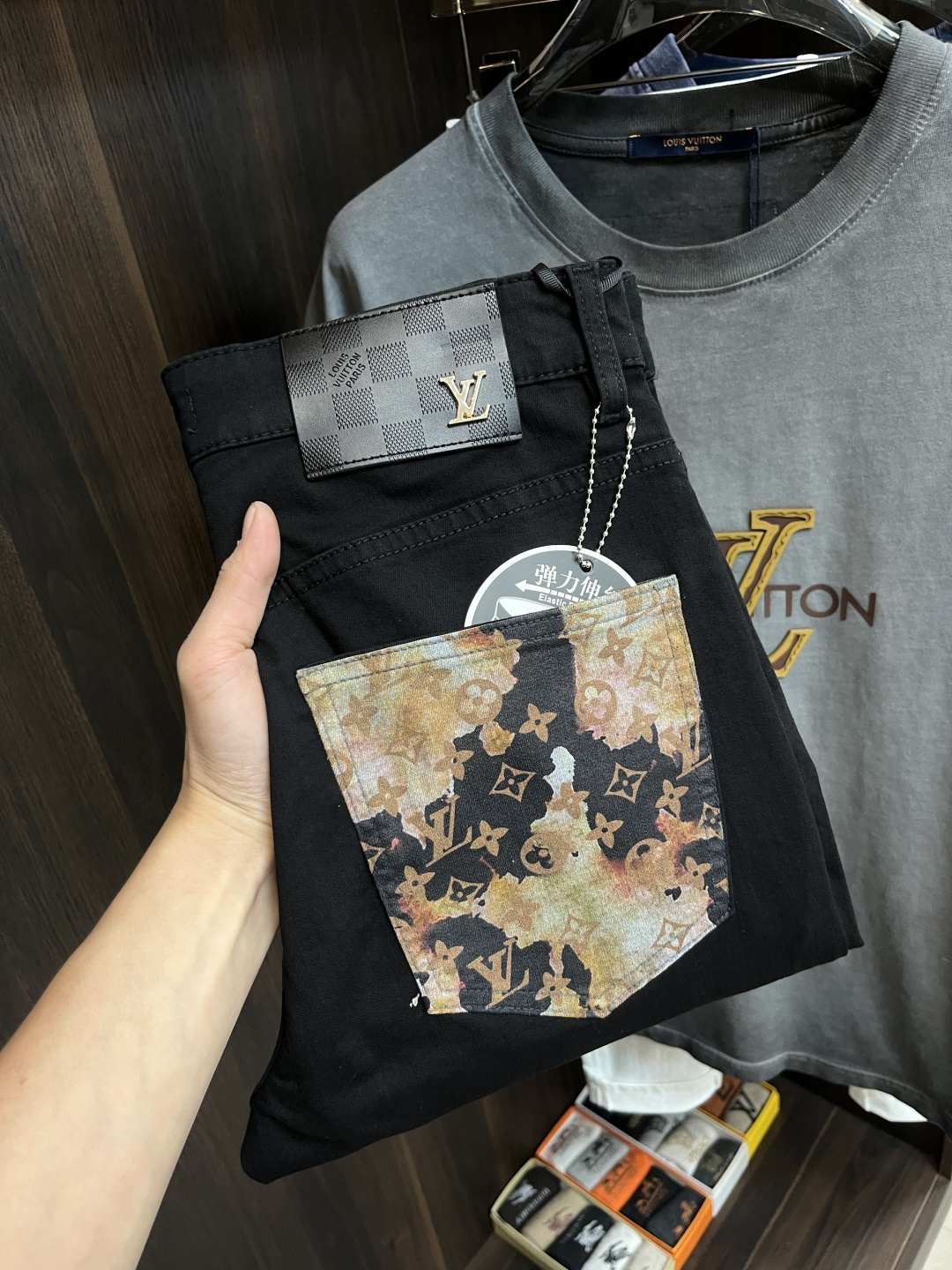 这款衣服是AAAAA 1:1 质量 (非常棒). 使用了和原版一模一样的材料. 商标部分也保持了和路易威登/Louis Vuitton一样. 图片拍摄是实物衣服拍摄, 您所收到的实物保证和我们图片一模一样.