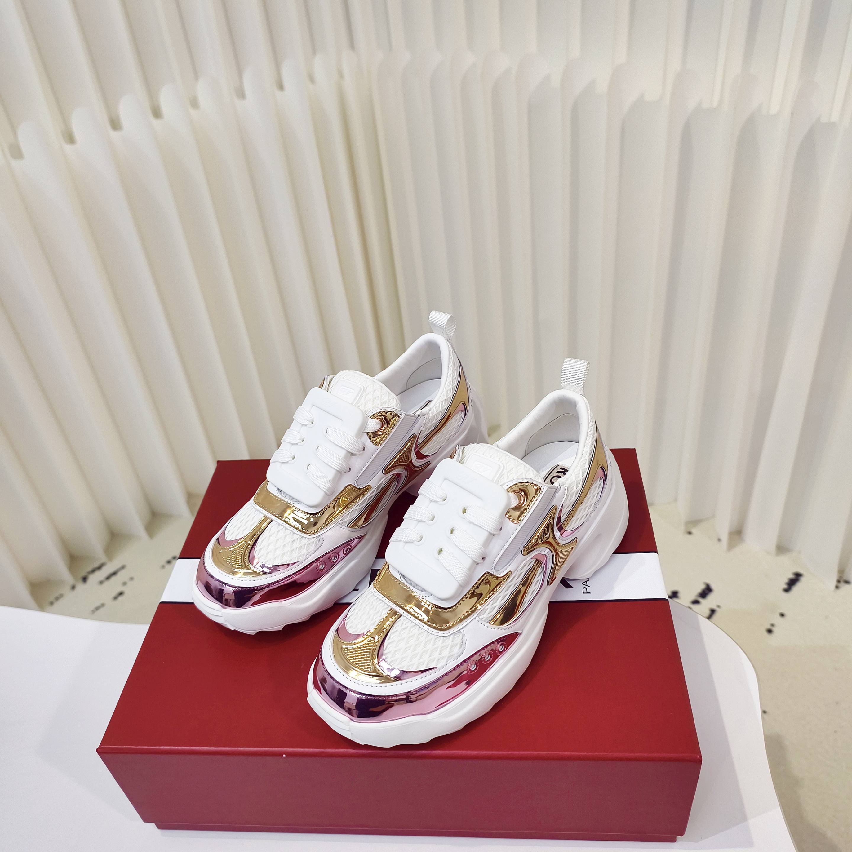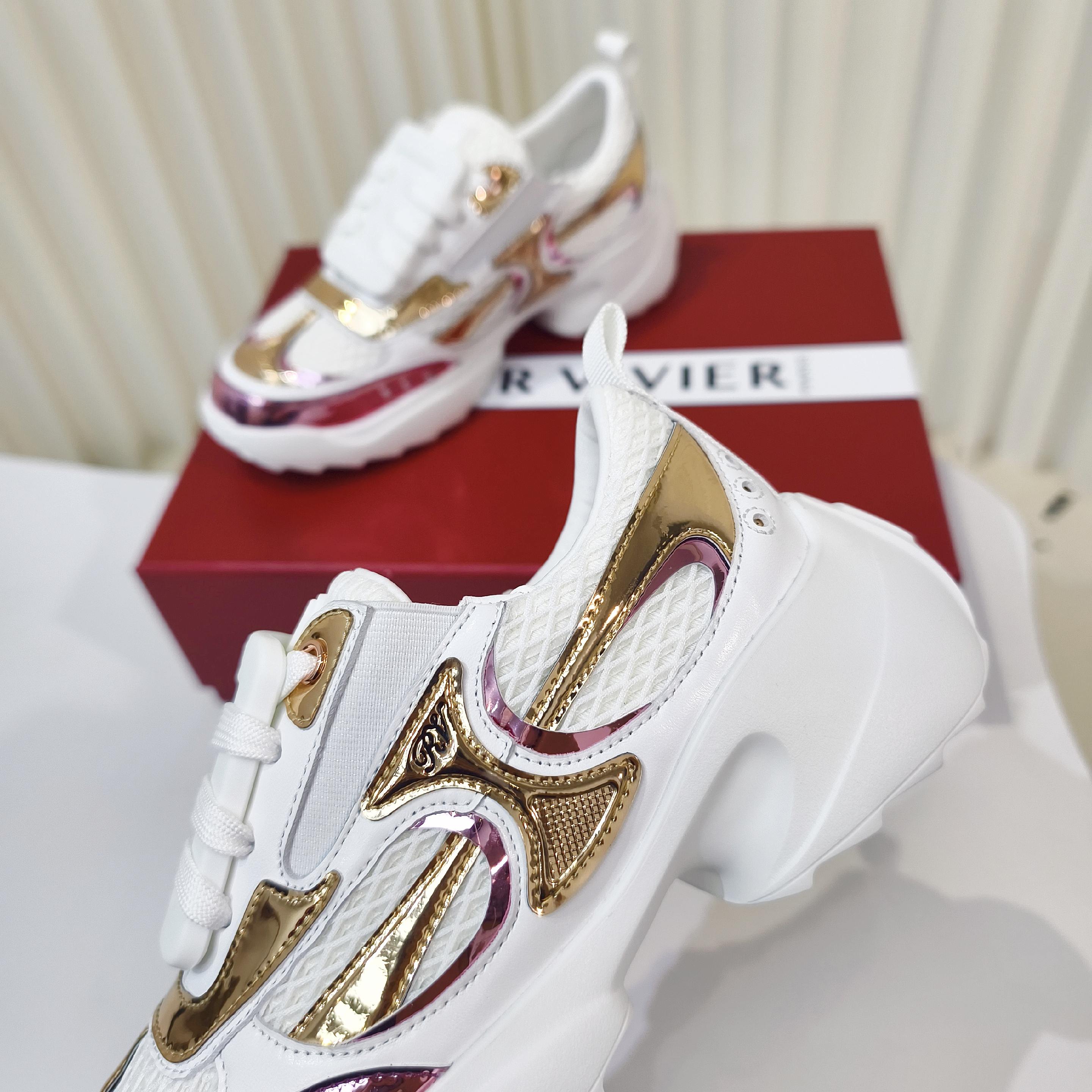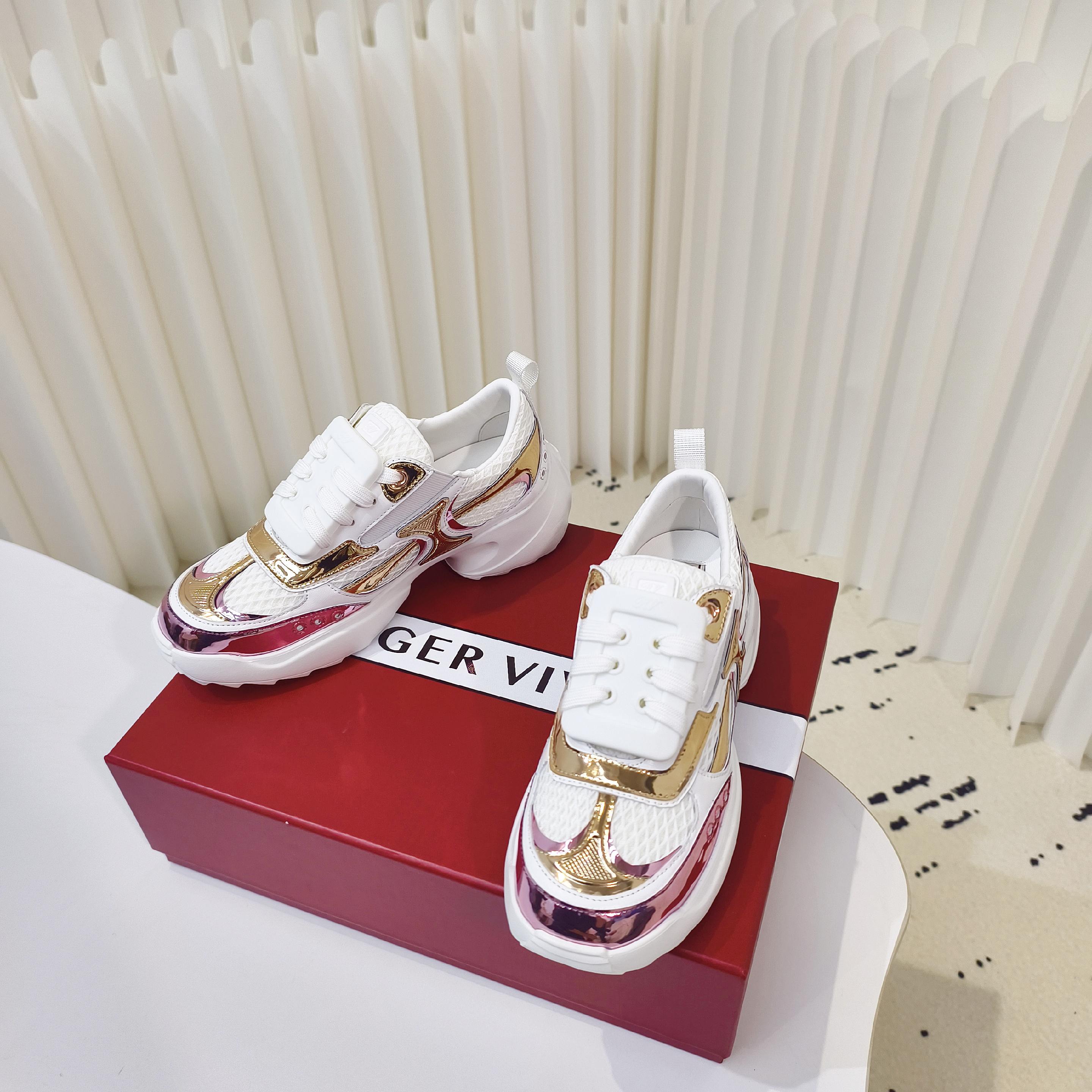 这款鞋子是AAAAA 1:1 质量 (非常棒). 使用了和原版一模一样的材料. 商标部分也保持了和罗杰维维耶/Roger Vivier一样. 图片拍摄是实物鞋子拍摄, 您所收到的实物保证和我们图片一模一样.