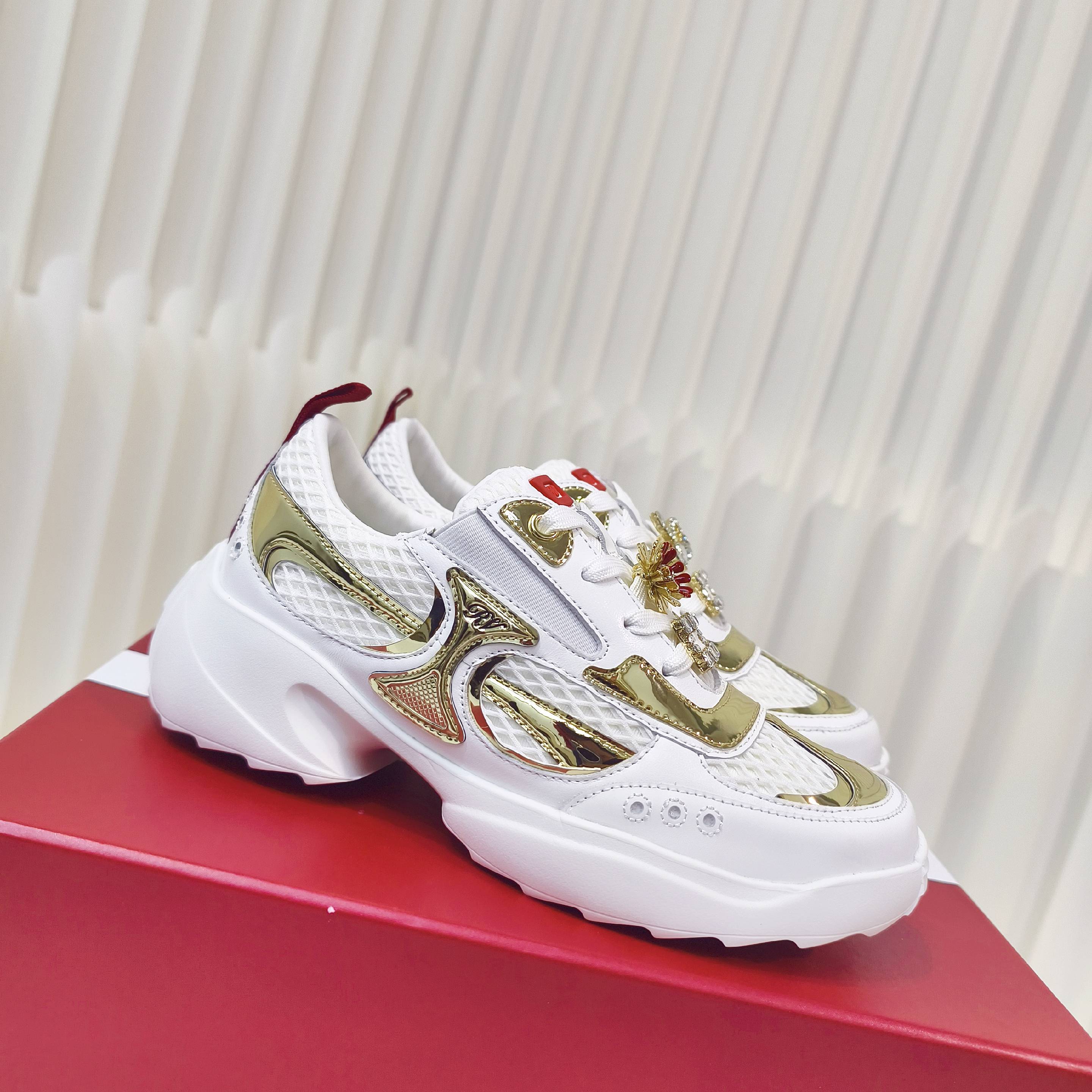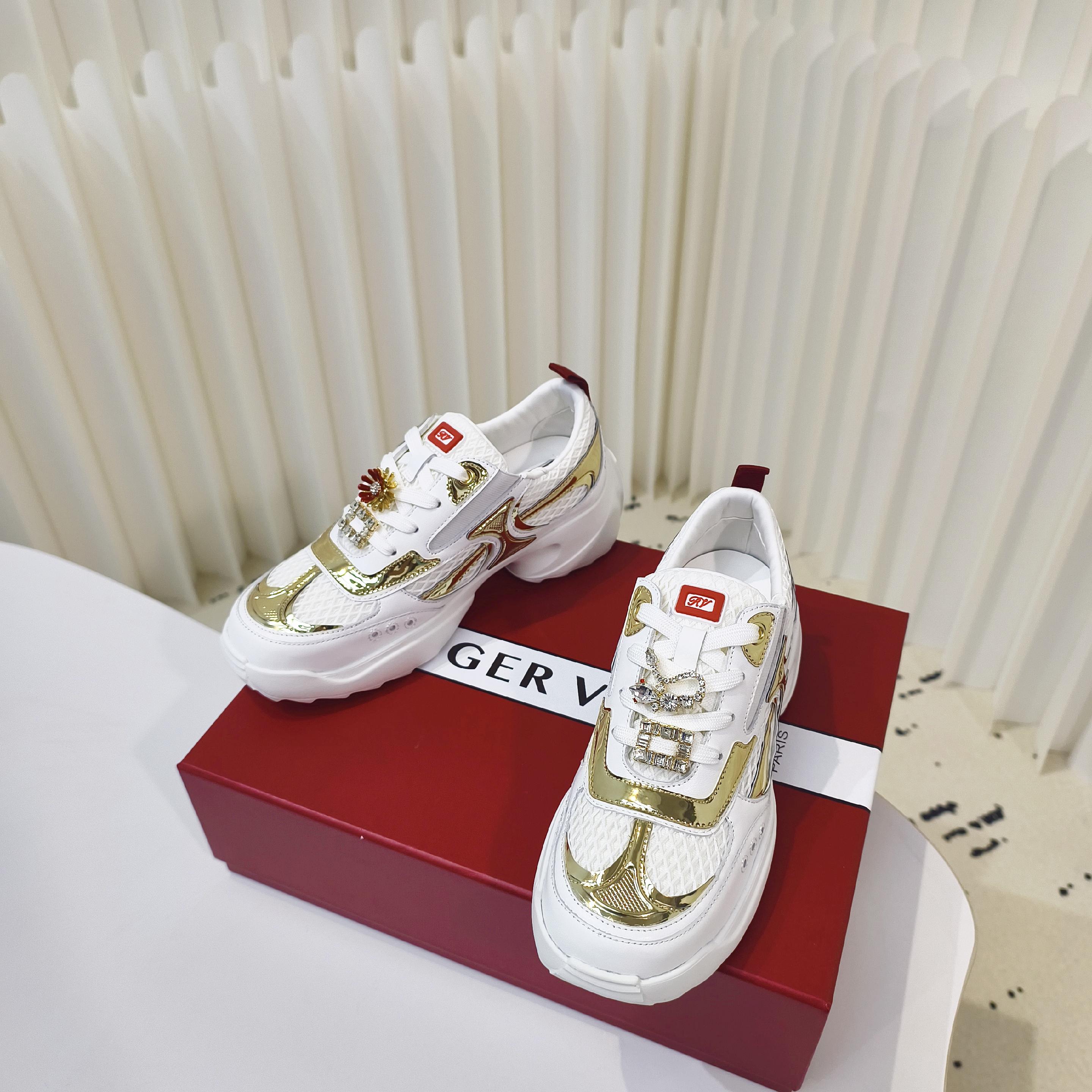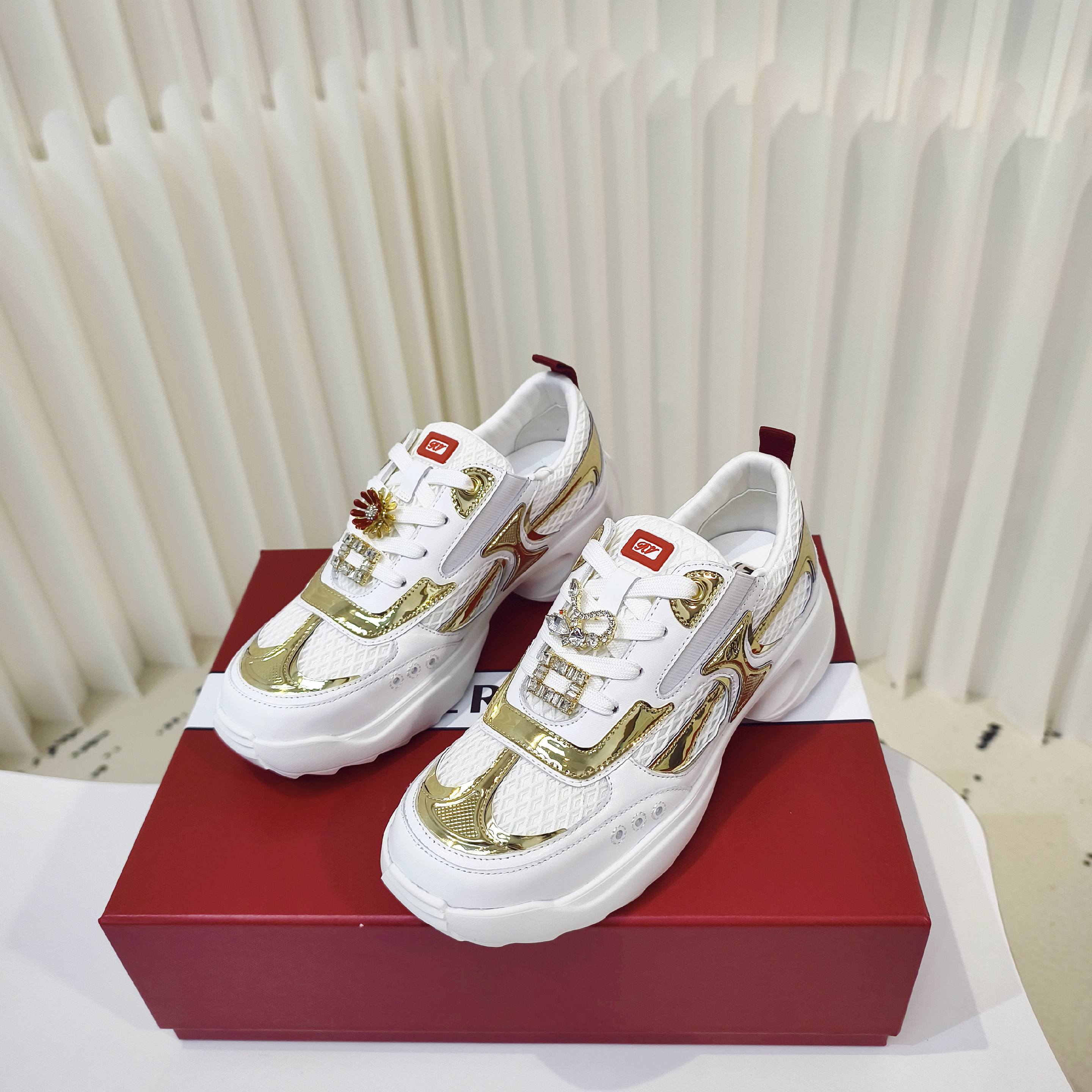 这款鞋子是AAAAA 1:1 质量 (非常棒). 使用了和原版一模一样的材料. 商标部分也保持了和罗杰维维耶/Roger Vivier一样. 图片拍摄是实物鞋子拍摄, 您所收到的实物保证和我们图片一模一样.