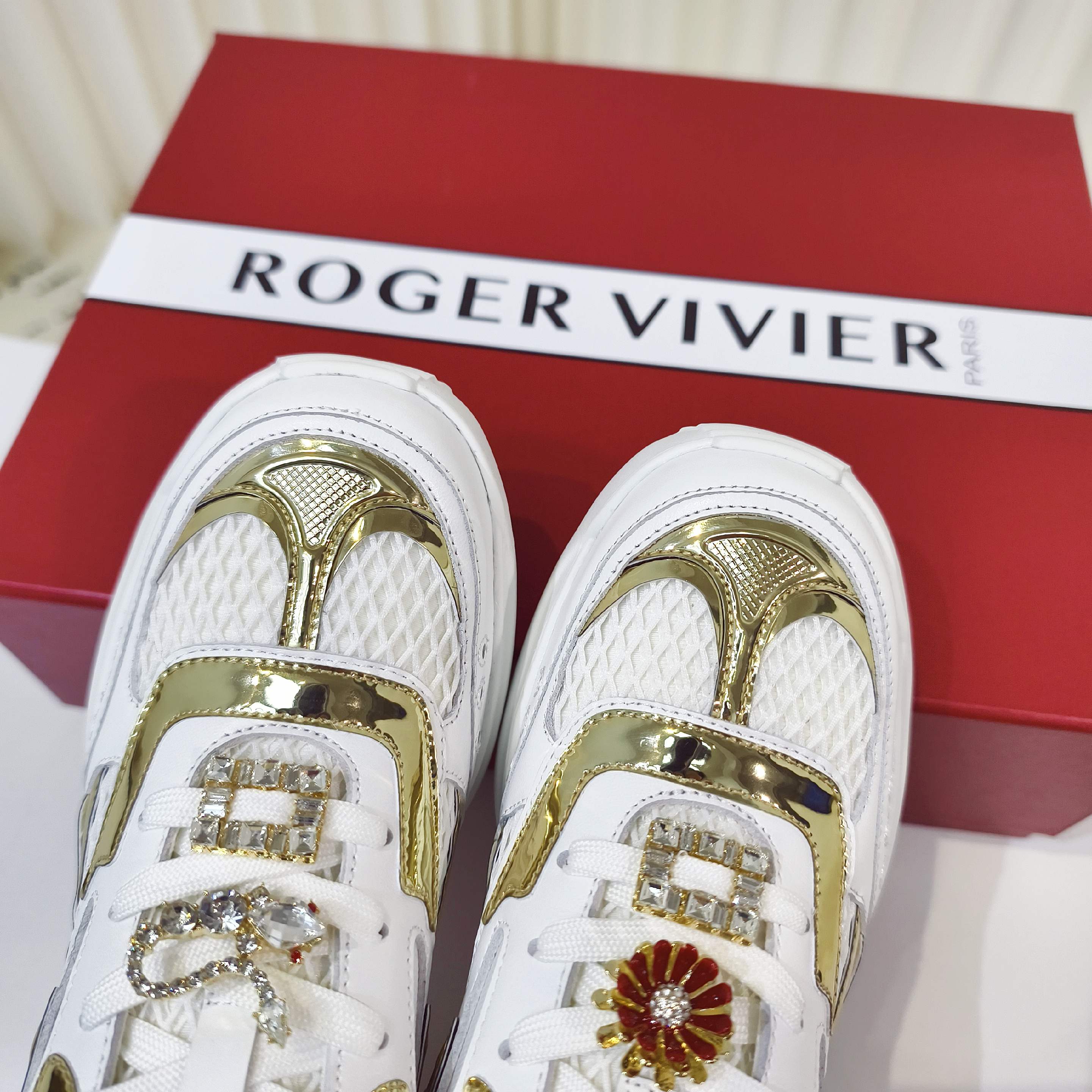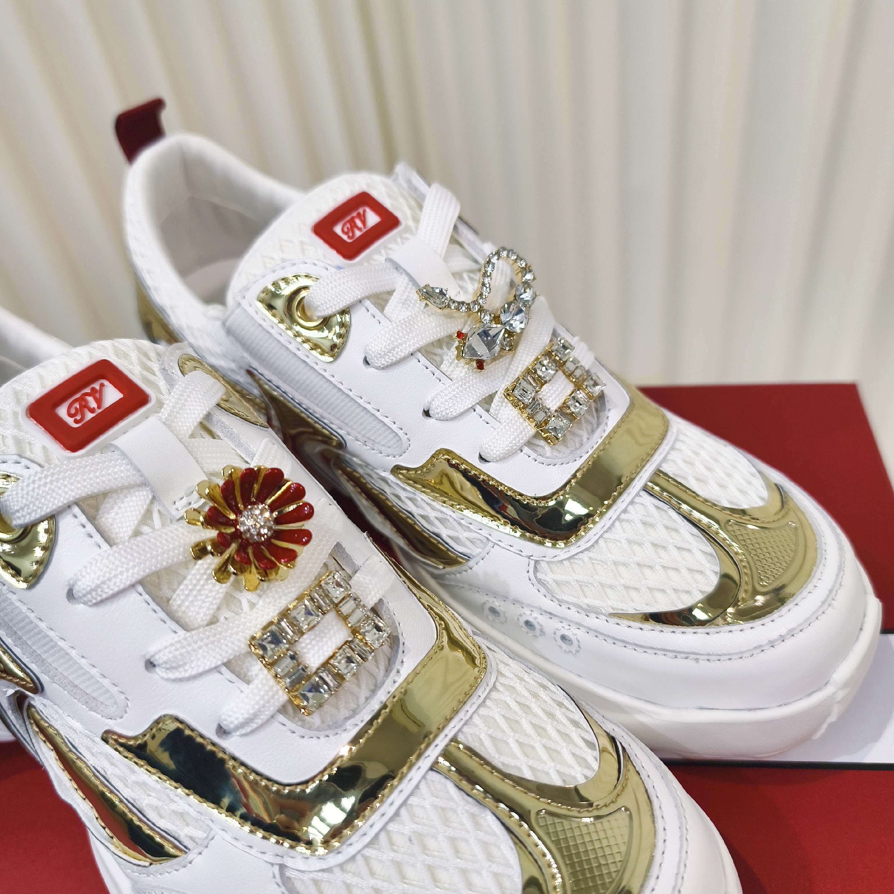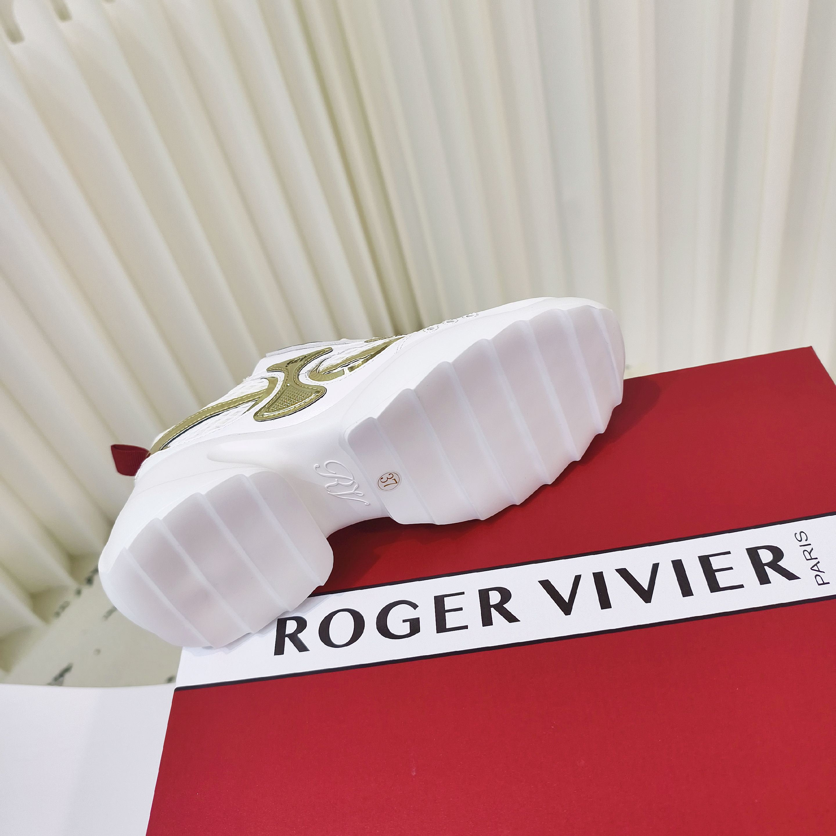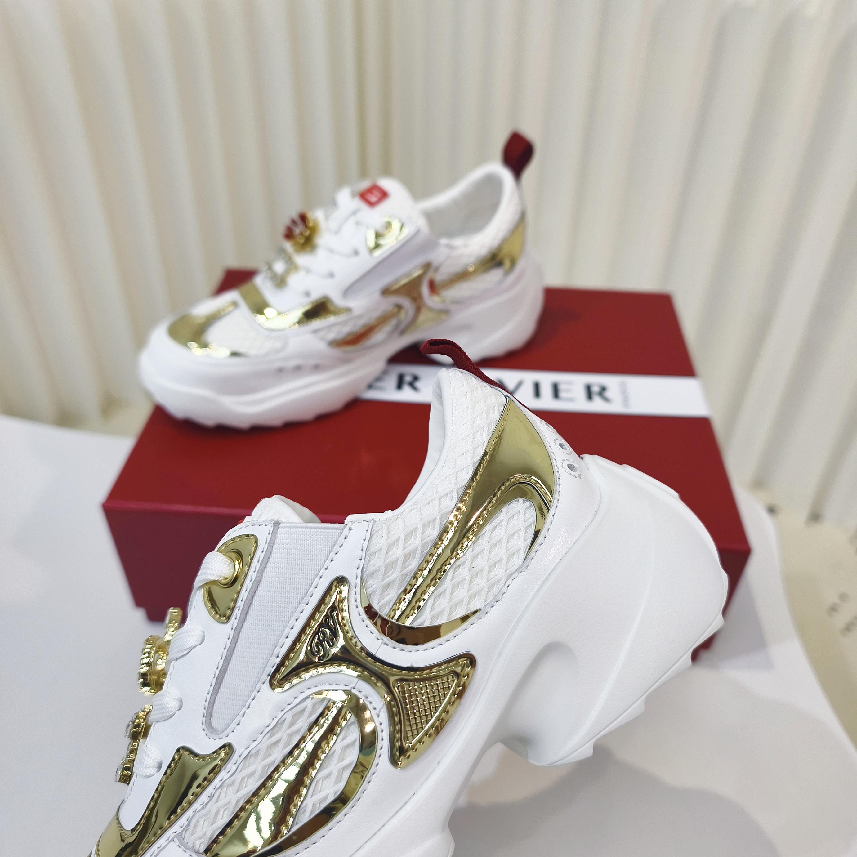 这款鞋子是AAAAA 1:1 质量 (非常棒). 使用了和原版一模一样的材料. 商标部分也保持了和罗杰维维耶/Roger Vivier一样. 图片拍摄是实物鞋子拍摄, 您所收到的实物保证和我们图片一模一样.