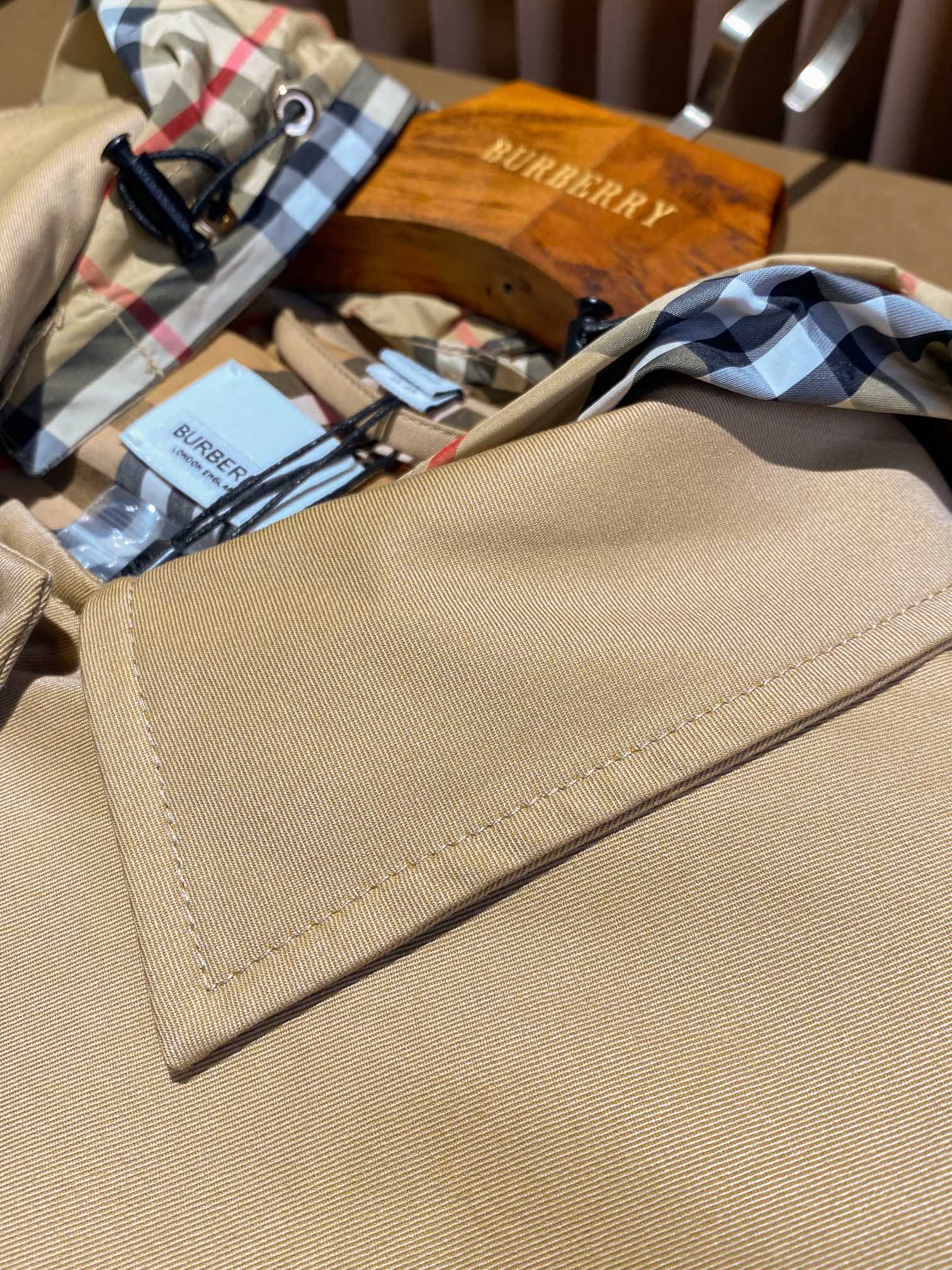 这款衣服是AAAAA 1:1 质量 (非常棒). 使用了和原版一模一样的材料. 商标部分也保持了和巴宝莉/Burberry一样. 图片拍摄是实物衣服拍摄, 您所收到的实物保证和我们图片一模一样.
