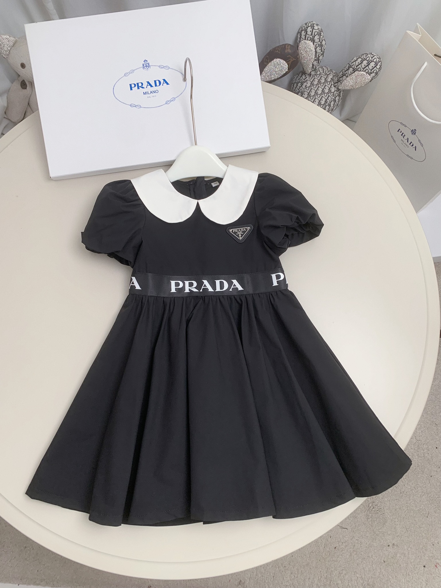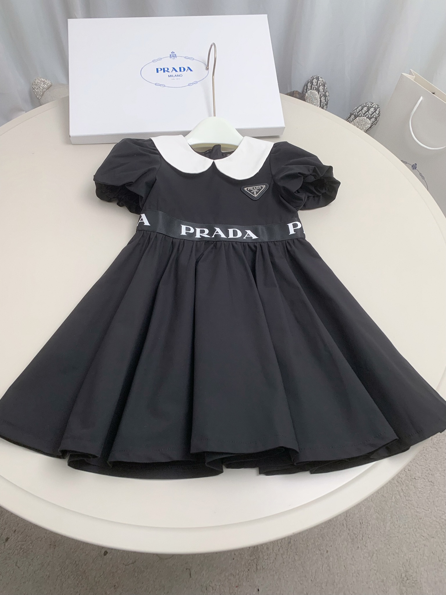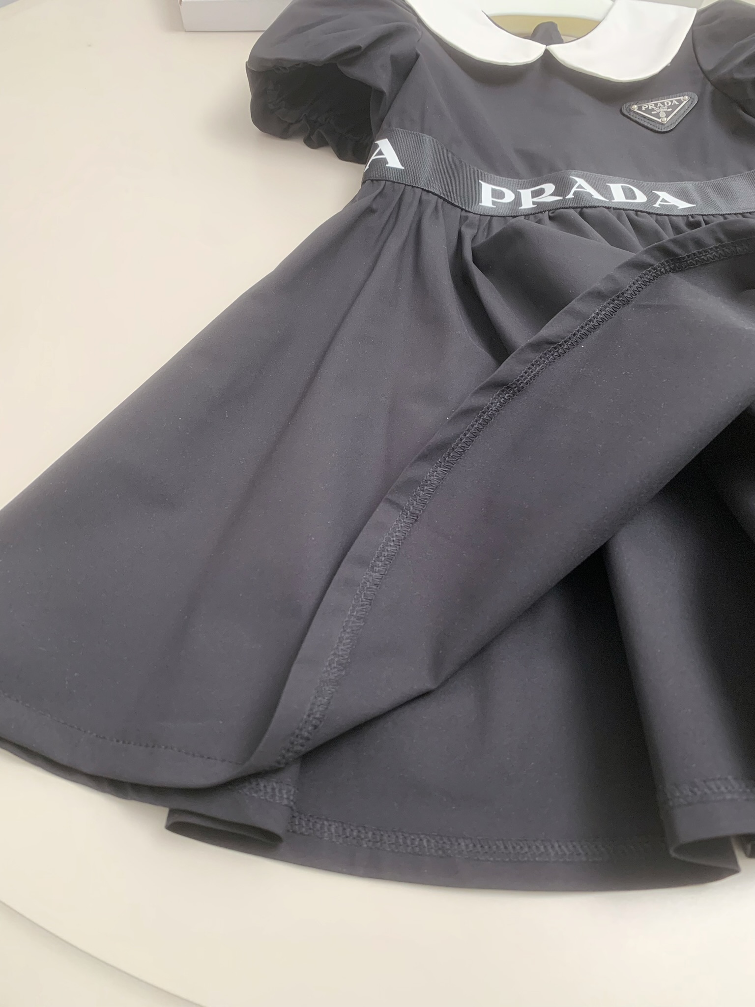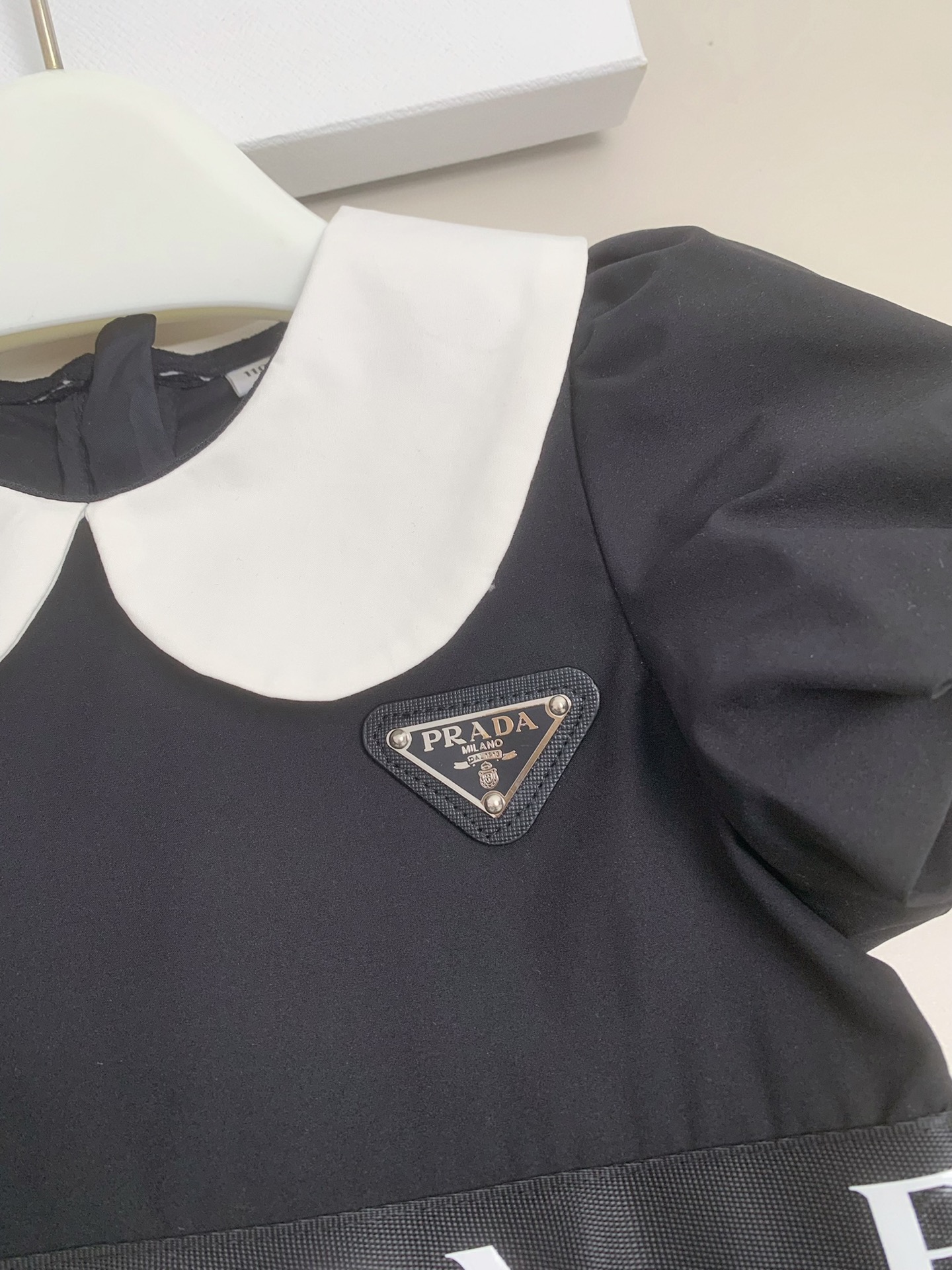 这款children's clothes是AAAAA 1:1 质量 (非常棒). 使用了和原版一模一样的材料. 商标部分也保持了和普拉达/Prada一样. 图片拍摄是实物children's clothes拍摄, 您所收到的实物保证和我们图片一模一样.