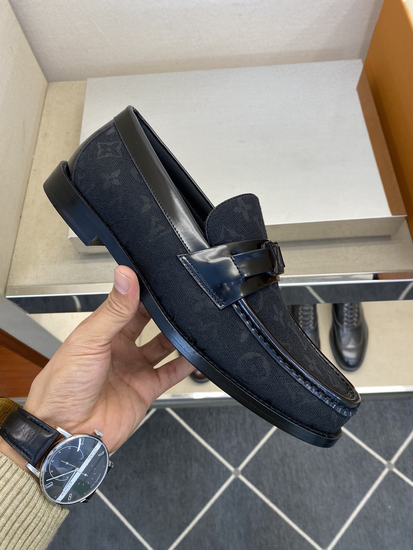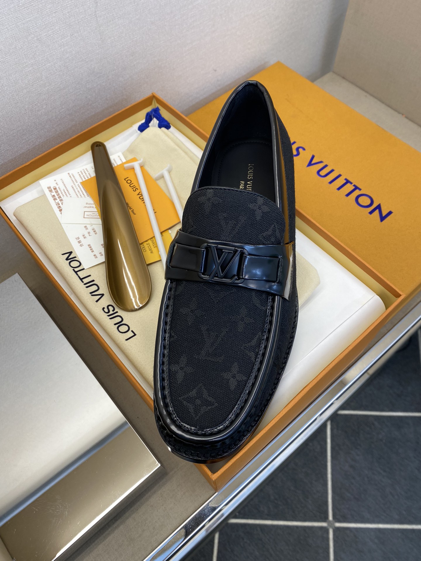 这款鞋子是AAAAA 1:1 质量 (非常棒). 使用了和原版一模一样的材料. 商标部分也保持了和路易威登/Louis Vuitton一样. 图片拍摄是实物鞋子拍摄, 您所收到的实物保证和我们图片一模一样.