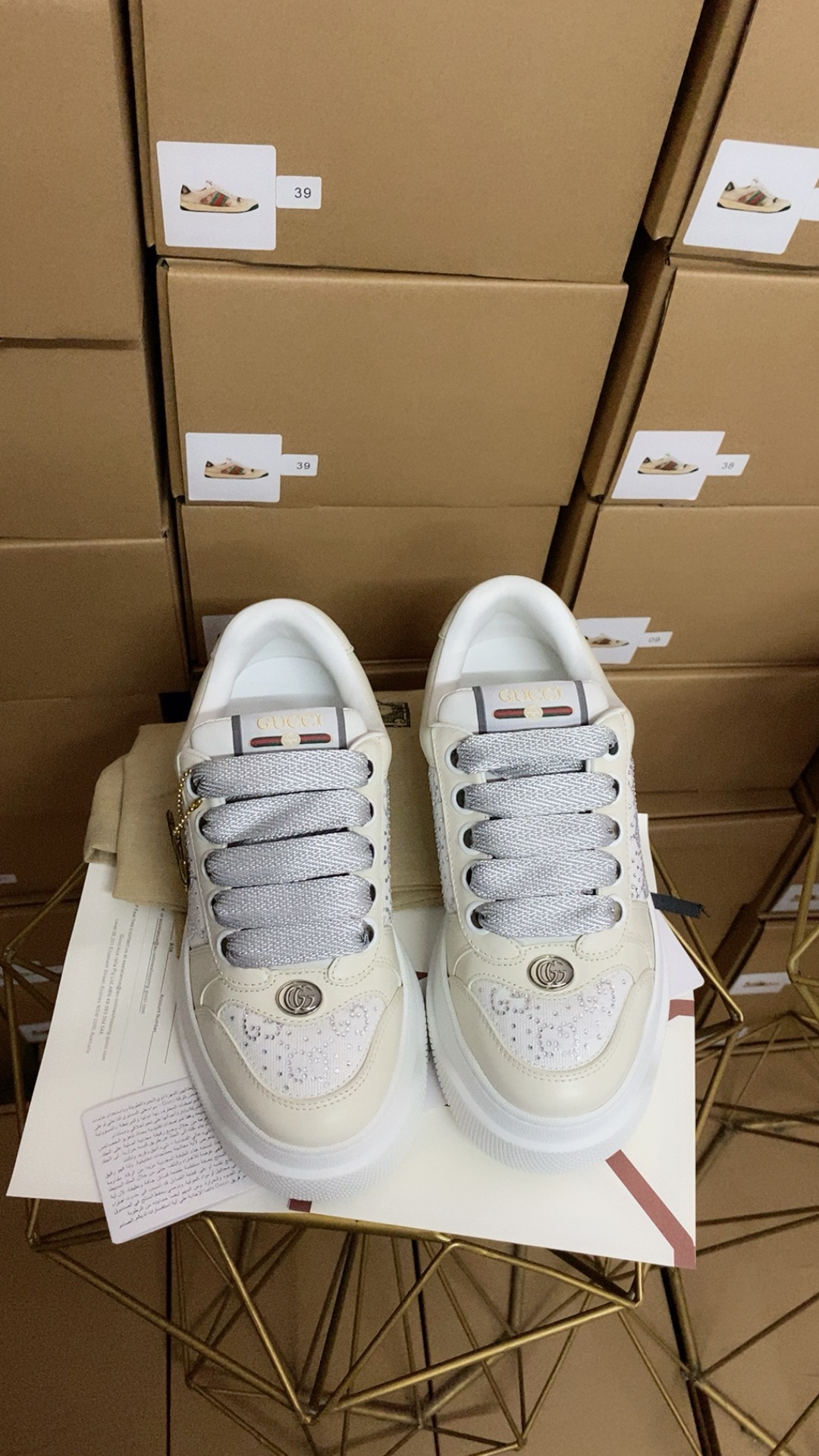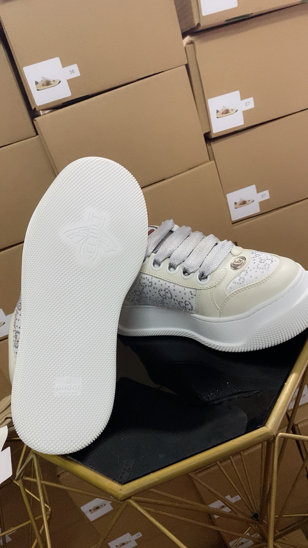 这款鞋子是AAAAA 1:1 质量 (非常棒). 使用了和原版一模一样的材料. 商标部分也保持了和古奇/Gucci一样. 图片拍摄是实物鞋子拍摄, 您所收到的实物保证和我们图片一模一样.
