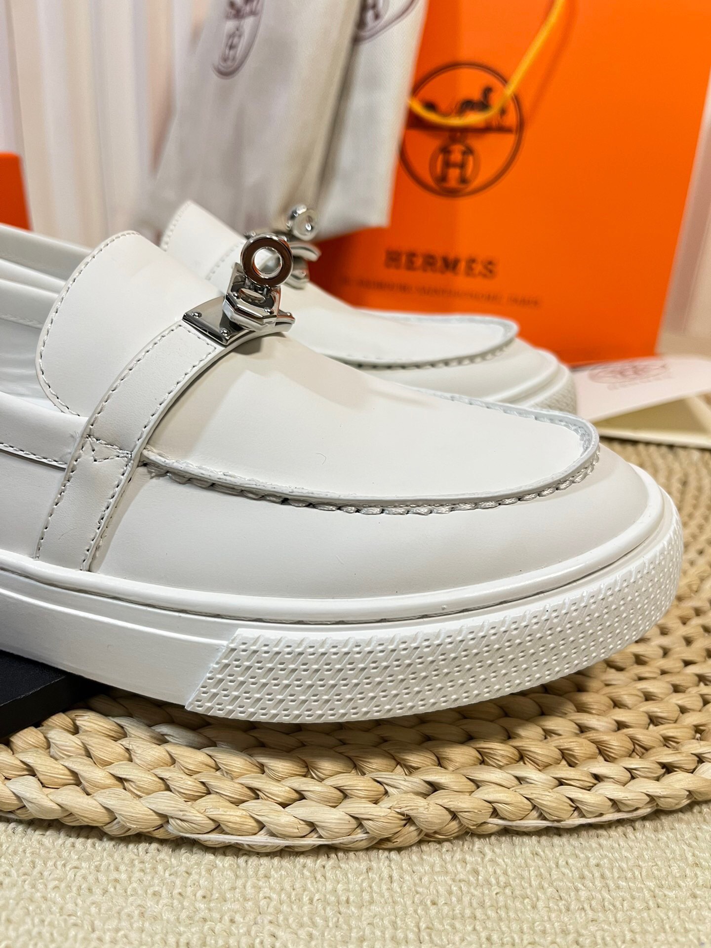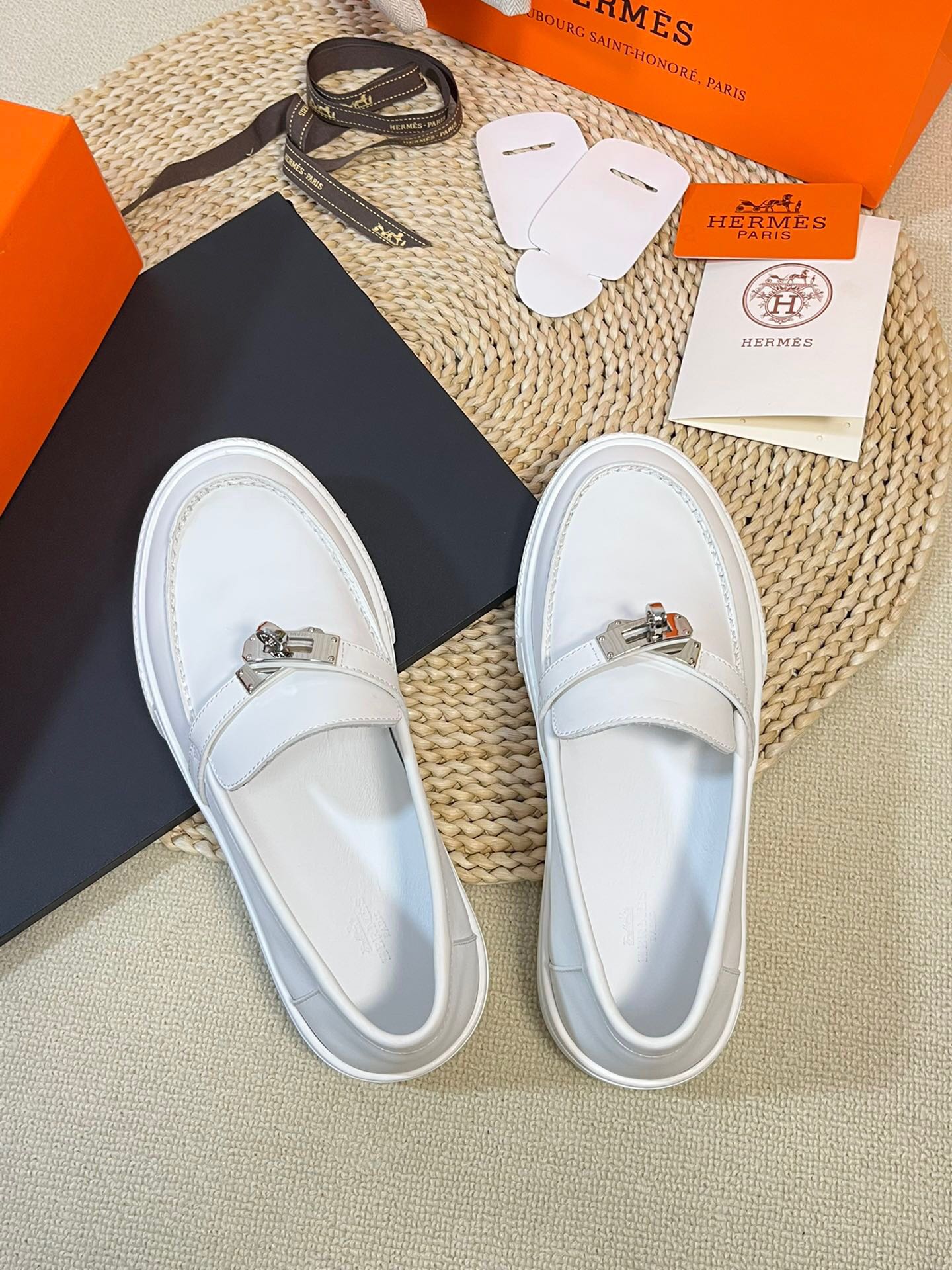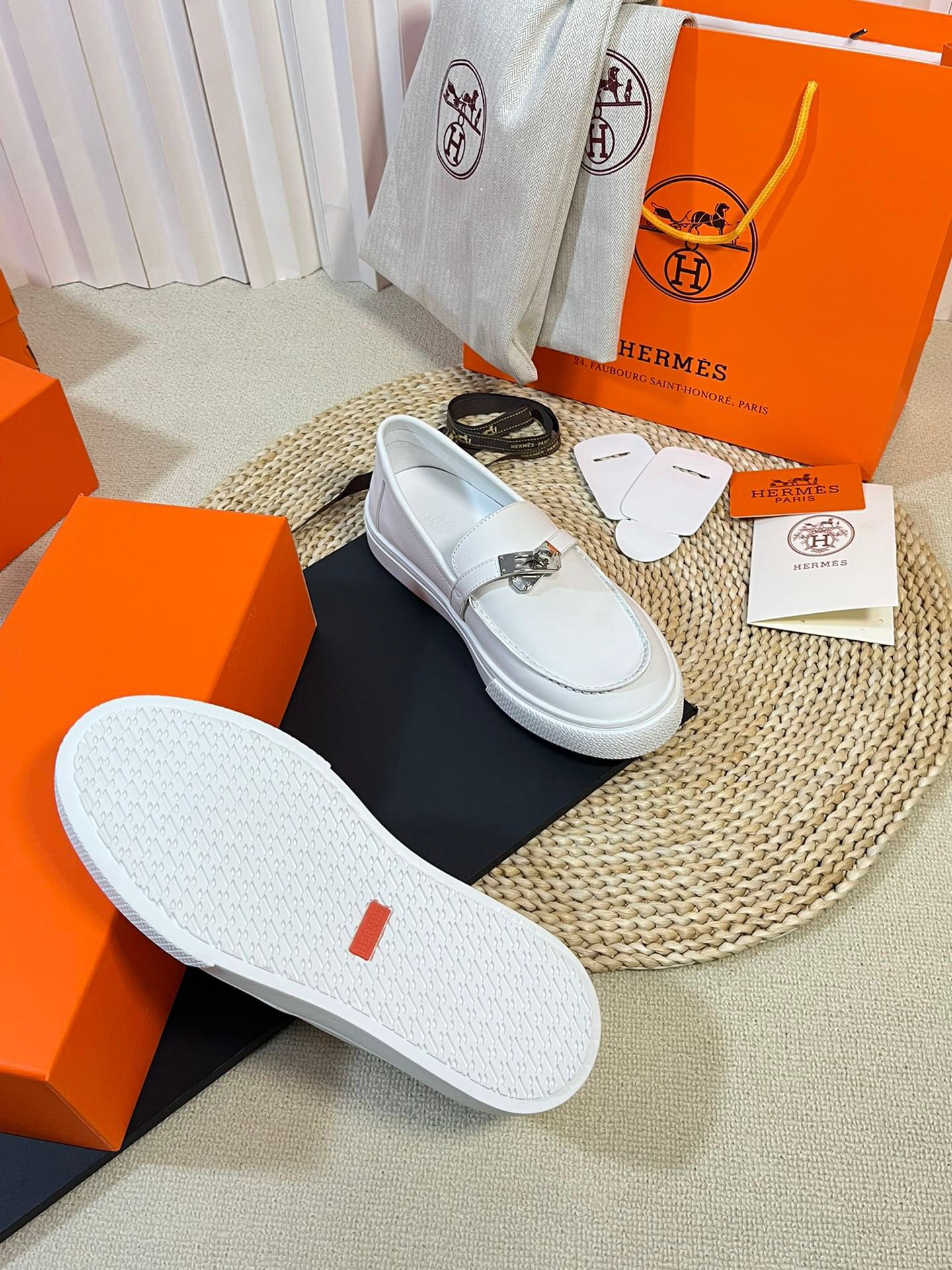 这款鞋子是AAAAA 1:1 质量 (非常棒). 使用了和原版一模一样的材料. 商标部分也保持了和爱马仕/Hermes一样. 图片拍摄是实物鞋子拍摄, 您所收到的实物保证和我们图片一模一样.