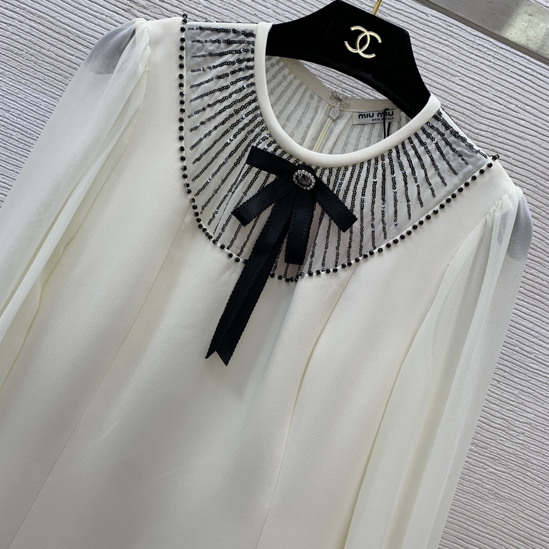 这款衣服是AAAAA 1:1 质量 (非常棒). 使用了和原版一模一样的材料. 商标部分也保持了和缪缪/Miu Miu一样. 图片拍摄是实物衣服拍摄, 您所收到的实物保证和我们图片一模一样.