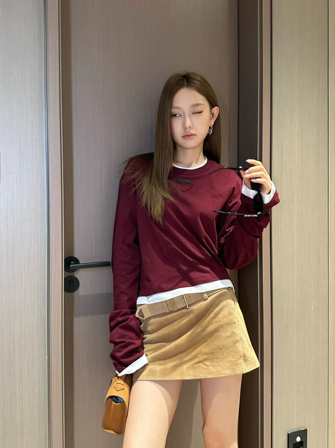 这款衣服是AAAAA 1:1 质量 (非常棒). 使用了和原版一模一样的材料. 商标部分也保持了和缪缪/Miu Miu一样. 图片拍摄是实物衣服拍摄, 您所收到的实物保证和我们图片一模一样.
