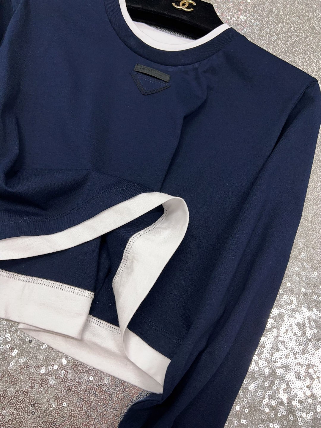 这款衣服是AAAAA 1:1 质量 (非常棒). 使用了和原版一模一样的材料. 商标部分也保持了和缪缪/Miu Miu一样. 图片拍摄是实物衣服拍摄, 您所收到的实物保证和我们图片一模一样.
