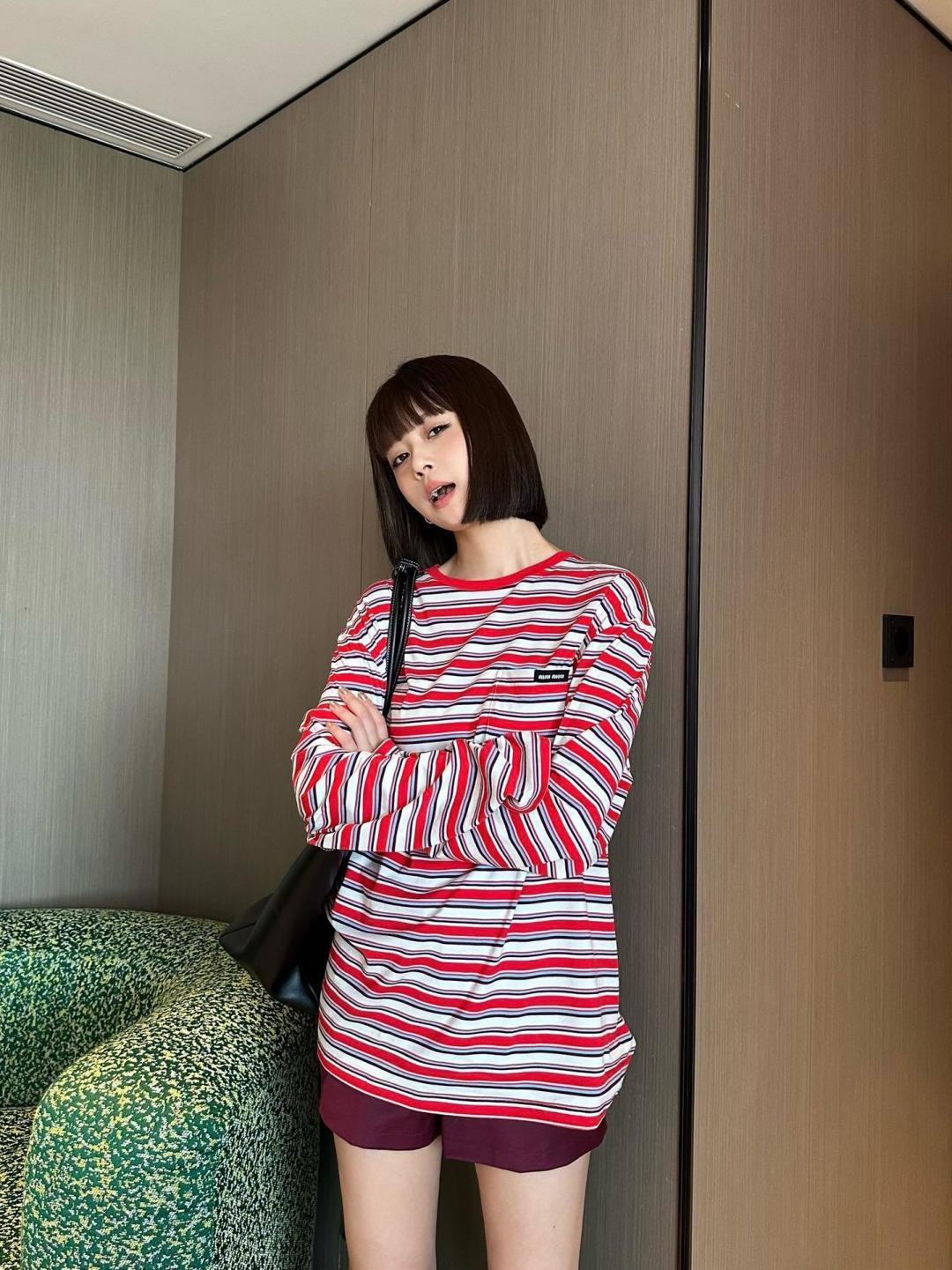 这款衣服是AAAAA 1:1 质量 (非常棒). 使用了和原版一模一样的材料. 商标部分也保持了和缪缪/Miu Miu一样. 图片拍摄是实物衣服拍摄, 您所收到的实物保证和我们图片一模一样.