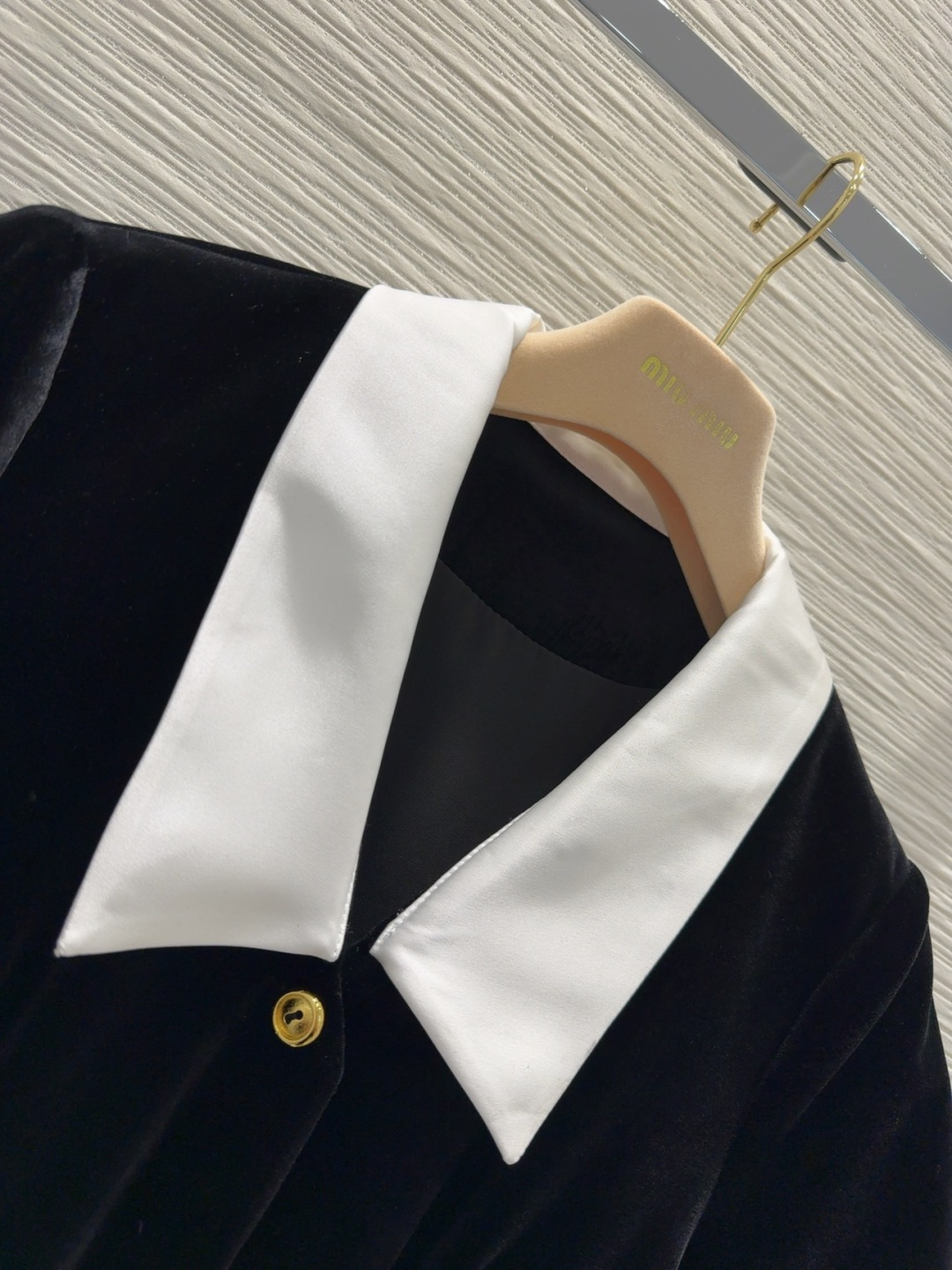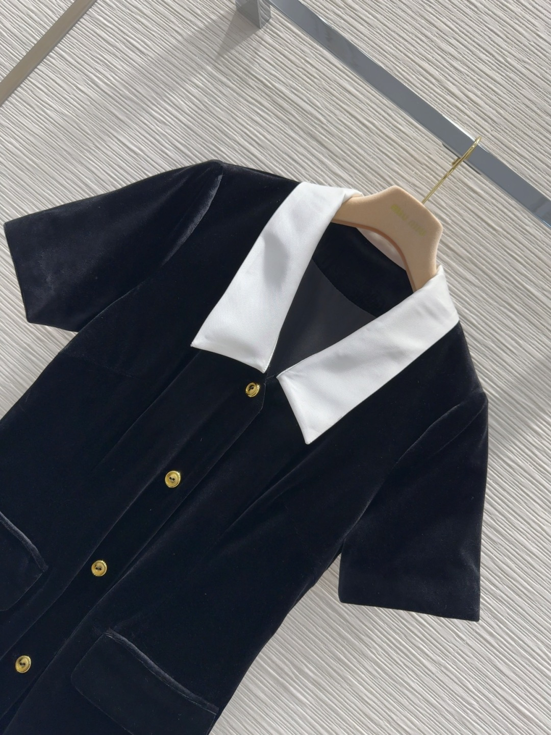 这款衣服是AAAAA 1:1 质量 (非常棒). 使用了和原版一模一样的材料. 商标部分也保持了和缪缪/Miu Miu一样. 图片拍摄是实物衣服拍摄, 您所收到的实物保证和我们图片一模一样.