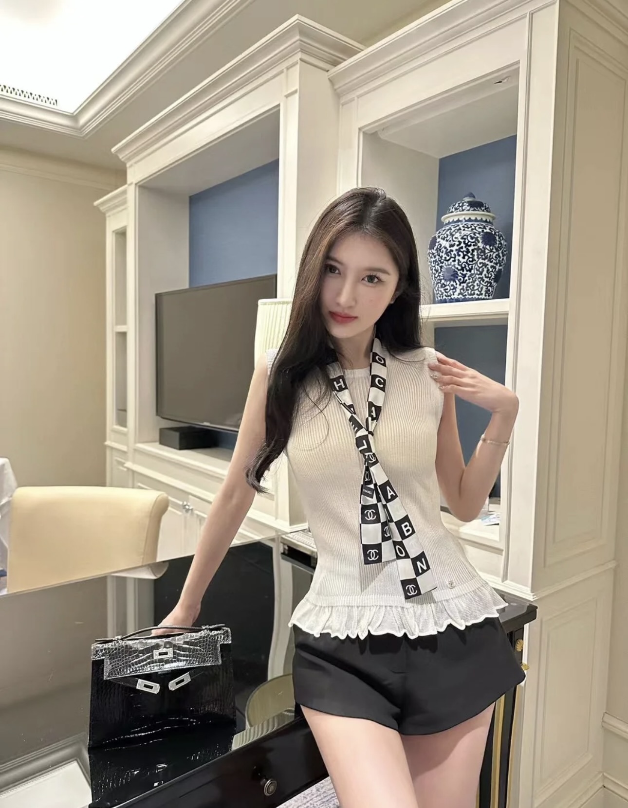 这款衣服是AAAAA 1:1 质量 (非常棒). 使用了和原版一模一样的材料. 商标部分也保持了和香奈儿/Chanel一样. 图片拍摄是实物衣服拍摄, 您所收到的实物保证和我们图片一模一样.