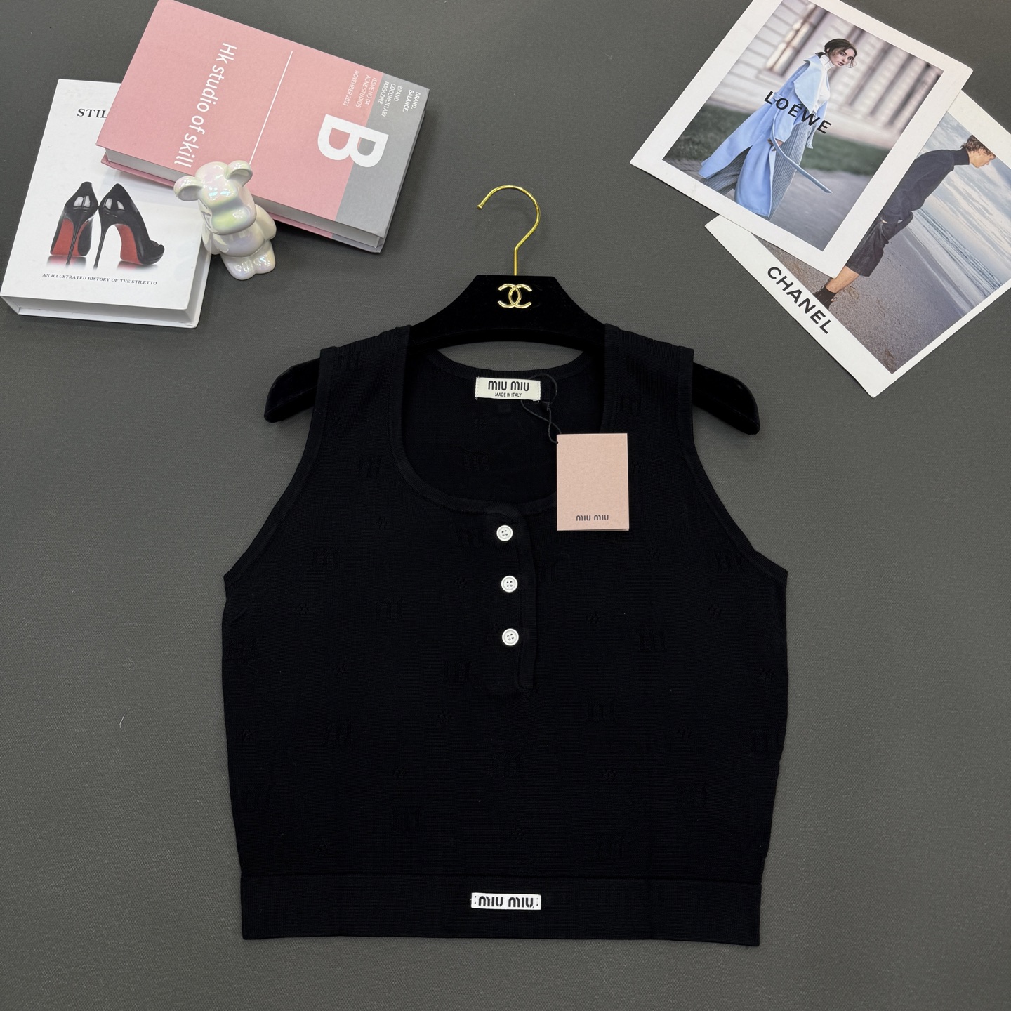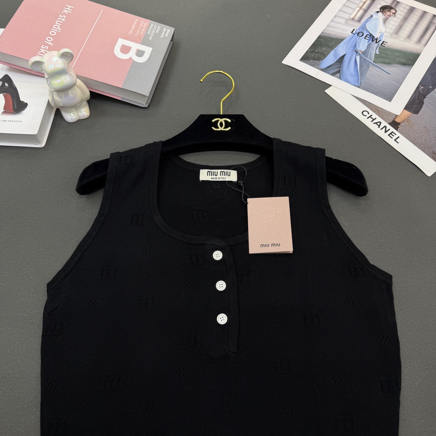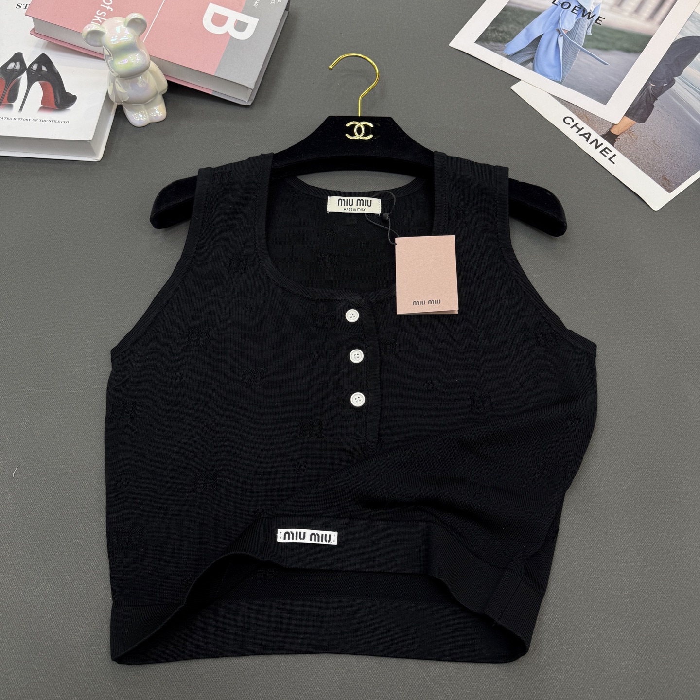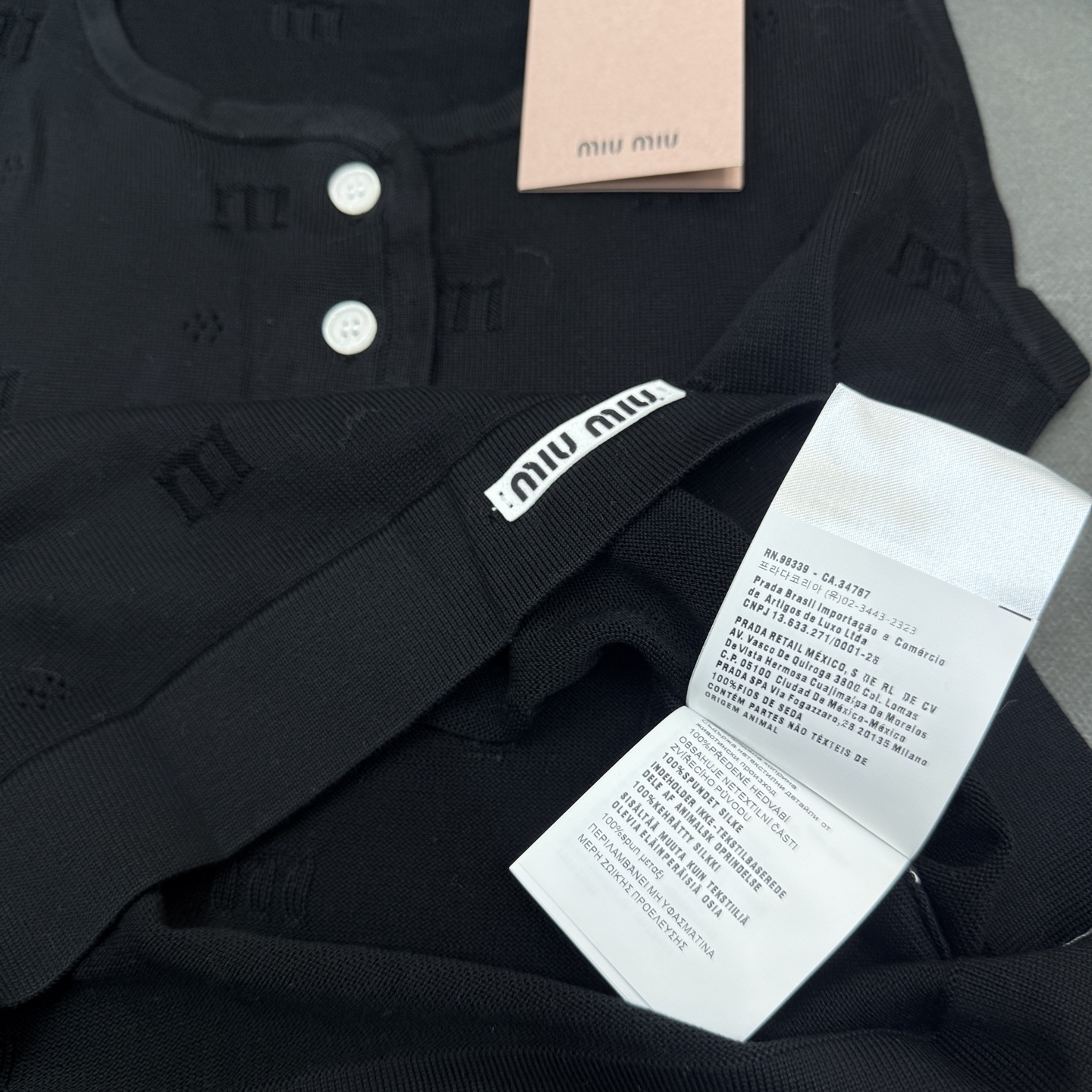 这款衣服是AAAAA 1:1 质量 (非常棒). 使用了和原版一模一样的材料. 商标部分也保持了和缪缪/Miu Miu一样. 图片拍摄是实物衣服拍摄, 您所收到的实物保证和我们图片一模一样.