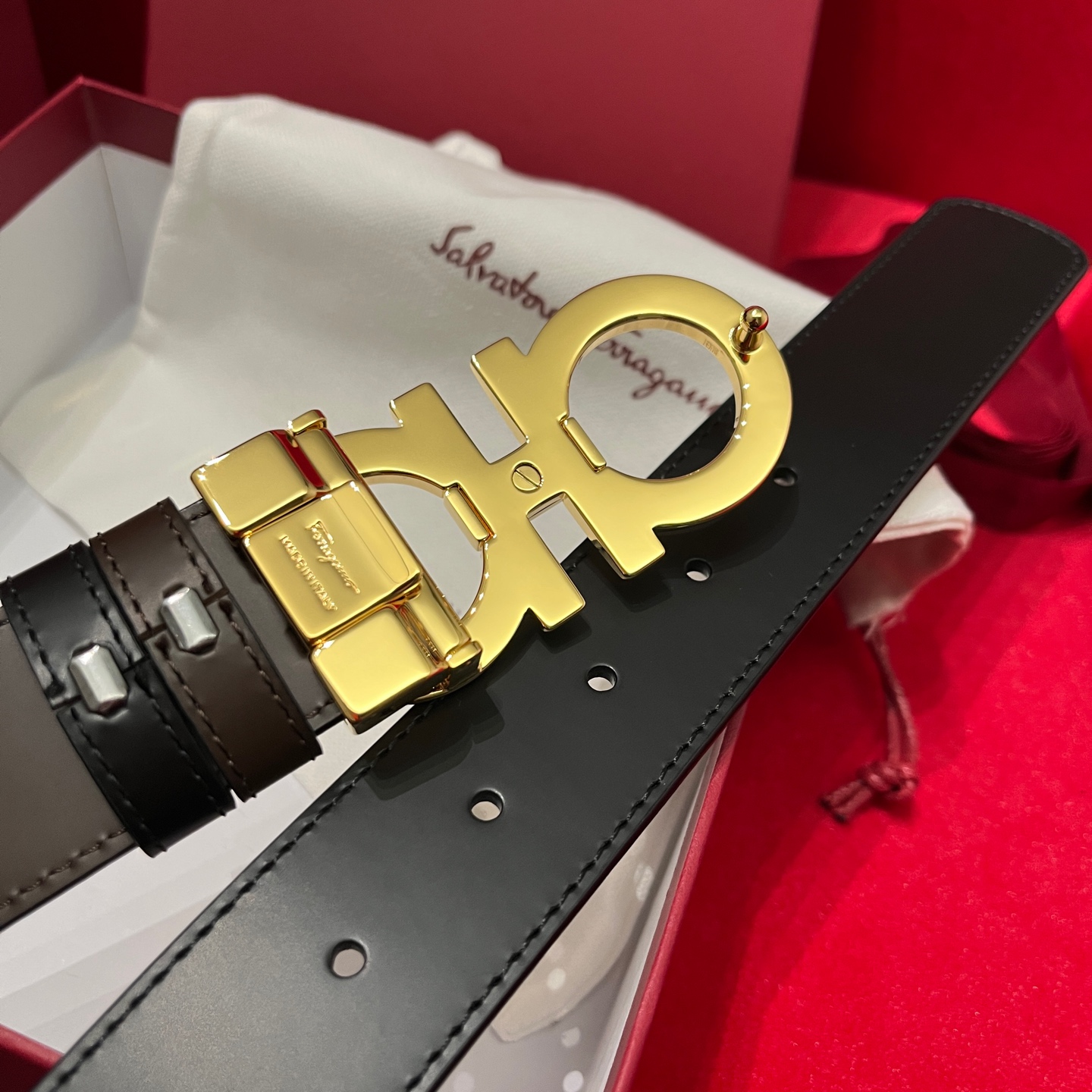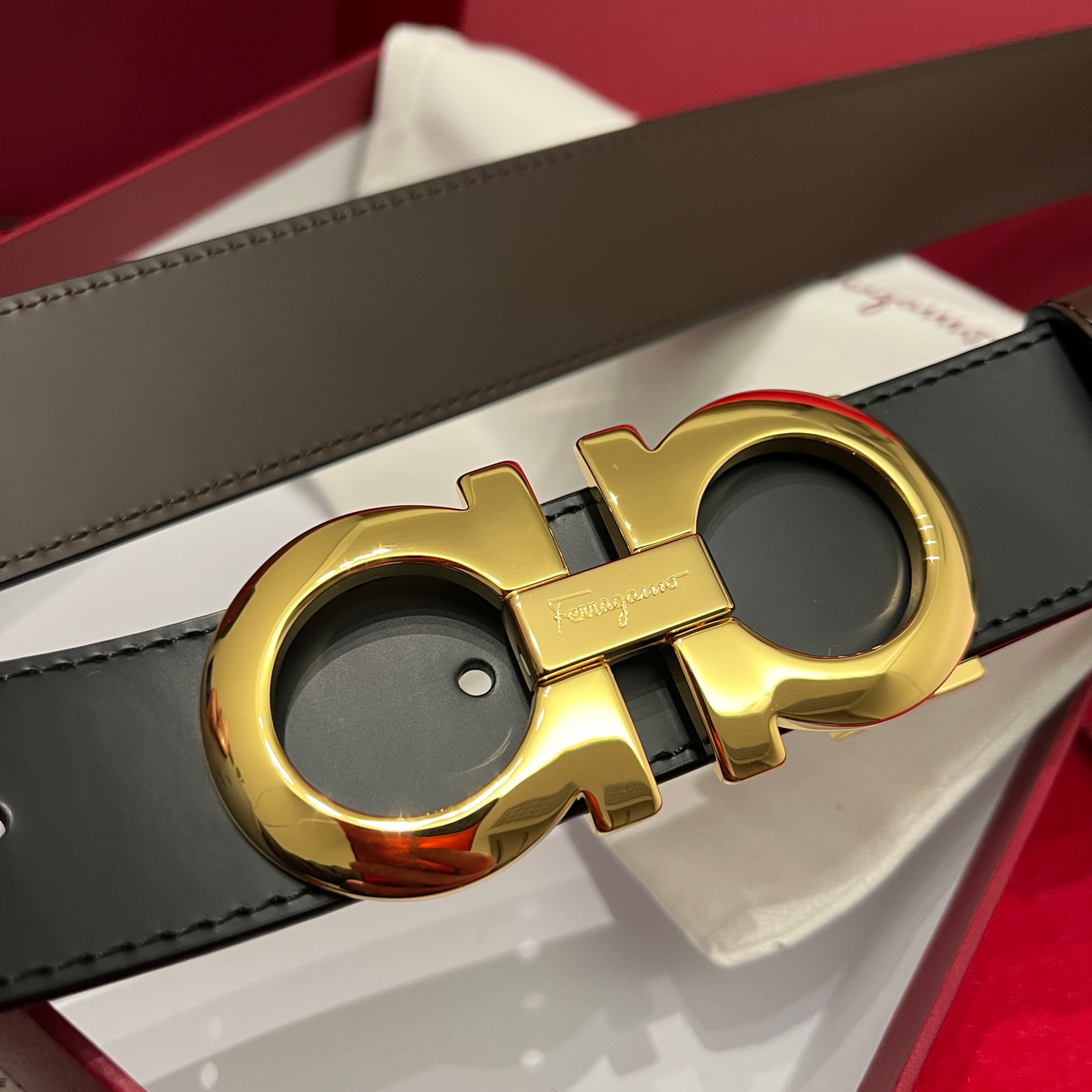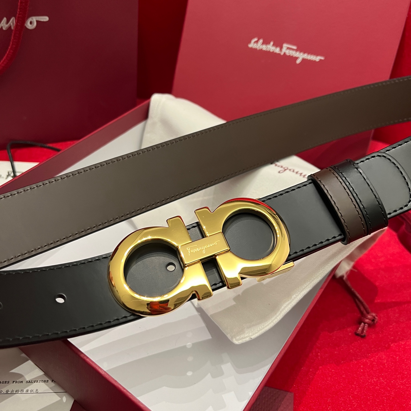 这款皮带是AAAAA 1:1 质量 (非常棒). 使用了和原版一模一样的材料. 商标部分也保持了和菲拉格慕/Salvatore Ferragamo一样. 图片拍摄是实物皮带拍摄, 您所收到的实物保证和我们图片一模一样.