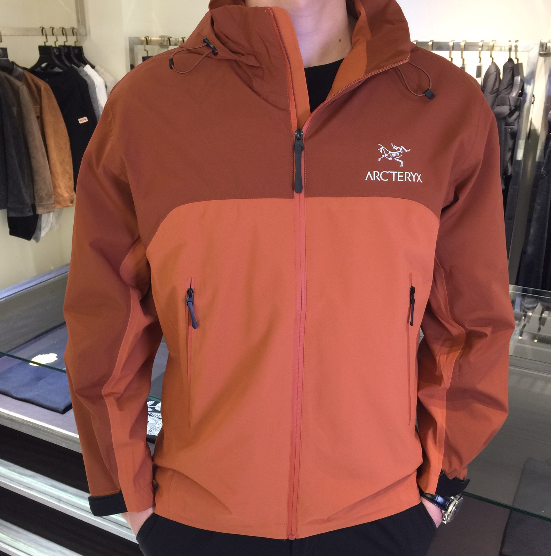 这款衣服是AAAAA 1:1 质量 (非常棒). 使用了和原版一模一样的材料. 商标部分也保持了和ARC'TERYX一样. 图片拍摄是实物衣服拍摄, 您所收到的实物保证和我们图片一模一样.