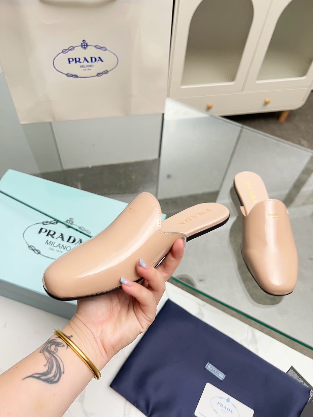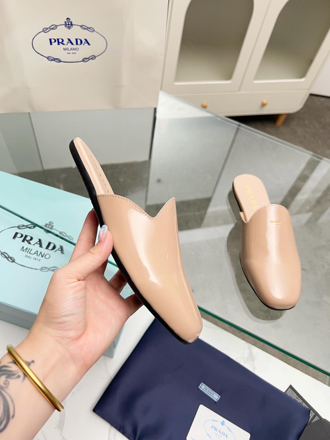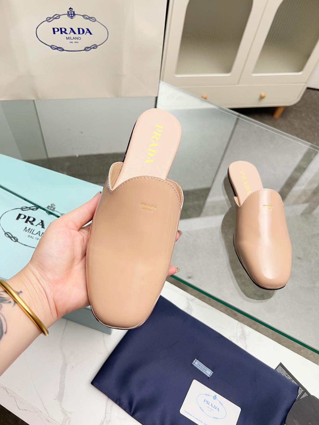 这款鞋子是AAAAA 1:1 质量 (非常棒). 使用了和原版一模一样的材料. 商标部分也保持了和普拉达/Prada一样. 图片拍摄是实物鞋子拍摄, 您所收到的实物保证和我们图片一模一样.