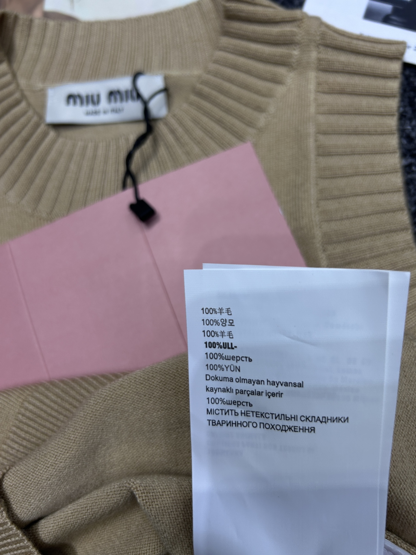 这款衣服是AAAAA 1:1 质量 (非常棒). 使用了和原版一模一样的材料. 商标部分也保持了和缪缪/Miu Miu一样. 图片拍摄是实物衣服拍摄, 您所收到的实物保证和我们图片一模一样.